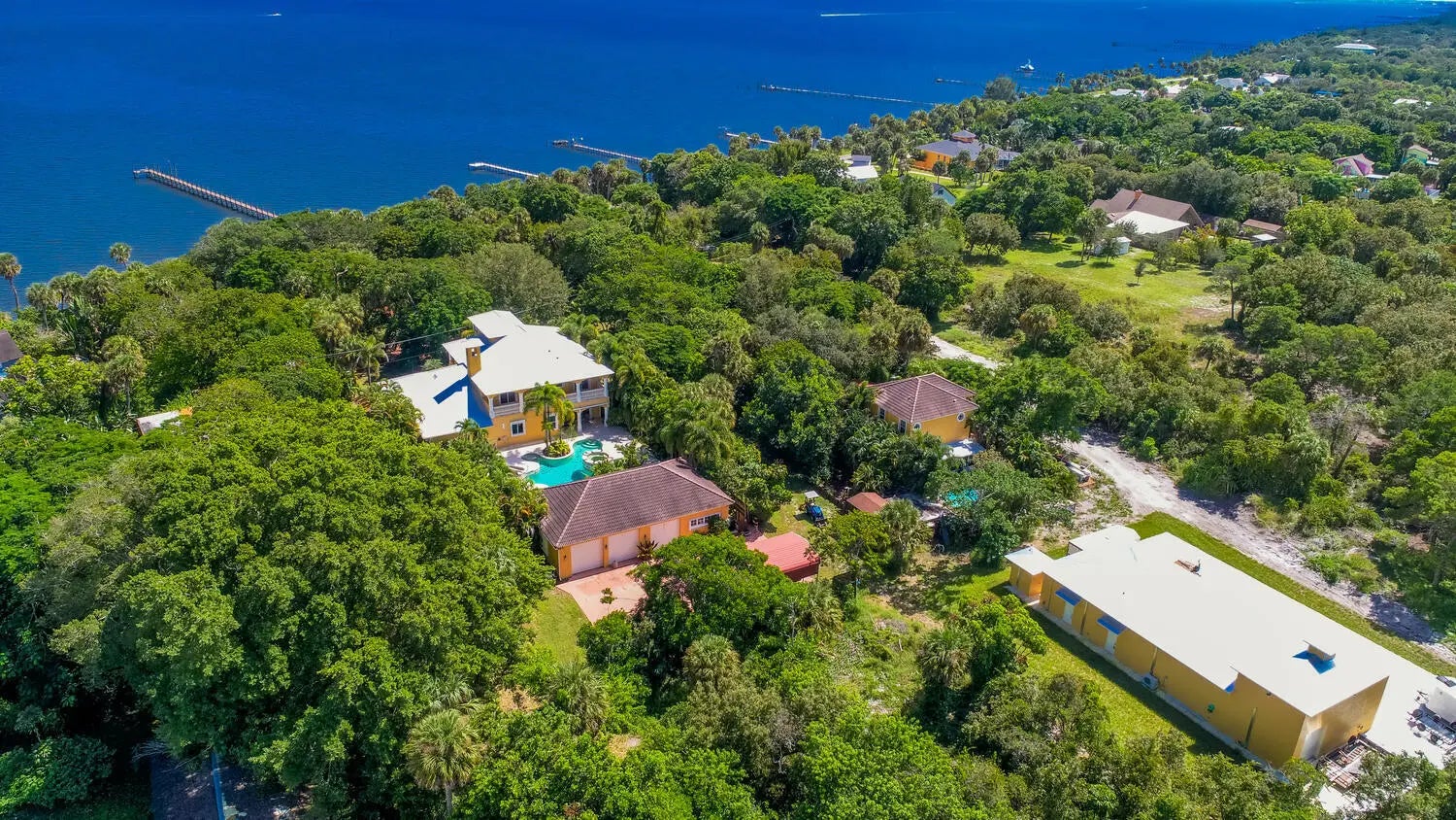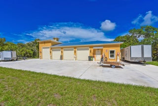 Estate Home with Guest House sitting on a 7.25 Acre parcel of Riverfront land, w/ 460' walk out dock. Calling all Car Collectors ,Very Private Estate Home with attached 2 car garage set back over 250'. Plus 2 Separate Large Garages perfect for Car collection ,3 car detached garage with A/C ,gym & bath,CBS 32X55, plus a new 5 car garage 72' X 32' with apartment , full A/C . High & Dry w/30 ft elevation ''per owner''. Main House 4600 under a/c 6,400 total. 10 ft ceiling Height,3 story, 4 bed, 4 bath, Granite Counters Kitchen & Baths,Double Oven, Media Room, Covered Balconies front and rear, Newer Aluminum Roof, Impact Windows 2nd & 3rd Floors, Electric Hurricane Panels first floor, 60,000 gallon free form resort salt water pool w/Spa , Horses OK