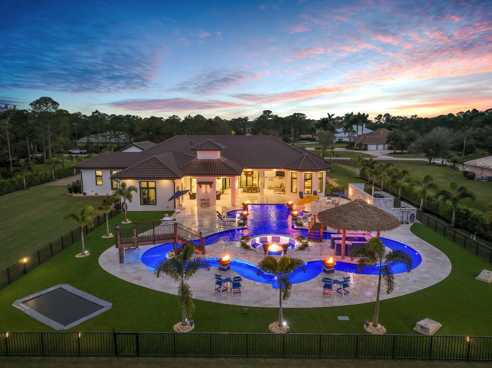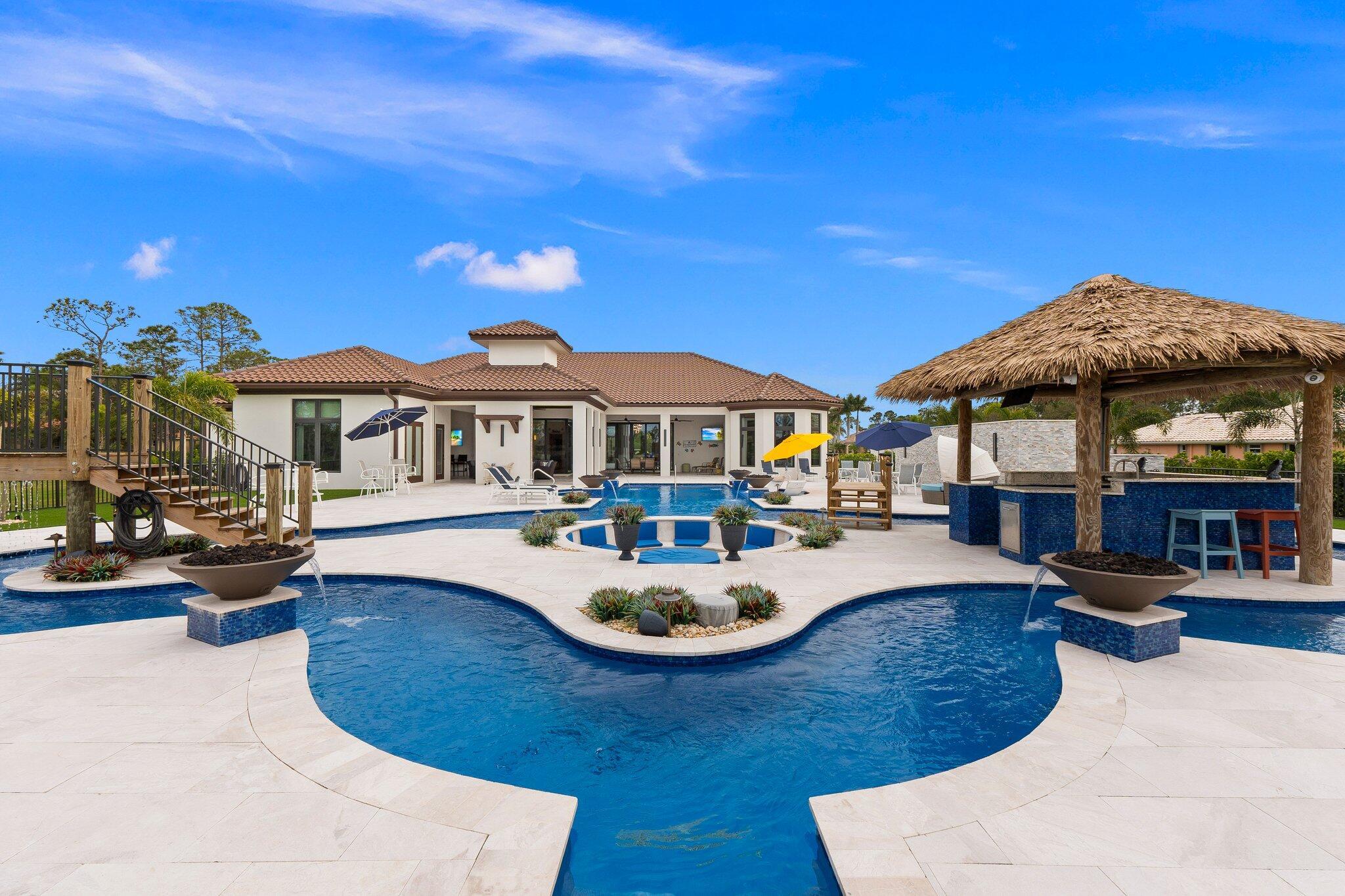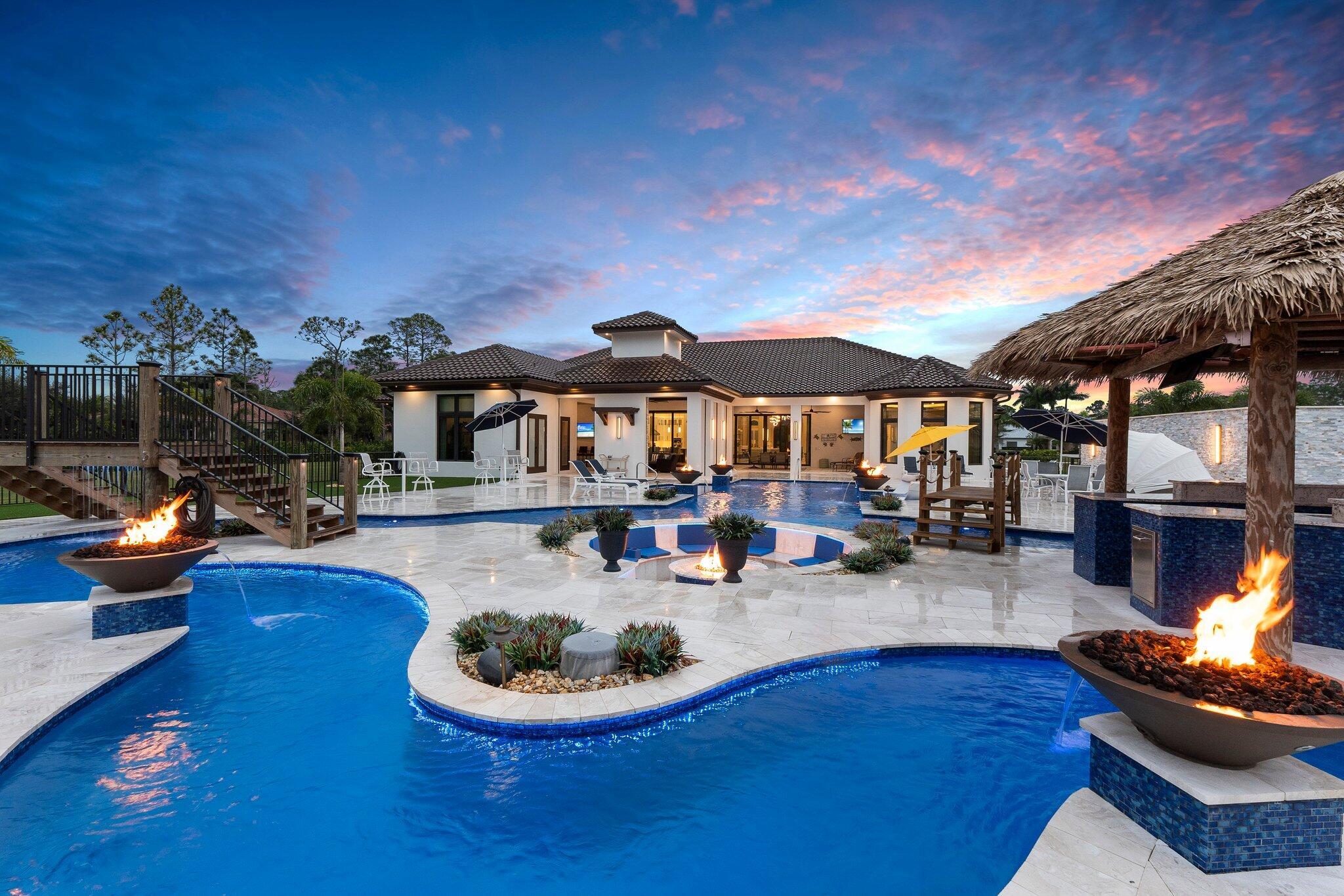 Welcome to this spectacular, one-of-a-kind estate built in 2023, where luxury and entertainment meet. Every detail was meticulously designed with no expense spared. The spacious, open floor plan is enhanced by Control4 smart home technology, managing lighting, sound, and window treatments. The chef's kitchen features a Sub-Zero fridge/freezer, Wolf 6-burner gas range, double ovens, and a large center island. Enjoy a custom home theater with a ''shooting star'' ceiling and a private home gym. The backyard is a showstopper with a massive pool, lazy river, hot tub, sunken fire pit, fire bowls, waterfalls, a tiki bar, and a full sound system. The 4.5-acre lot offers a football/baseball field, trampoline, and concrete cornhole area, all surrounded by lush landscaping. This extraordinary homeblends modern technology, impeccable design, and resort-style living. A rare opportunity to own your dream estate!