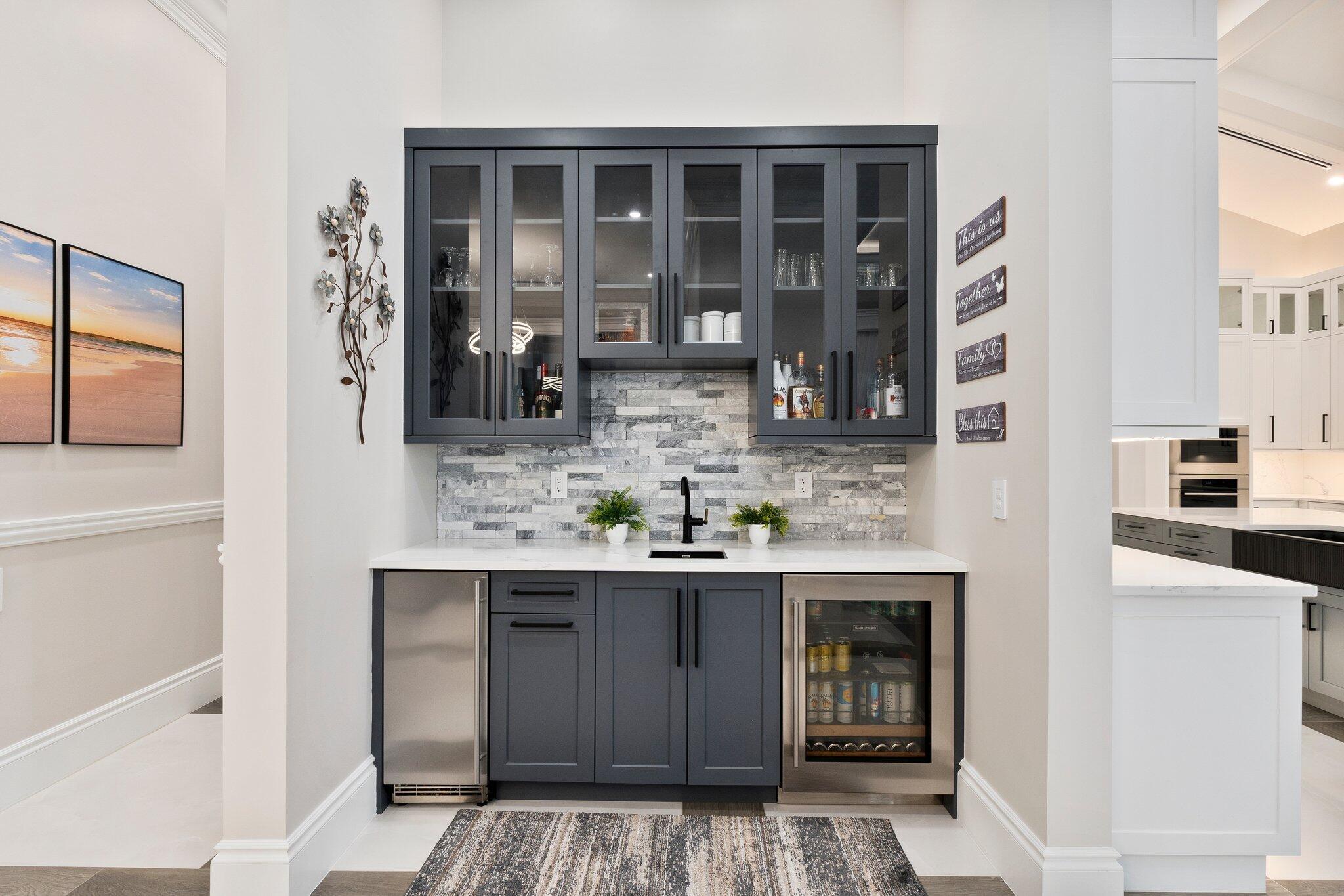 Bar, Built-in Shelves, Closet Cabinets, Entry Lvl Lvng Area, Fireplace(s), Foyer, Cook Island, Laundry Tub, Pantry, Split Bedroom, Volume Ceiling, Walk-in Closet