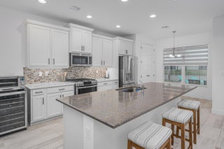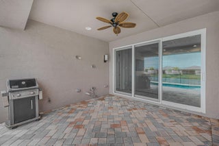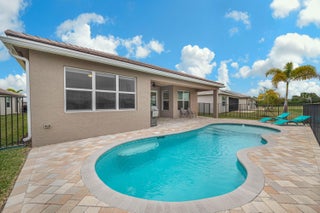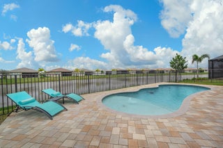Resort style Living in Riverland ''Valencia Grove'' a 55 + gated community. Home has a beautiful Lake View (Premium Waterfront Lot) with your very own Inground Pool. Pool has been pre-wired for a Pool Heater. This floor plan is called the ''Palazzo'' which has 3 bedrooms, 2.5 bathrooms and a Den. Tiled Floors throughout the Living Areas. The garage has been extended to accommodate larger vehicles (26' 5'' wide X 21' 7'' Length). Kitchen has upgraded cabinetry, quartz countertops, and upgraded SS appliances. The outside porch is pre wired and plumbed for a Summer Kitchen. The Windows and Doors have custom blinds. All Windows and Doors are impact rated for Hurricane Protection.