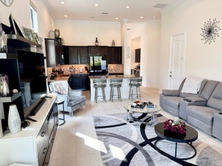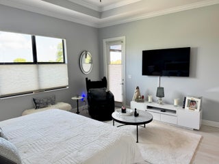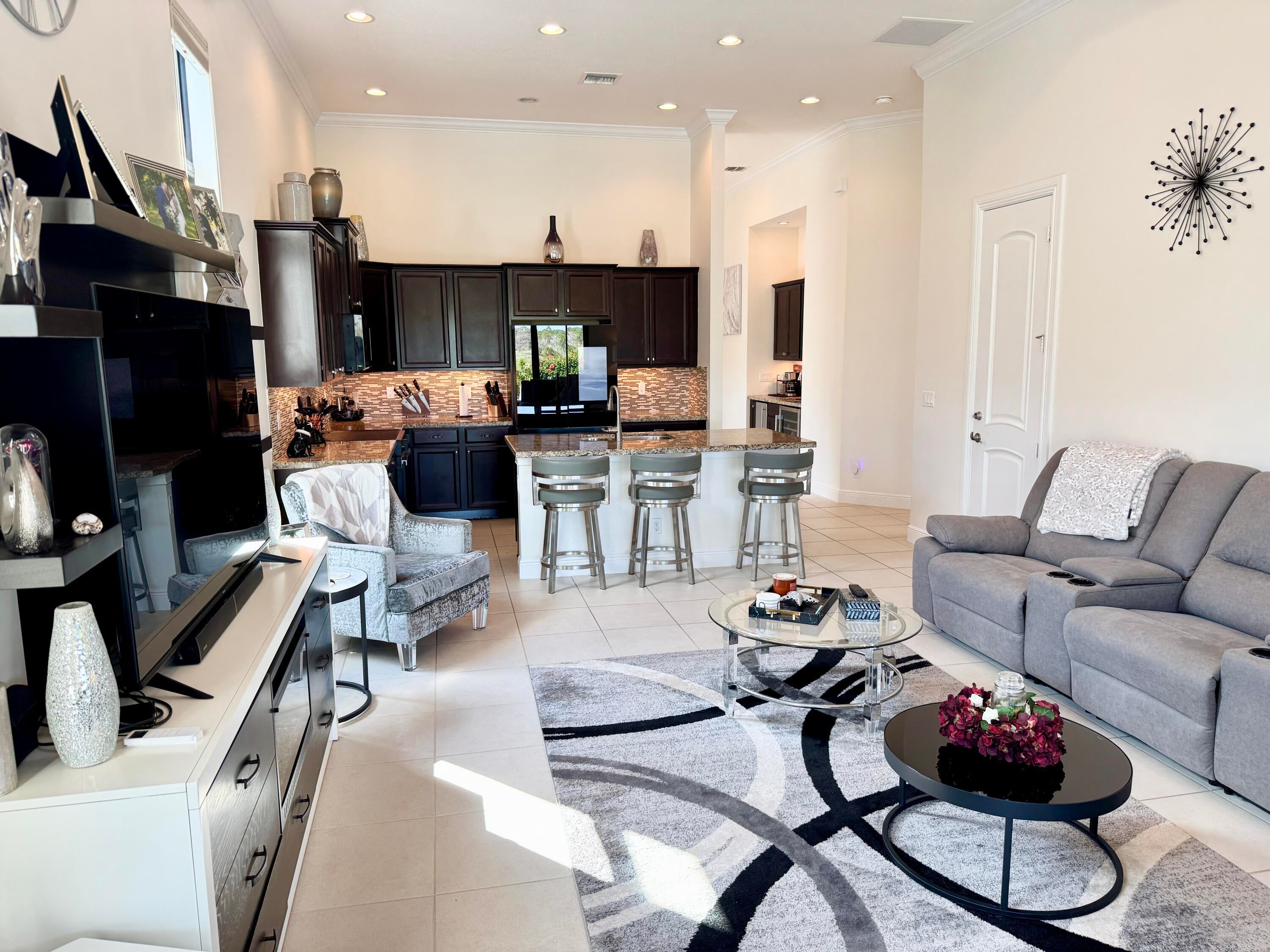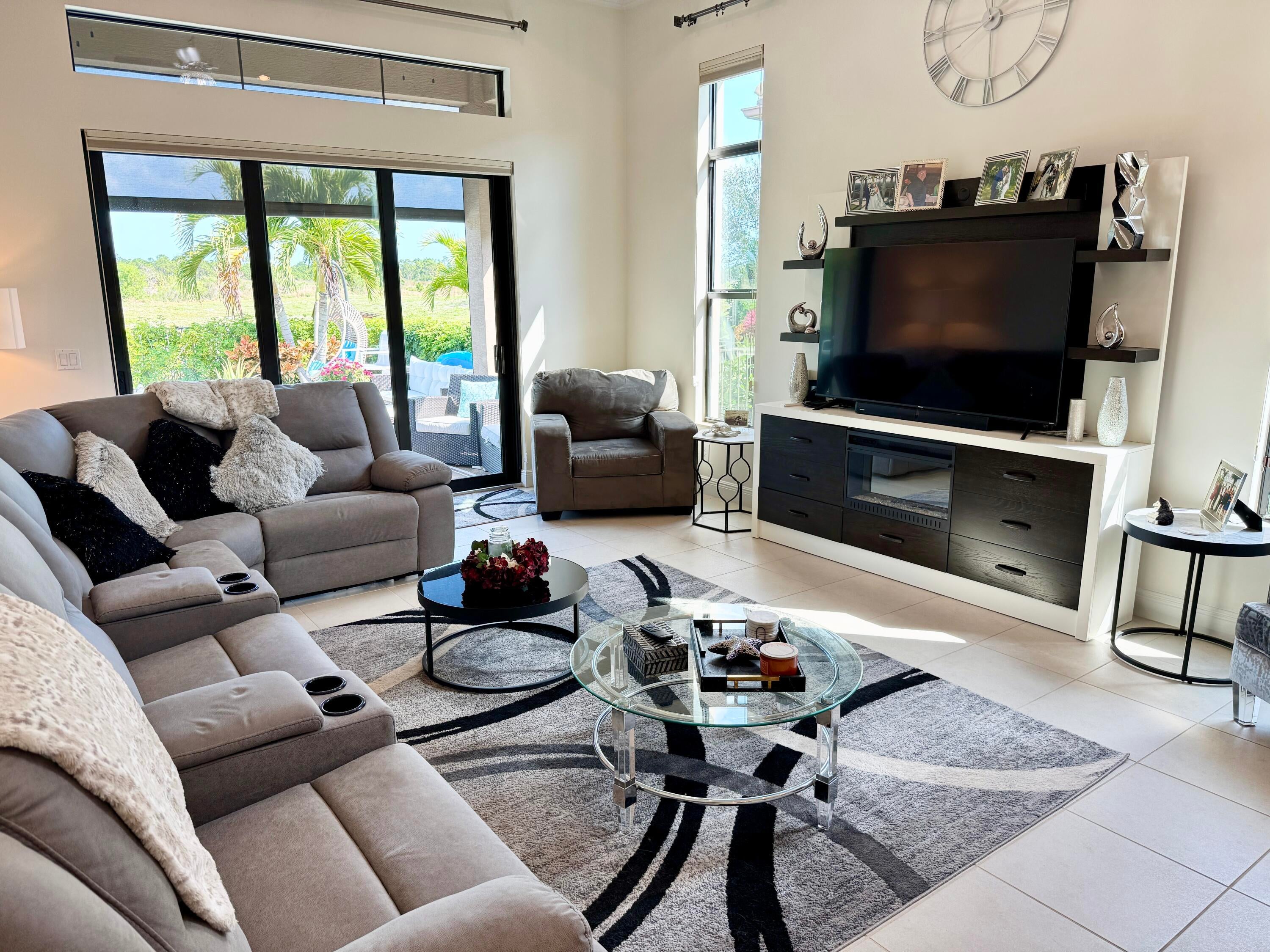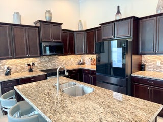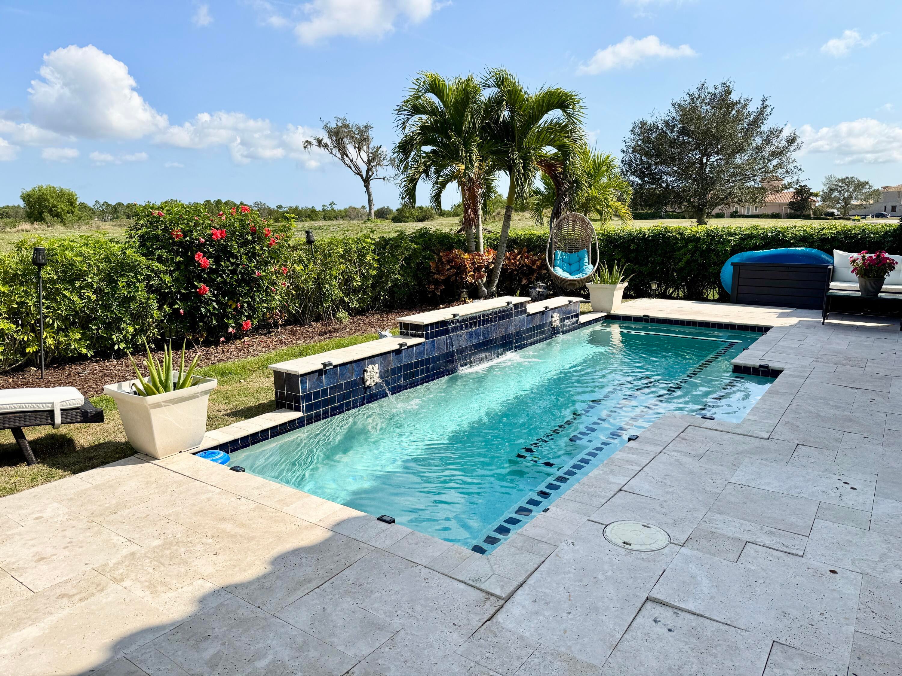 A beautifully designed newer home is ready for you to view. The high ceilings in the den, dining room, kitchen, & great room create an open & airy atmosphere. The dining room features a tray ceiling, modern decorative fixtures, & a full wet bar, perfect for entertaining. In the kitchen, you'll find solid wood cabinets complemented by stone countertops & new appliances, & the island bar is ideal for casual dining. The primary suite boasts a transom window, a tray ceiling, & double closets. The primary bath includes double vanities, a spacious zero-edge glass shower, & a separate garden tub. The rear porch features new retractable power screens. The splash pool is perfectly sized for use as a hot tub or for relaxing & sunbathing. A social membership at Tesoro Club is essential.
