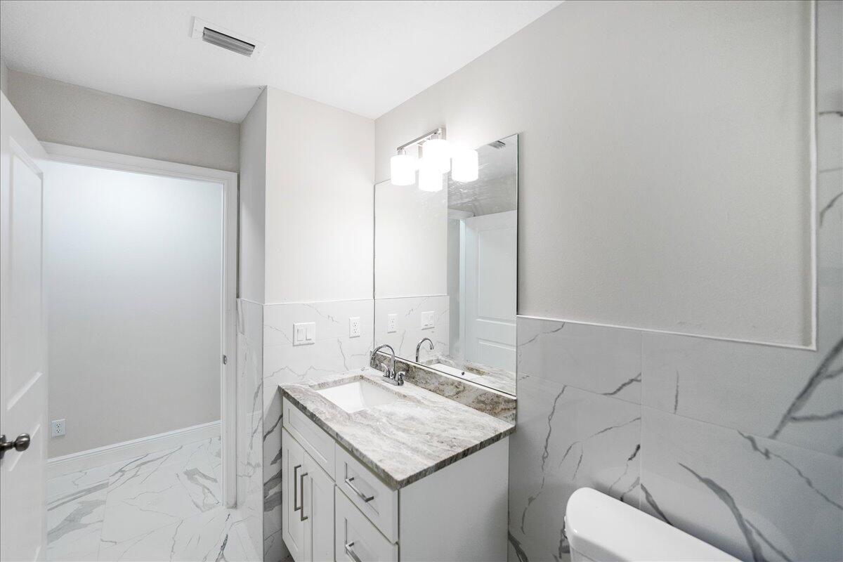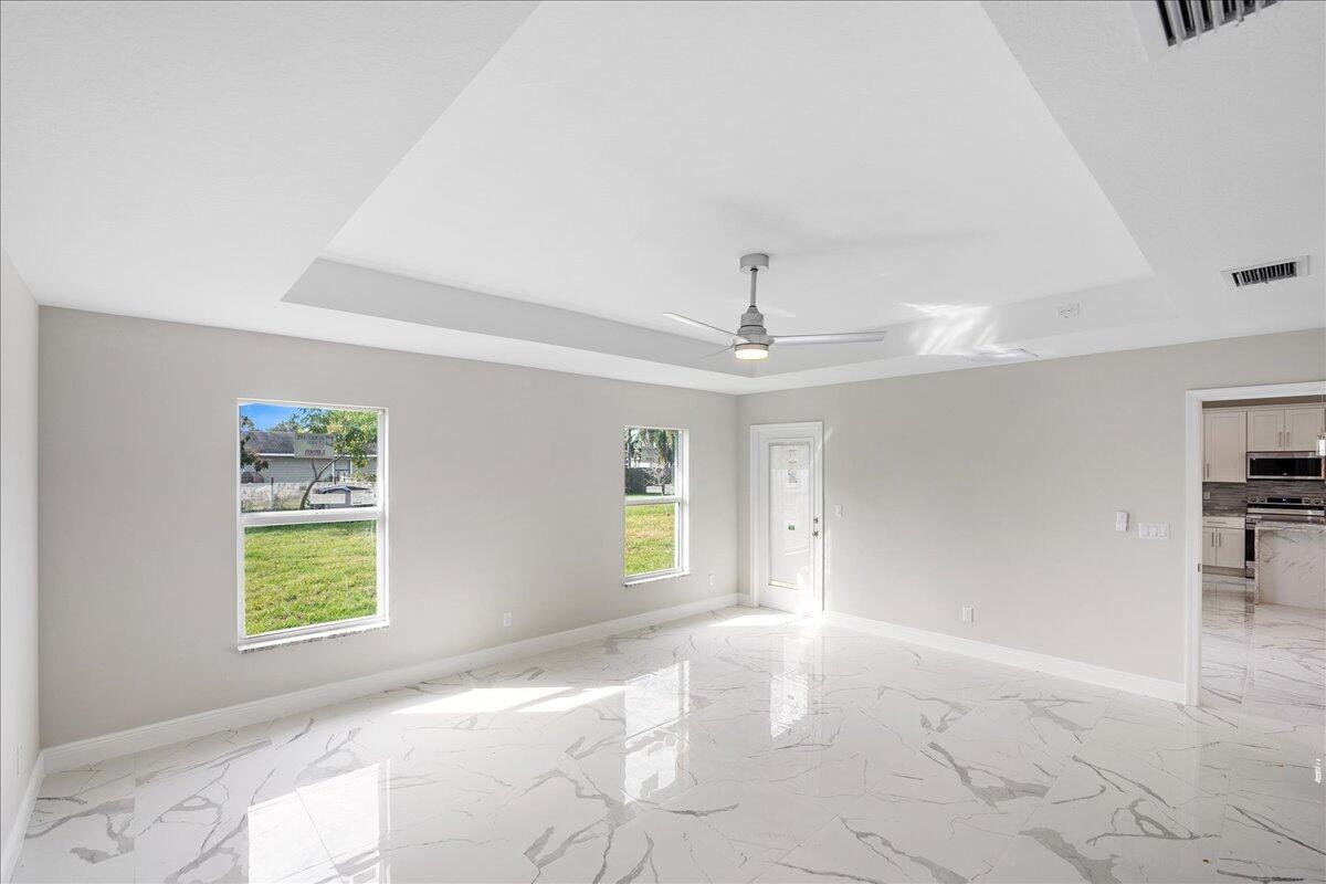 New construction house in desirable area of Port St Lucie. House boasts 4 bedrooms and 3.5 bathrooms. It has an outdoor shower and tons of room for a pool. House has tons of upgrades. Ten foot ceilings in common area, open, modern floor plan, impact windows, waterfall style kitchen island, granite backsplash, upgraded granite in kitchen, bathrooms and window sills, porcelain tile throughout the house, bathroom tiled floor to ceiling. Soft close kitchen cabinets, seamless glass shower enclosures, modern lighting fixtures and LG kitchen appliance package. over $60,000 in upgrades already included in the house.