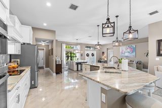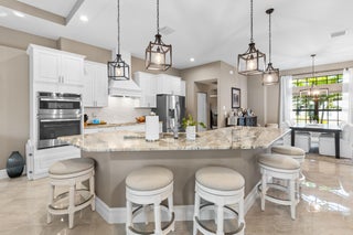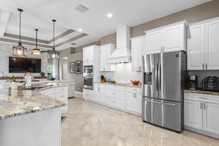 Exquisite, luxurious home with NO HOA! This stunning residence features 4 spacious bedrooms and 3 full bathrooms. It boasts numerous upgrades, including a ring security system, granite countertops, a gourmet kitchen with stainless steel appliances, porcelain tile throughout, a 5V metal roof with a secondary water barrier, FULL impact windows and doors, a side load garage with 5/8 plywood on the roof, a Master Ensuite with a double shower, free-standing tub, his and hers professionally built-in closets, his and her vanities, tray ceilings in the Family room and Master Bedroom, French Doors leading to oversized Lanai. French doors are also present in the living and family rooms, slow-close cabinets throughout, a side load washer and dryer with a pedestal, professionally landscaped with...ample space for a pool. A section of the home can easily be converted into an in-law suite or rental space with its own private entrance. This home is a must see!! Schedule your showing today through ShowingTime.