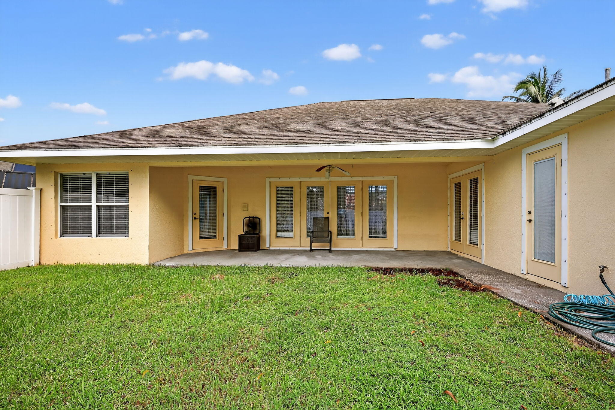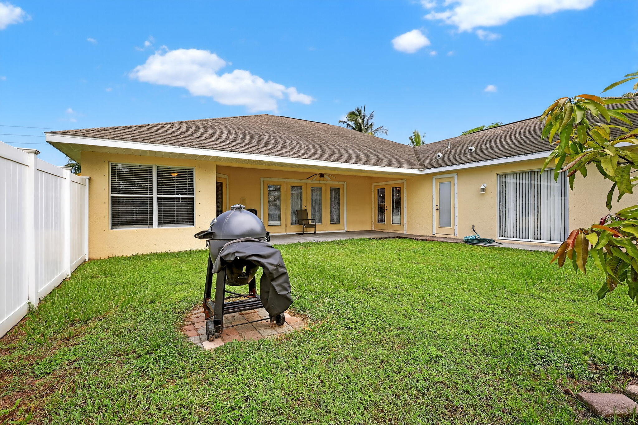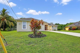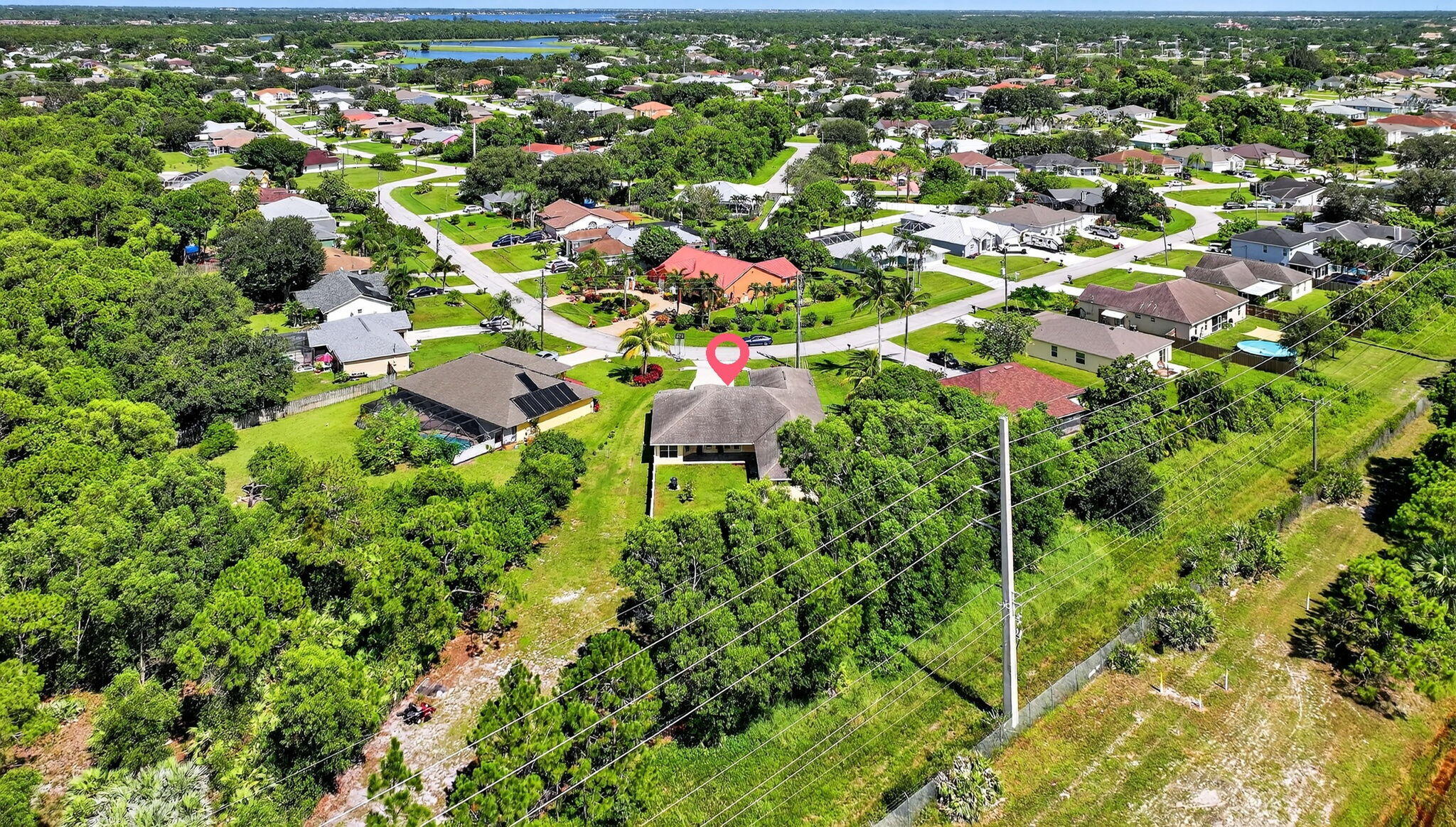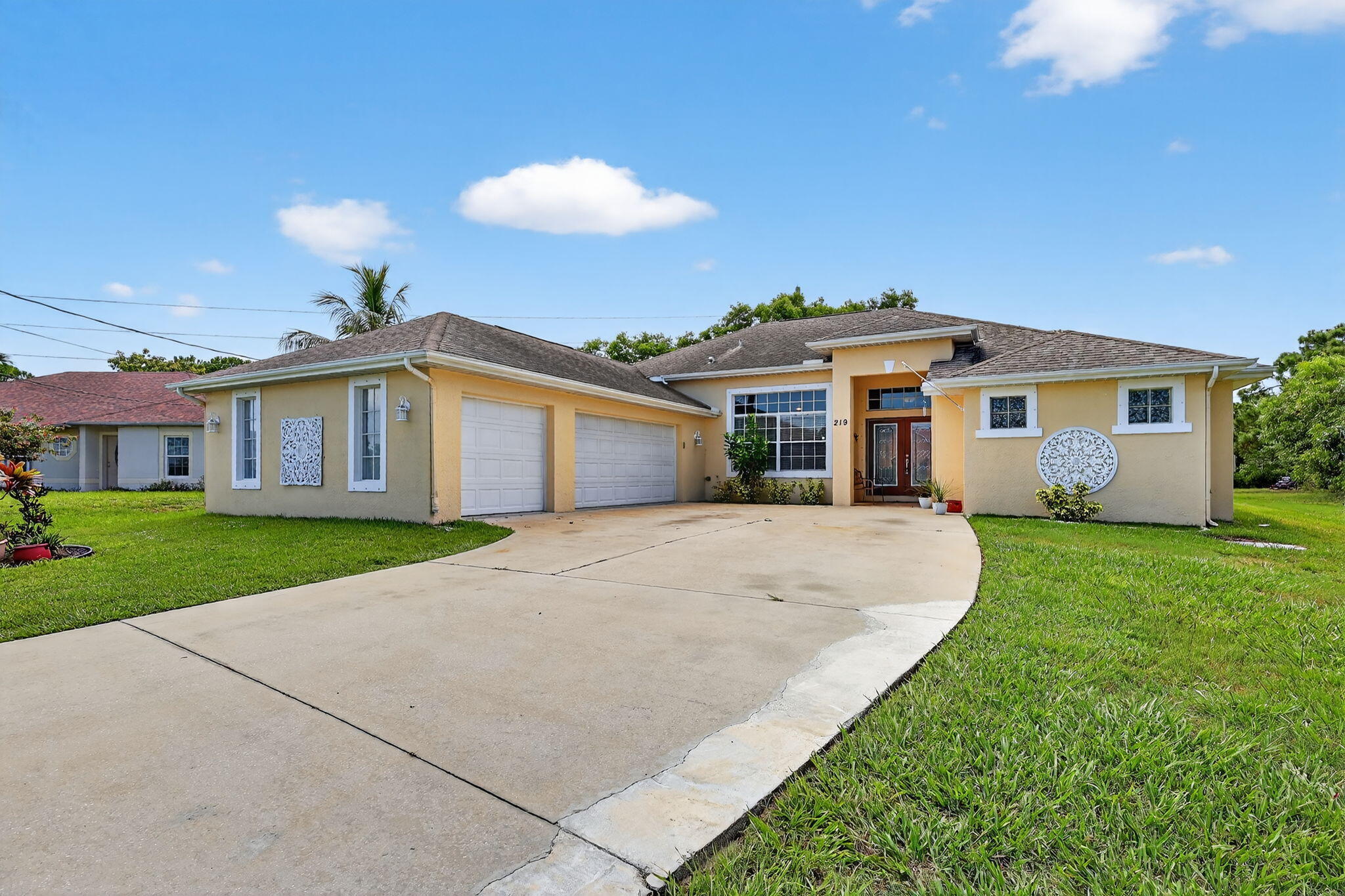 **$15K SELLER CREDIT for new roof at closing!** Two Master Suites in your Port St Lucie home! This impressive 5 BEDROOM 4 BATH home on a prime corner lot offers a unique and desirable feature: the TWO MASTER SUITES are ideal for Multi-generational living or a comfortable mother-in-law suite. One of the master suites includes a practical stackable washer/dryer. Tucked away for tranquility, yet with easy access to I-95 and the Turnpike, this home offers the best of both worlds. You'll appreciate the flexible split floor plan with a large great room, dramatic vaulted ceilings, and spacious additional bedrooms. A 3-car garage offers ample storage. The ''Tale of Two Backyards'' offers a private fenced area perfect for a pool and a large additional space for your outdoor needs.