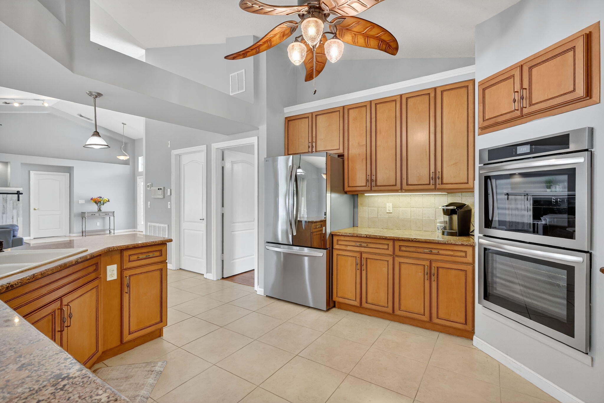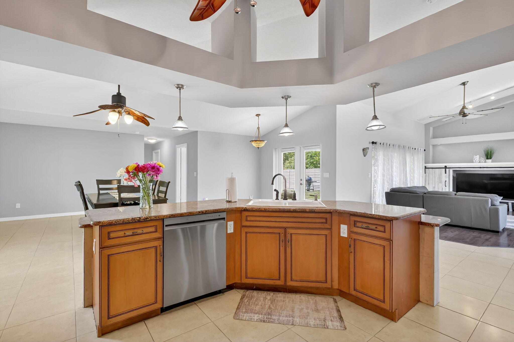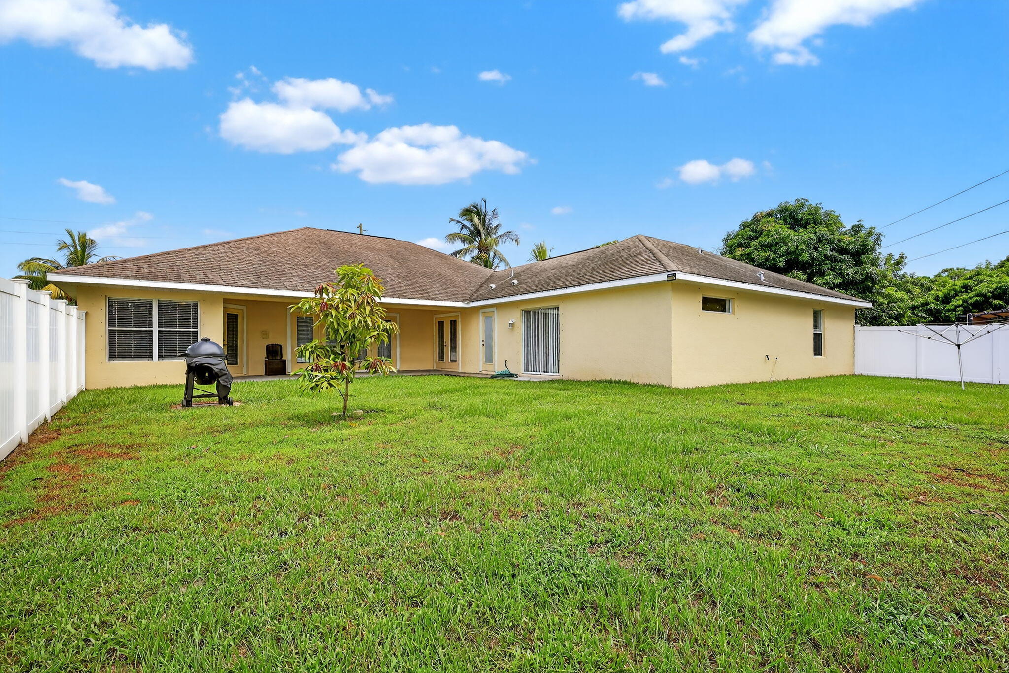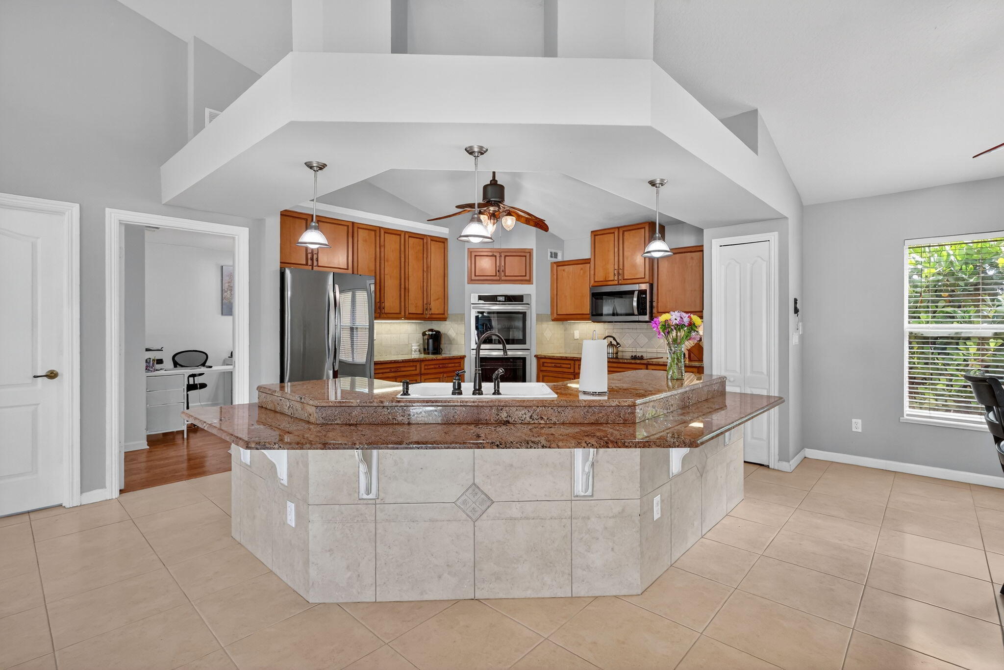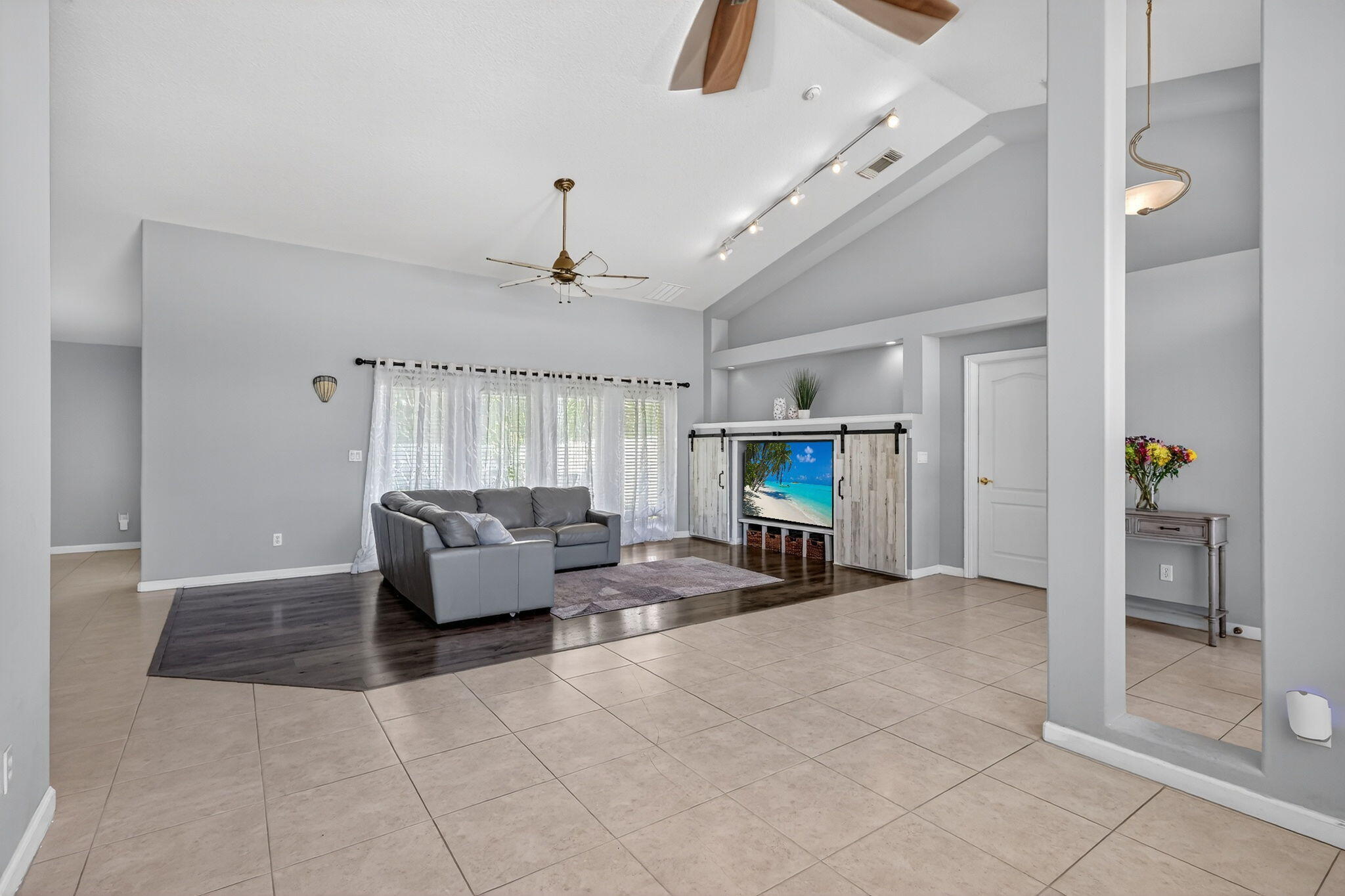 **$15K SELLER CREDIT for new roof at closing!** Two Master Suites in your Port St Lucie home! This impressive 5 BEDROOM 4 BATH home on a prime corner lot offers a unique and desirable feature: the TWO MASTER SUITES are ideal for Multi-generational living or a comfortable mother-in-law suite. One of the master suites includes a practical stackable washer/dryer. Tucked away for tranquility, yet with easy access to I-95 and the Turnpike, this home offers the best of both worlds. You'll appreciate the flexible split floor plan with a large great room, dramatic vaulted ceilings, and spacious additional bedrooms. A 3-car garage offers ample storage. The ''Tale of Two Backyards'' offers a private fenced area perfect for a pool and a large additional space for your outdoor needs.