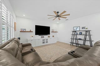 Welcome to your dream home in the heart of Port St. Lucie, Florida! This stunning two-story residence boasts 2,582 square feet of beautifully designed living space, offering the perfect blend of elegance and comfort. Fully fenced and features a motorized screen patio!The exterior captivates with its vibrant blue facade, complemented by lush landscaping and a spacious two-car garage. Step inside to be greeted by a bright and airy open floor plan. The living area is impeccably designed for entertaining, featuring sleek wood-look tile flooring and expansive windows that bathe the room in natural light.The gourmet kitchen is a chef's delight, complete with high-end stainless steel appliances, pristine white cabinetry, and a large center island with quartz countertops. The adjacent dining area is perfect for family meals, offering picturesque views of the serene backyard. Upstairs, the luxurious master suite awaits, providing a spacious retreat with plush carpeting, a stylish ceiling fan, and a large window offering panoramic views. The en-suite bathroom is equipped with dual vanities, a walk-in shower, and a generous walk-in closet. The home features three additional well-appointed bedrooms, providing ample space for family and guests, along with a chic half bath and a full guest bathroom, each showcasing modern fixtures and finishes. Work from home in style with a dedicated office space, beautifully configured for productivity. Embrace Florida living with a covered patio that's perfect for relaxing and entertaining guests, set within a private, fenced backyard. Located in a desirable community, this exquisite property offers convenient access to local amenities. Don't miss the opportunity to make this spectacular 5-bedrooms, 3-bathrooms home yours! Schedule a private tour today and experience the luxury and comfort that awaits you in Port St. Lucie.