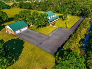 Welcome to ''Five Oaks Ranch'' nestled on nearly 10 acres. This extraordinary two-story estate offers 6,572 square feet of luxurious living space. This home features an over-sized chef's kitchen, perfect for entertaining and culinary creativity. Upstairs flex area can serve as a second living space or turned into a second master suite. Step outside to your private oasis featuring an enclosed heated pool and spa, ideal for year-round enjoyment. The outdoor kitchen makes it convenient to entertain by the pool. This property also features an extended driveway, providing ample space for multiple uses -whether for boats, RVs, or an extensive car collection. The separate four-car garage includes an expansive workshop with an upstairs loft providing endless possibilities.