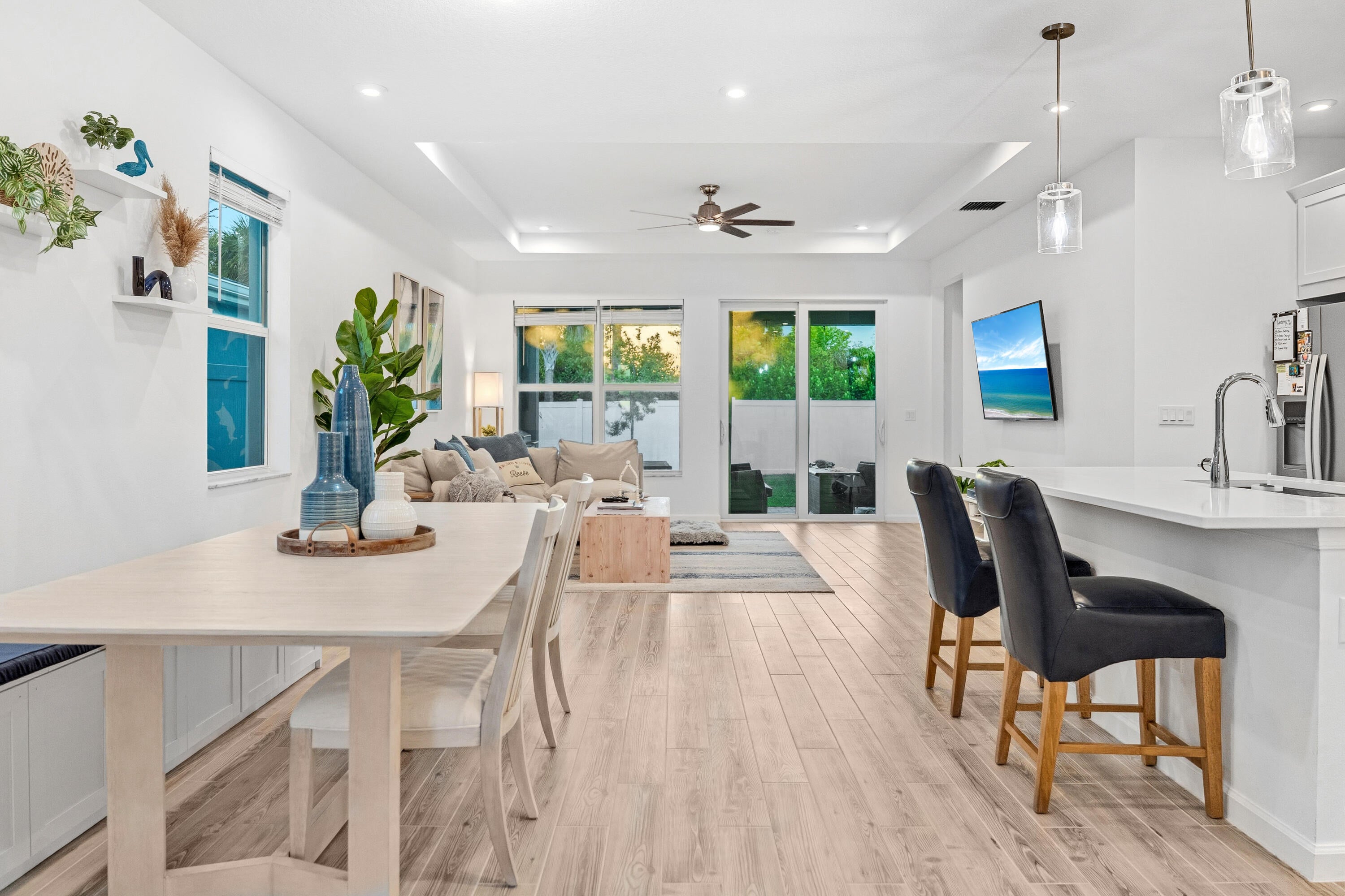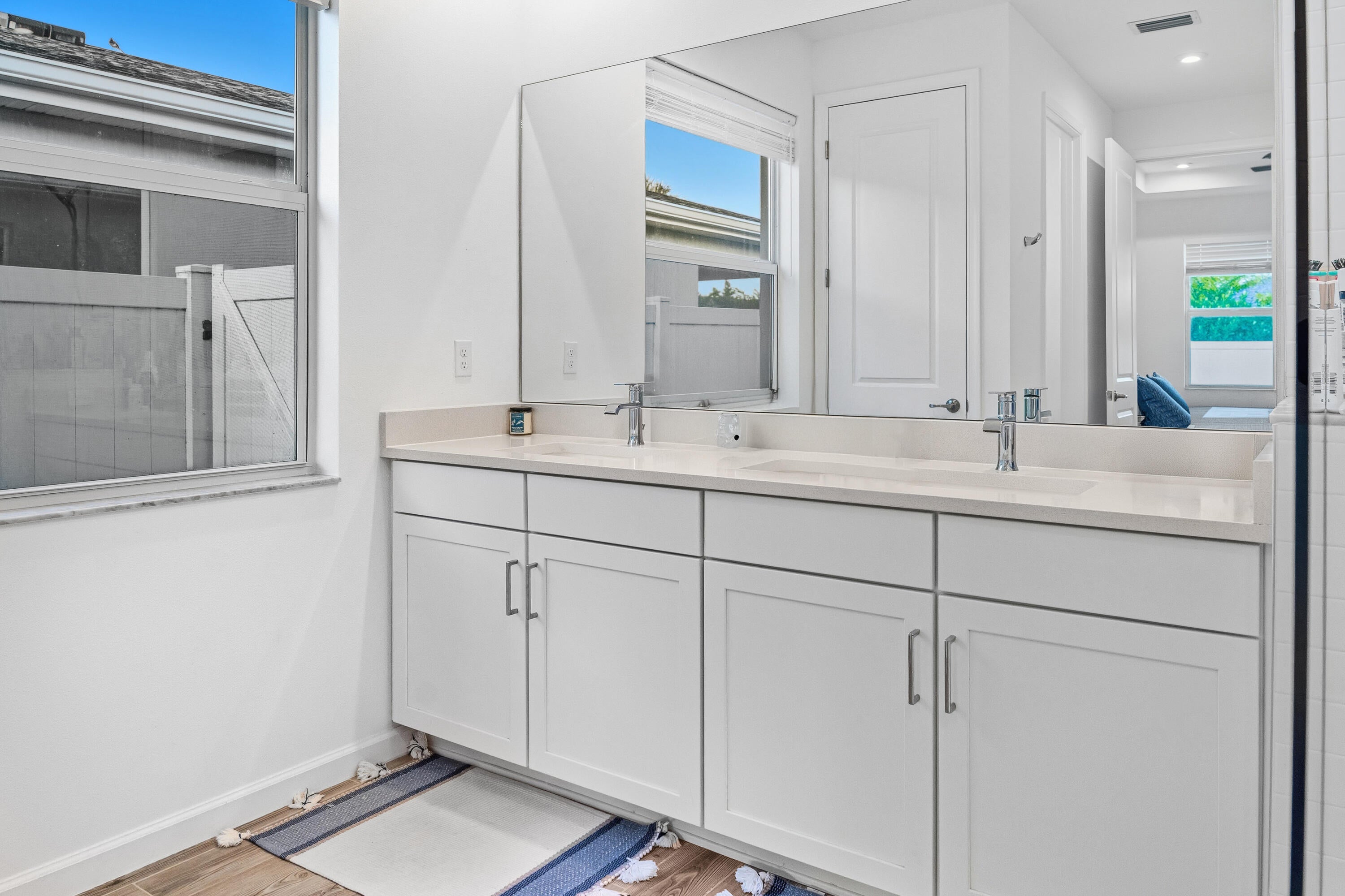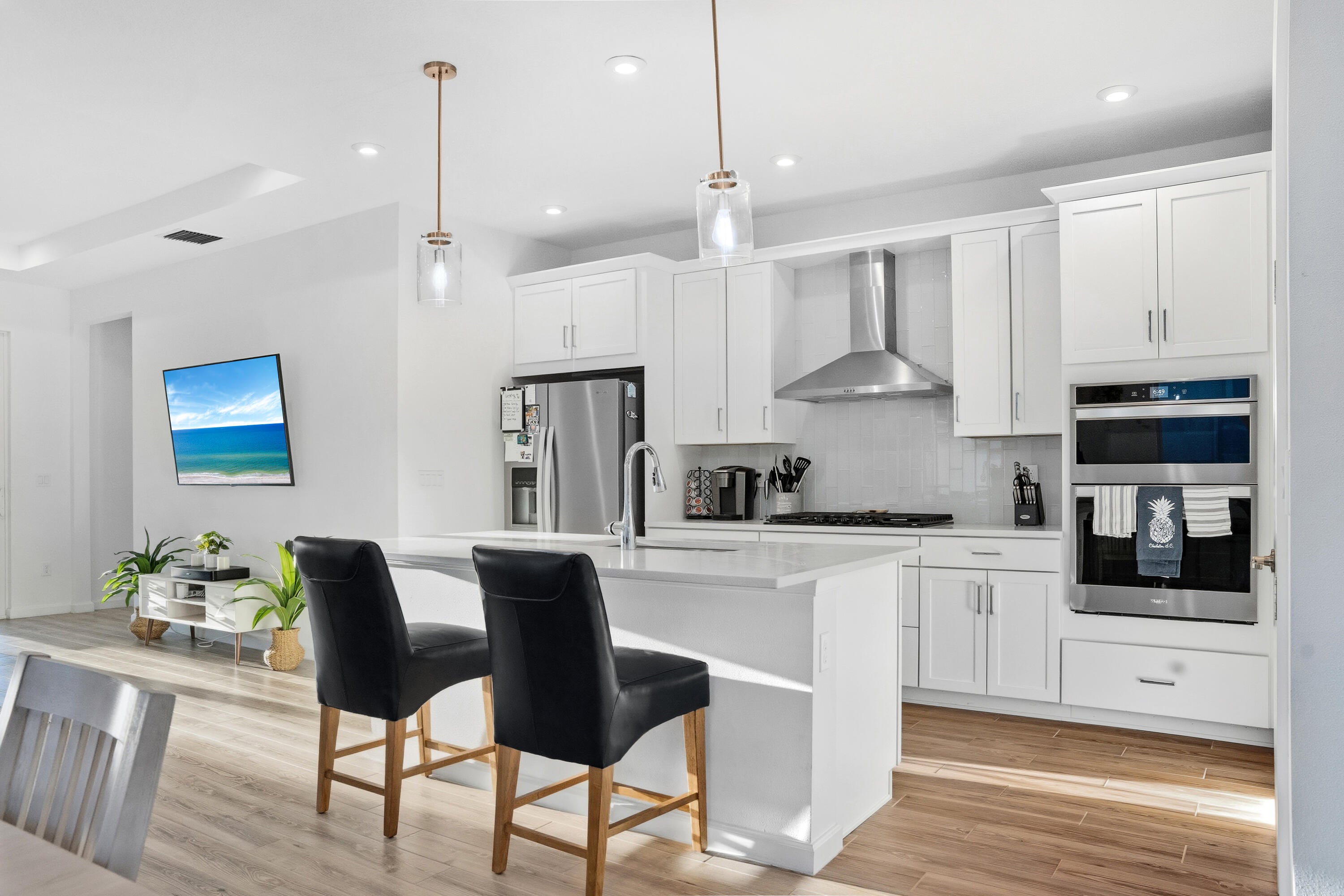 This stunning 2-bedroom, 2-bathroom home with bonus room offers the perfect blend of comfort and luxury in the highly desirable Emery neighborhood of Tradition. Built in November 2022, this Aspen model by Mattamy Homes features ALL available luxury upgrades.Step inside to discover vaulted ceilings throughout the living areas and primary bedroom. The gourmet kitchen showcases elegant white shaker cabinets with quartz countertops, stainless steel appliances including a gas stovetop, built-in oven, microwave, dishwasher, and refrigerator. You'll love the walk-in pantry and convenient storage options throughout.The spacious primary bedroom includes an oversized walk-in closet and connects to a luxurious bathroom featuring a walk-in spa shower with upgraded fixtures. Both bathrooms boast beautiful quartz countertops and premium Moen fixtures. Additional features include a versatile bonus room perfect for an office, nursery, or third bedroom, hurricane-resistant glass windows allowing abundant natural light, smart home thermostat, and EV charging wiring. The home comes complete with top-of-the-line LG washer and dryer. Outside, enjoy your private fenced backyard with paver patio, perfect for entertaining. The home's location is just 5 minutes from downtown, steps away from the NEW Tradition park, top schools, and offers access to the community tram system.