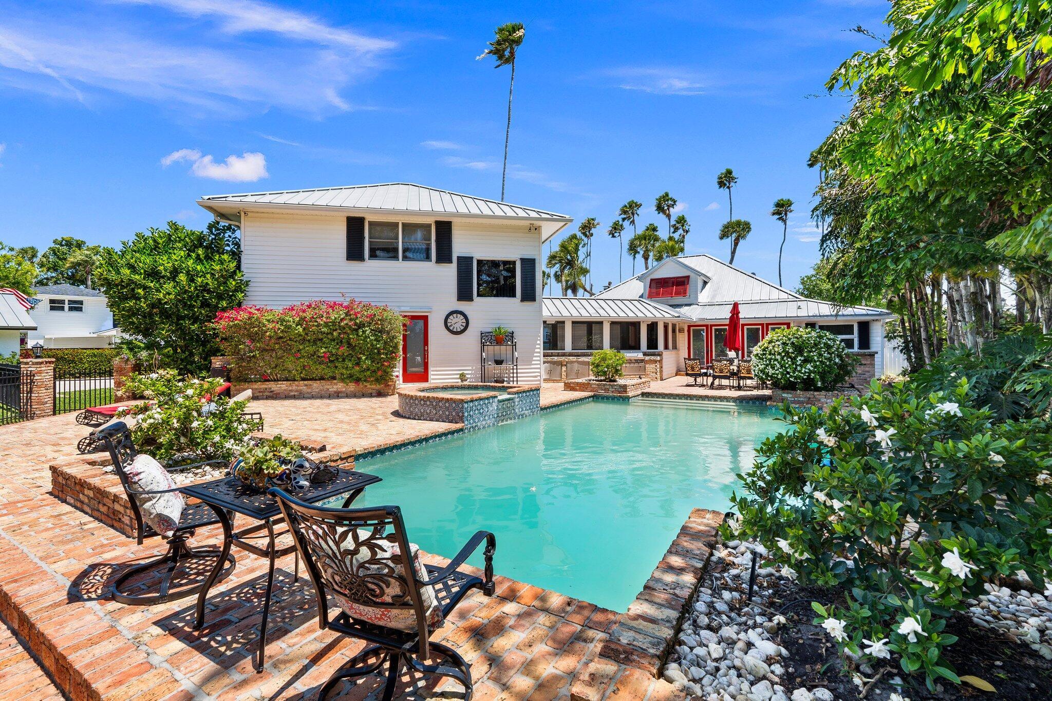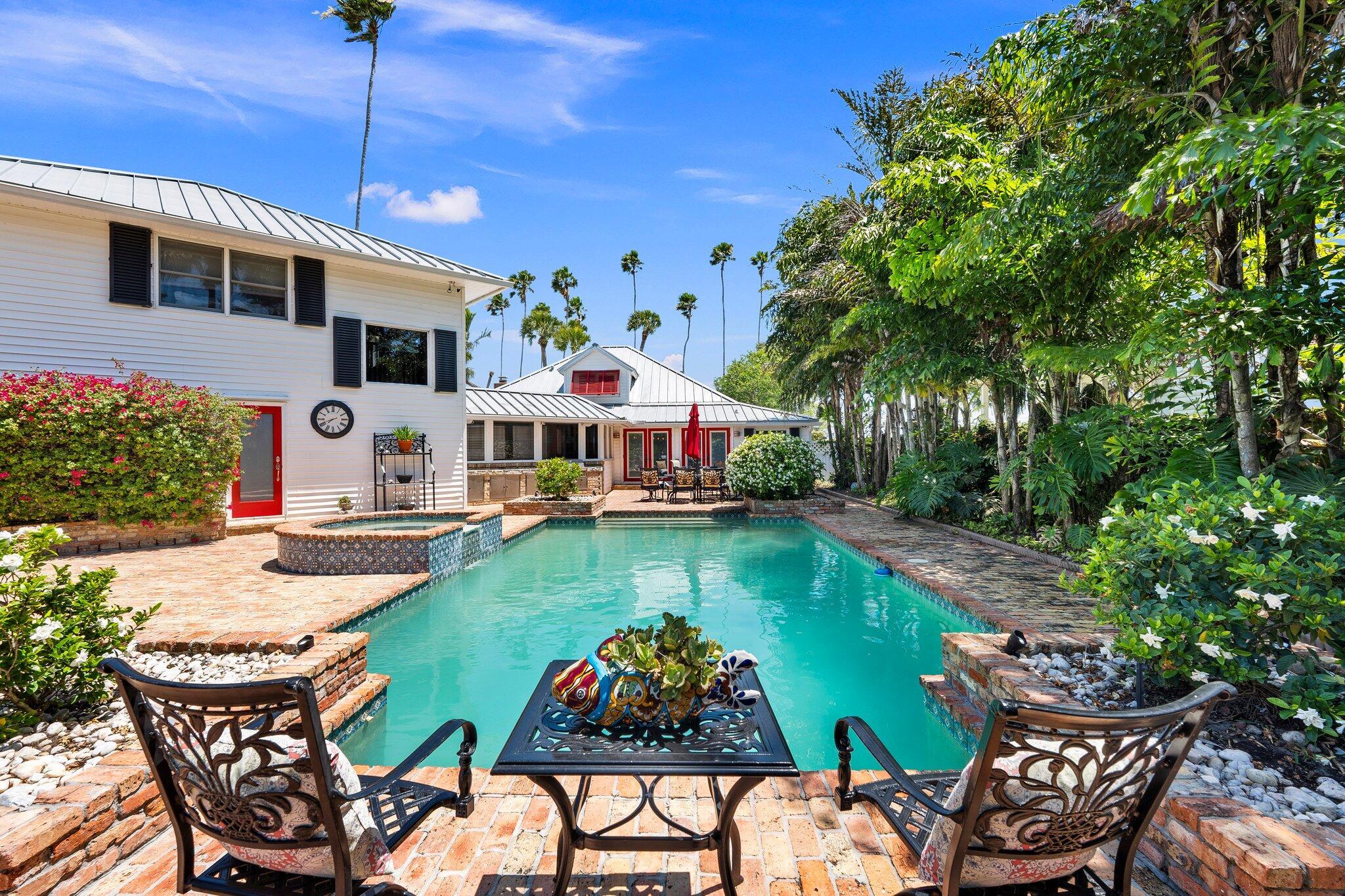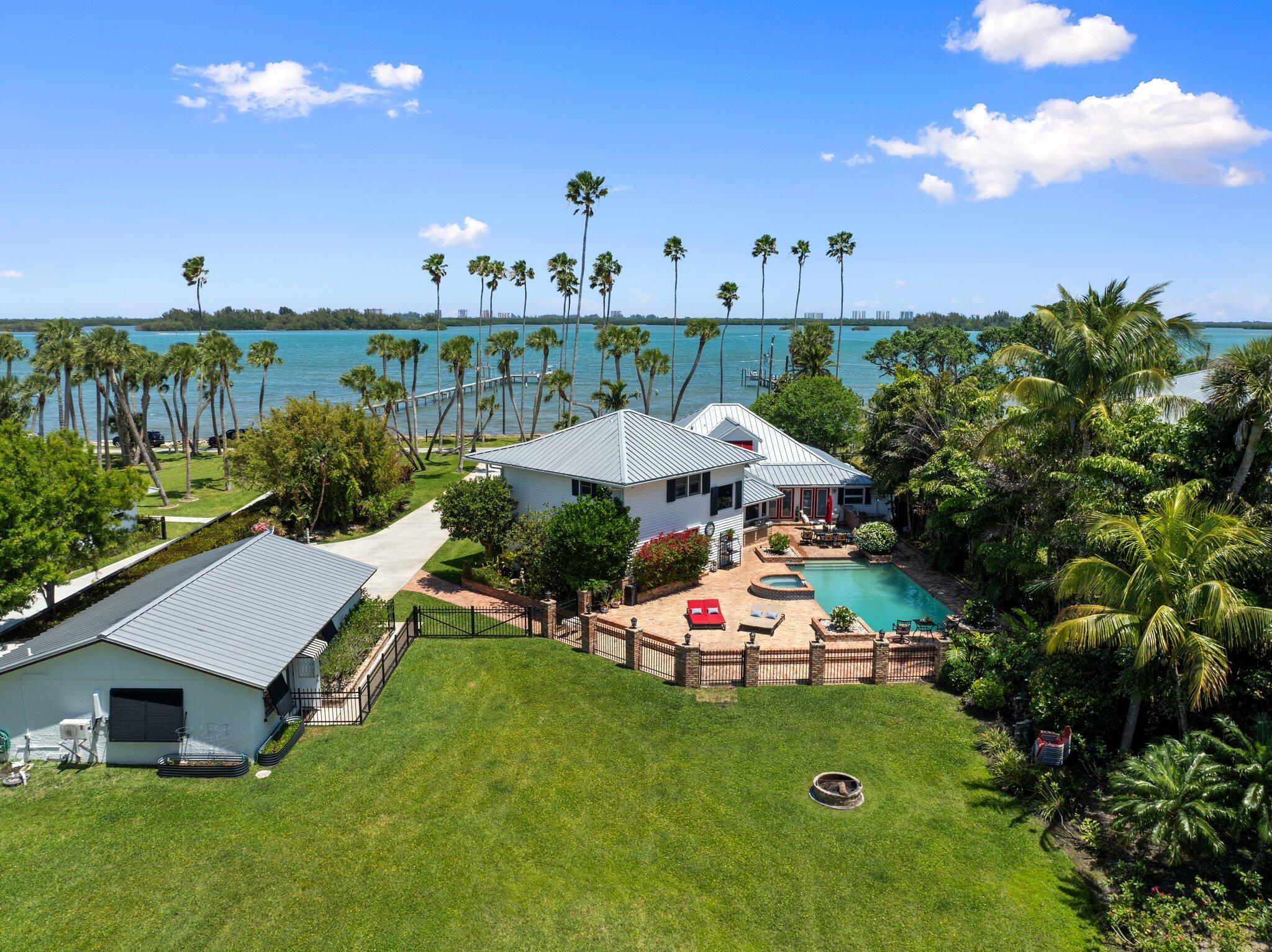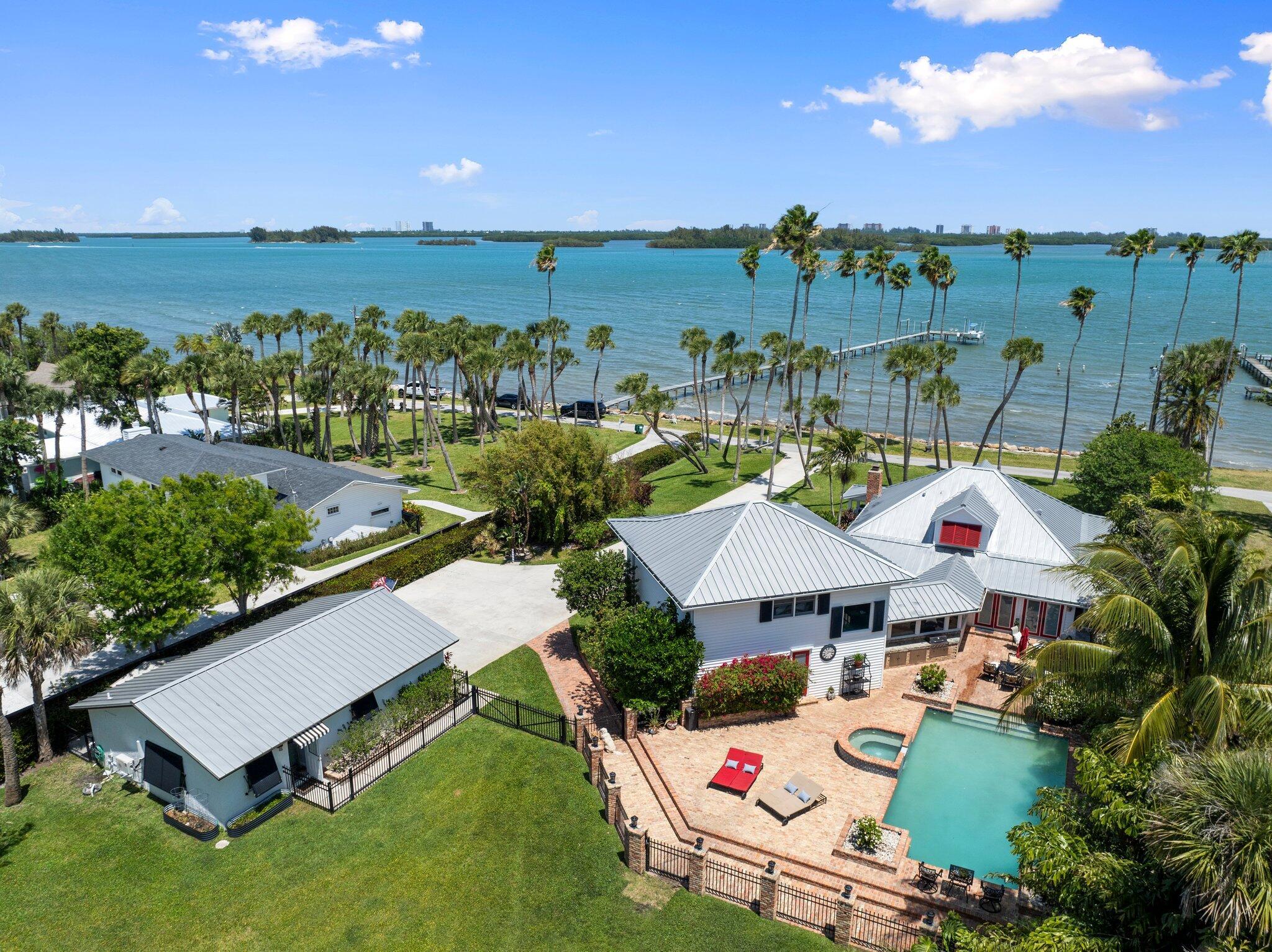 Experience the ultimate in coastal luxury with this rare open-water estate set on approximately 3.5 acres of impeccably manicured grounds in prestigious St. Lucie Village. The main residence offers 5 spacious bedrooms and 2.5 baths, perfectly blending elegance and comfort. Enjoy breathtaking water views and year-round relaxation with a resort-style pool, expansive outdoor living spaces, private dockage, and a boat lift--ideal for boating enthusiasts. A charming 1-bedroom, 1-bath cottage provides ideal guest accommodations or a private retreat. This is a one-of-a-kind opportunity to own a private waterfront sanctuary. RECENT APPRAISAL supports the listed price, reflecting current market conditions.