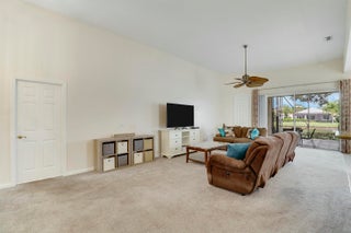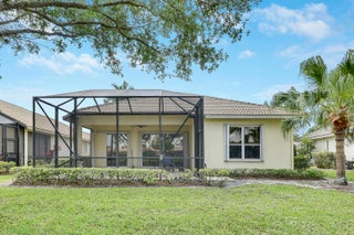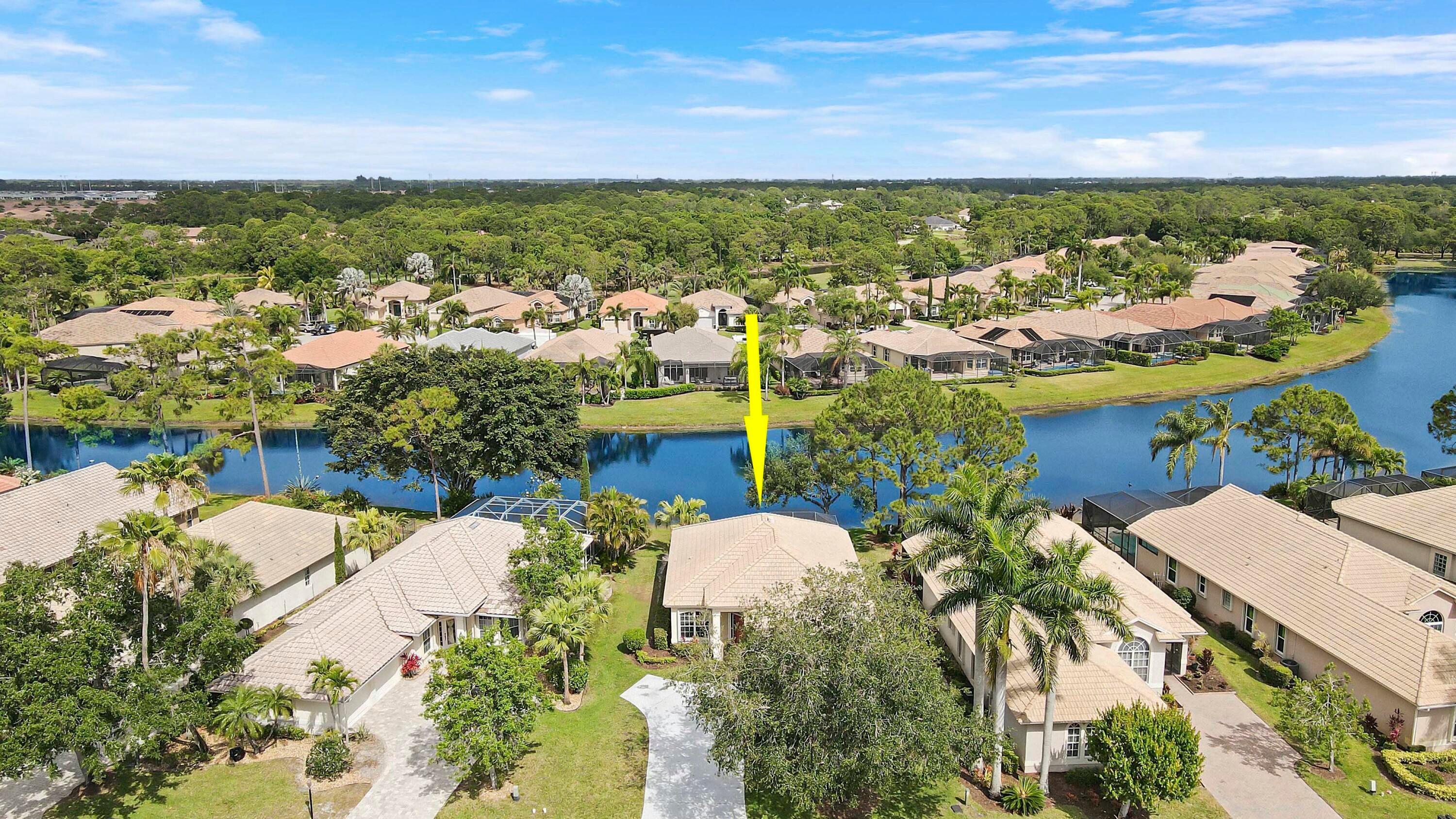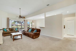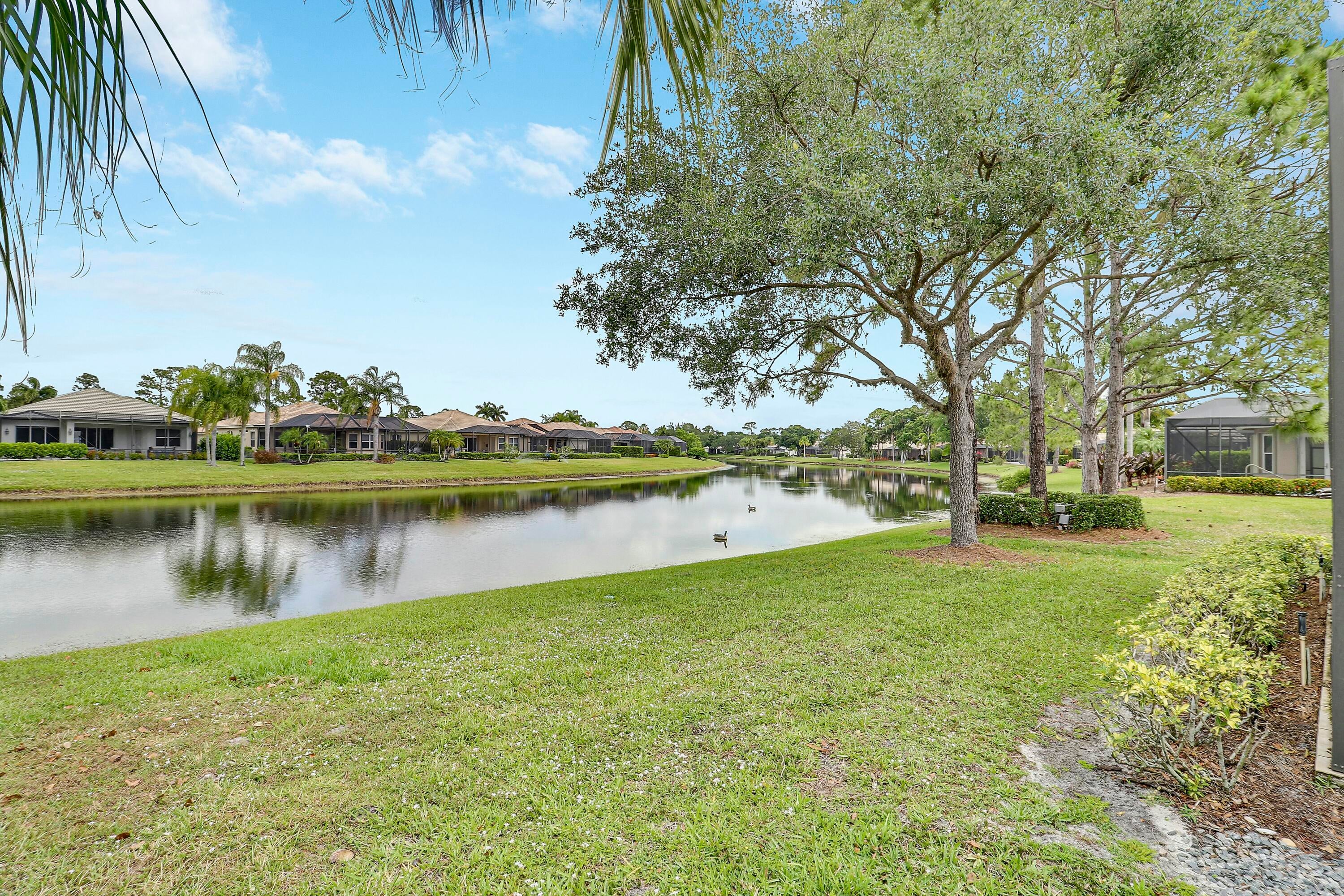 This 2 bedroom with DEN and 2 bath with 2 car garage has everything you are looking for. Open concept with beautiful kitchen, granite countertops, white cabinets and peninsula for seating. The living area is tiled under the carpet. EXTENDED screened in Patio over looking an AMAZING WATER VIEW. PGA Village has mature trees lining the streets and the Island Club has the resort style pool, recreation center, fitness center, pickle ball, tennis and more. Oak Hill is near the front of the community which is an ideal location. You will fall in love as soon as you step inside and see the open floorplan leading to the expansive water view. The seller preferred carpet so they had it installed over the tile which I can provide photos.