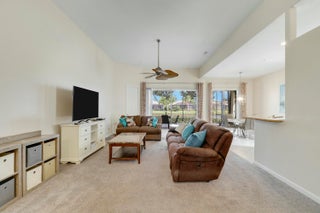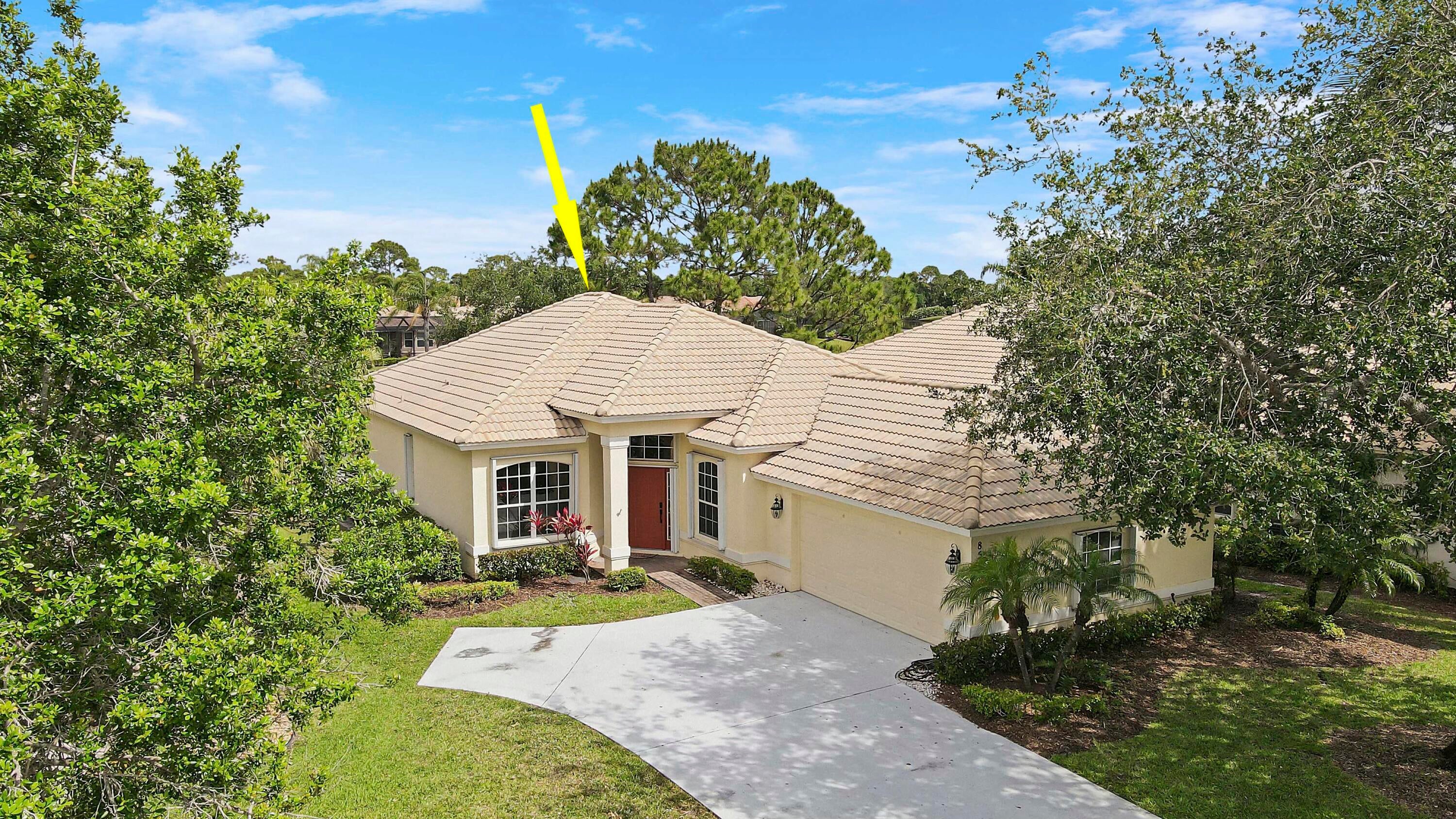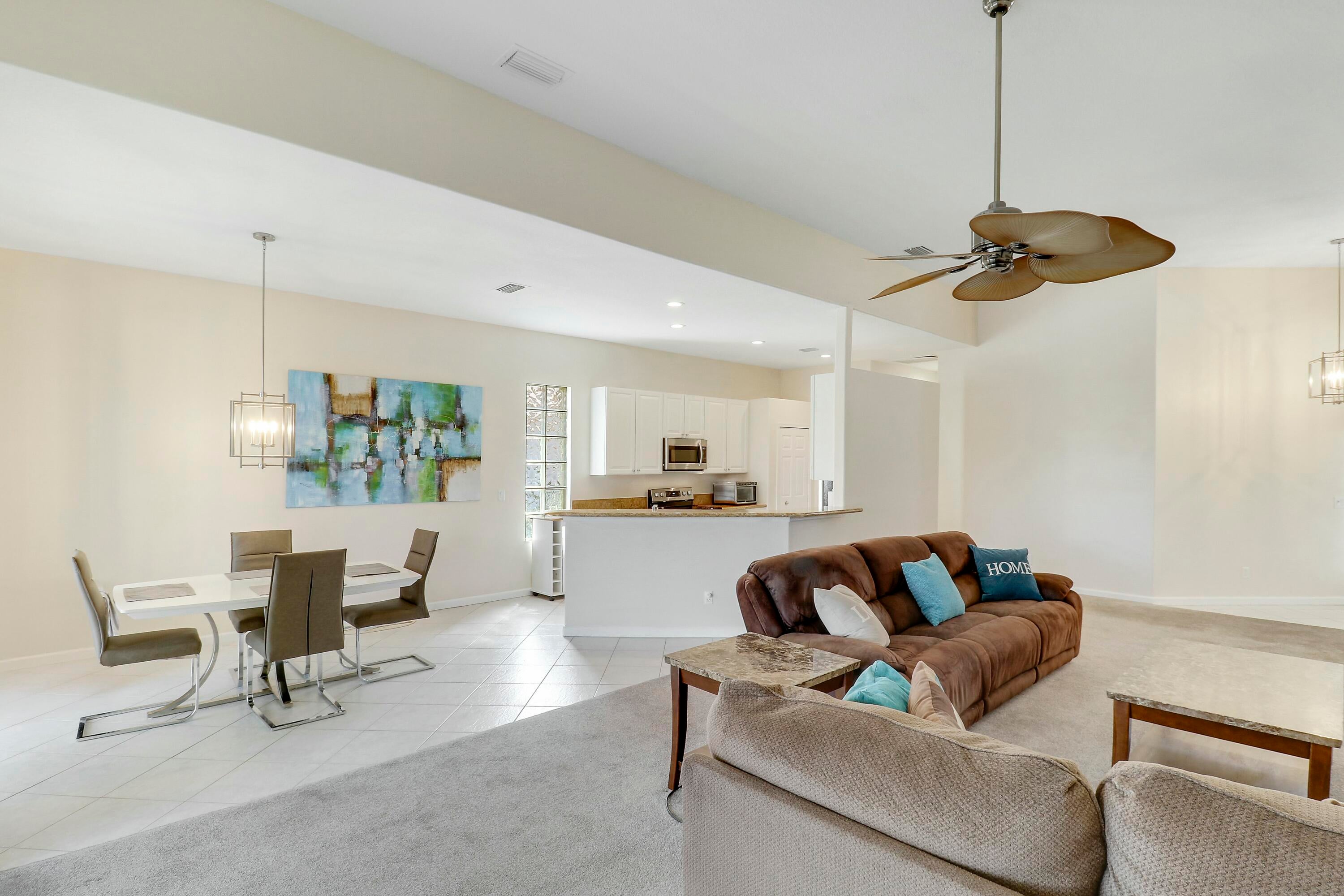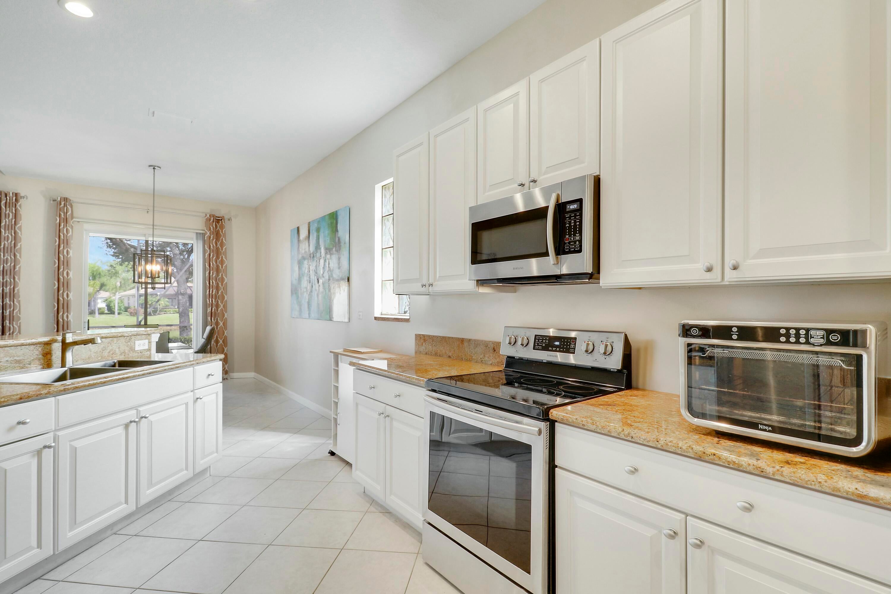 This 2 bedroom with DEN and 2 bath with 2 car garage has everything you are looking for. Open concept with beautiful kitchen, granite countertops, white cabinets and peninsula for seating. The living area is tiled under the carpet. EXTENDED screened in Patio over looking an AMAZING WATER VIEW. PGA Village has mature trees lining the streets and the Island Club has the resort style pool, recreation center, fitness center, pickle ball, tennis and more. Oak Hill is near the front of the community which is an ideal location. You will fall in love as soon as you step inside and see the open floorplan leading to the expansive water view. The seller preferred carpet so they had it installed over the tile which I can provide photos.