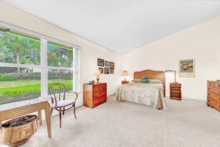 Enjoy effortless living in the desirable Monarch Country Club! This 2Bedroom PLUS DEN end-unit villa is tucked away on a quiet cul-de-sac surrounded by green space, creating a peaceful, park-like setting. The bright interior features an updated kitchen with quartz countertops, wood cabinetry, cork flooring and a spacious pantry. The primary suite includes a large walk-in closet, and there's generous storage throughout. Relax in two private outdoor spaces: a sunny atrium patio and a screened patio with tranquil views. Recent updates include a new roof (2024), full impact glass, new electrical panel (2024), and water heater (2022). The 1-car garage includes space for a golf cart. HOA covers lawn care, roof cleaning, exterior paint, cable, internet, and 24/7 manned security