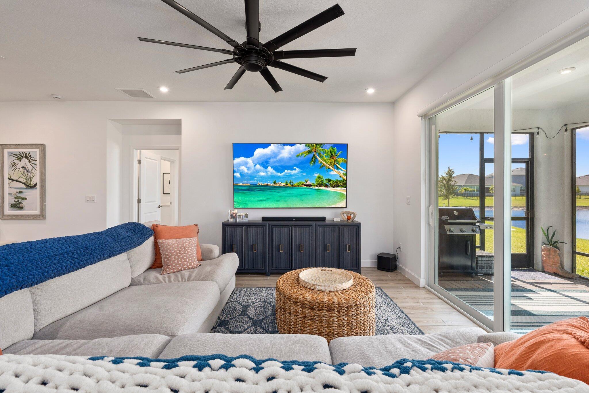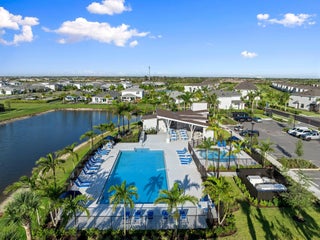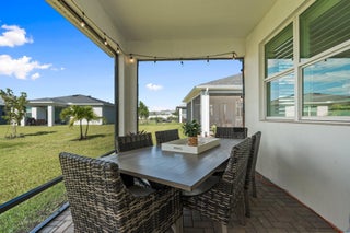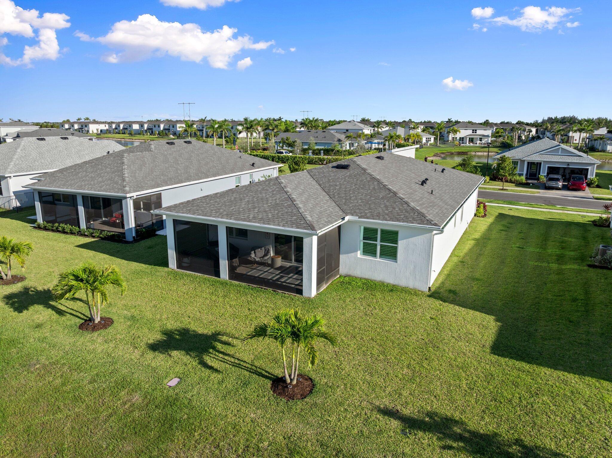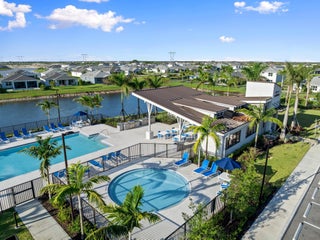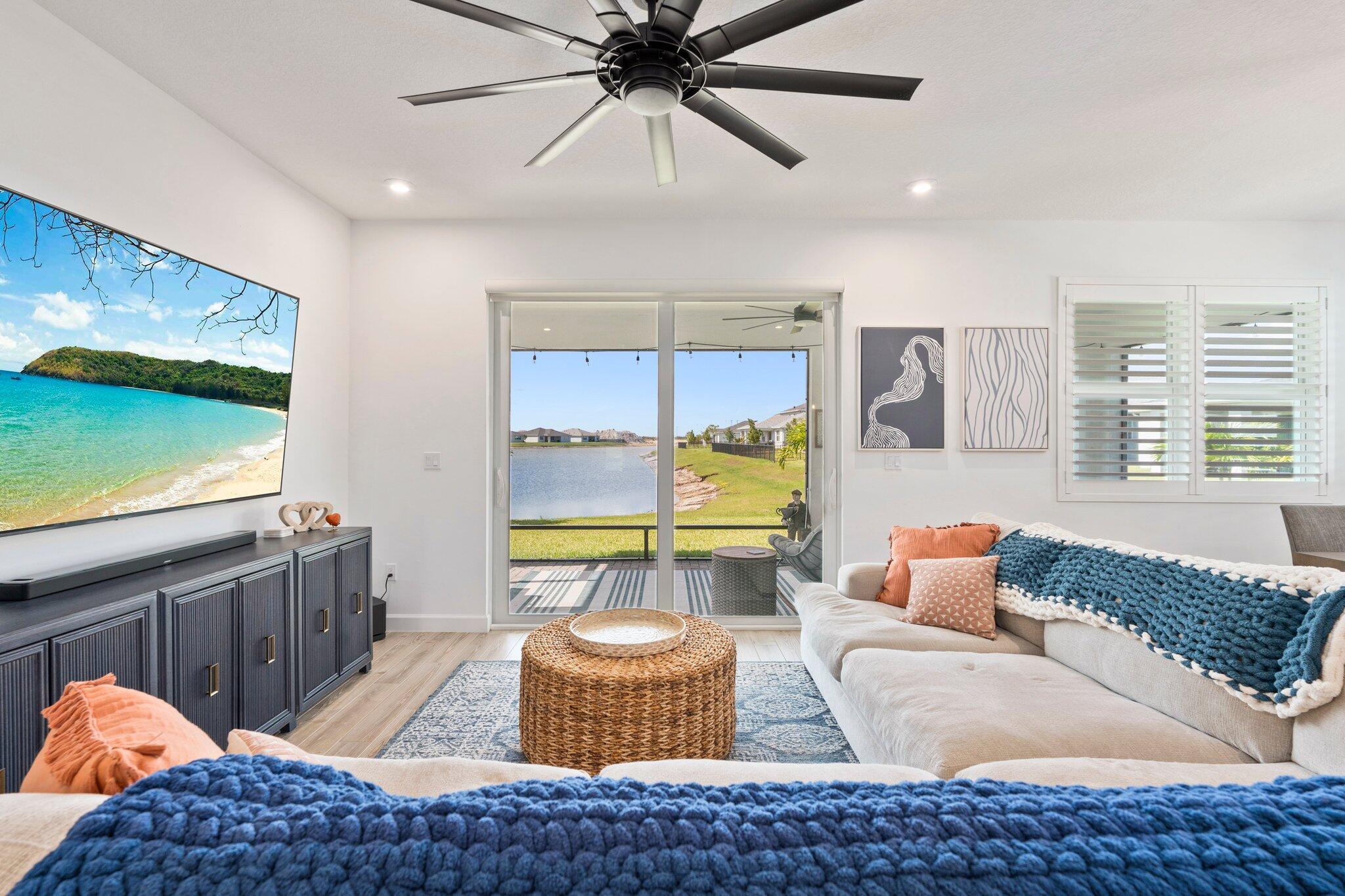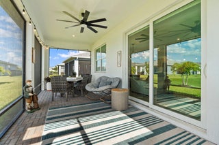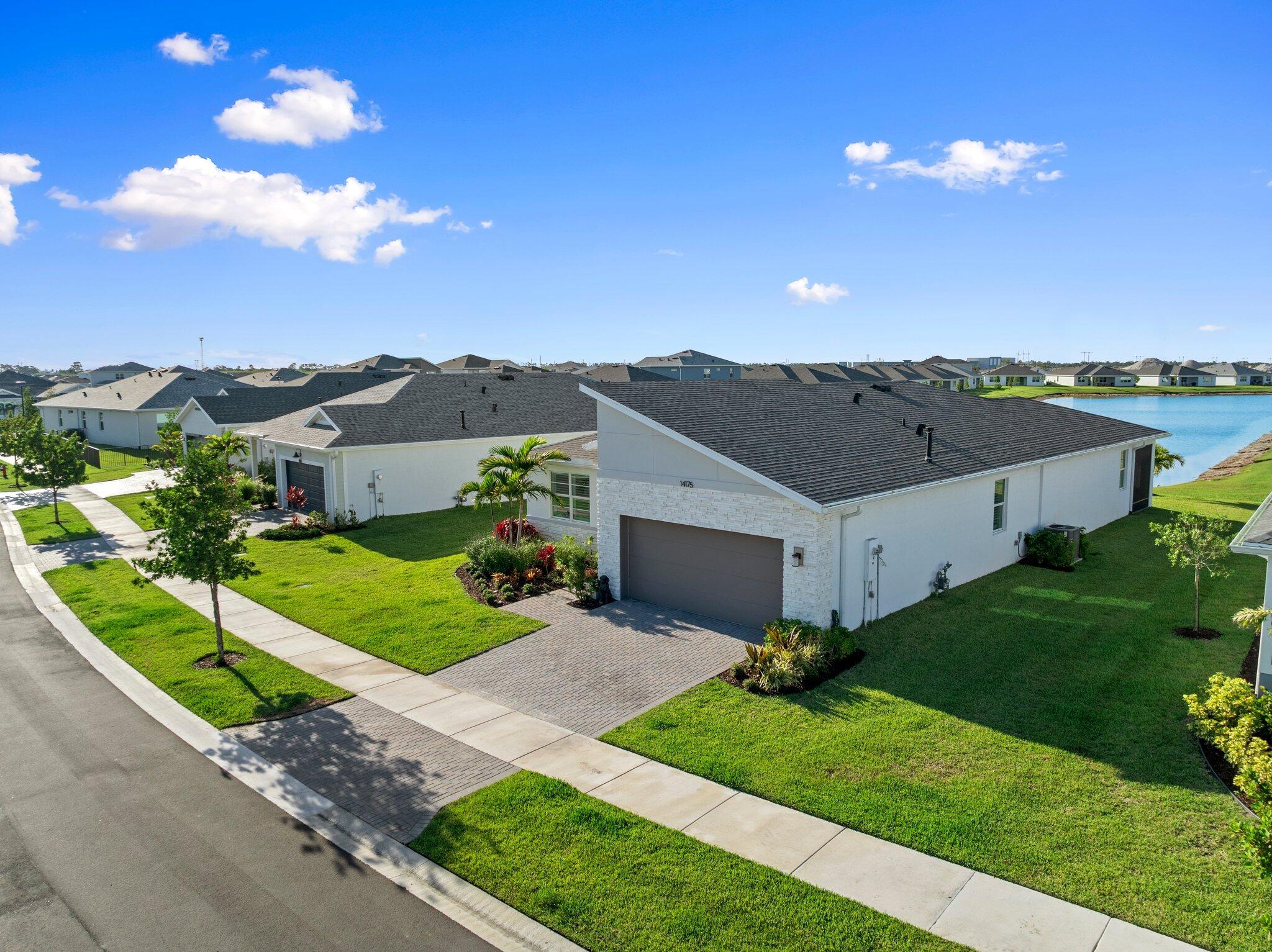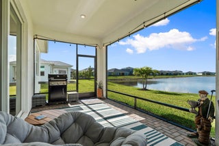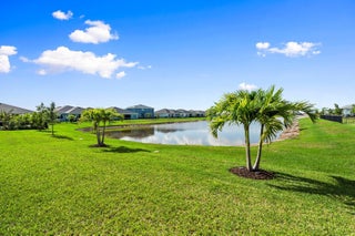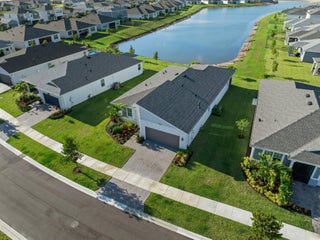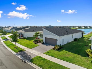 Newer home with upgrades galore! This stunning Gateway model sits on a premium lakefront lot and features an open floor plan with beautiful lake views. Enjoy wood plank tile, soaring ceilings, impact windows/doors, and upgraded fans and fixtures throughout. The gourmet kitchen shines with quartz counters, stainless appliances, gas stove, glass tile backsplash, and a large island. The split floor plan offers a private owner's suite and ample storage with pull-out drawers and a walk-in pantry. Relax on the extended, screened lanai surrounded by tropical landscaping and a yard with room for a pool (pool plan available upon request). Located in Cadence at Tradition with resort-style amenities, scenic trails, and close to shopping, dining, and community events.
