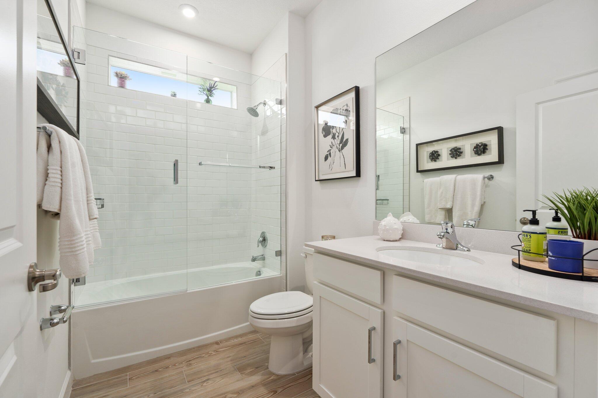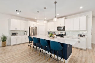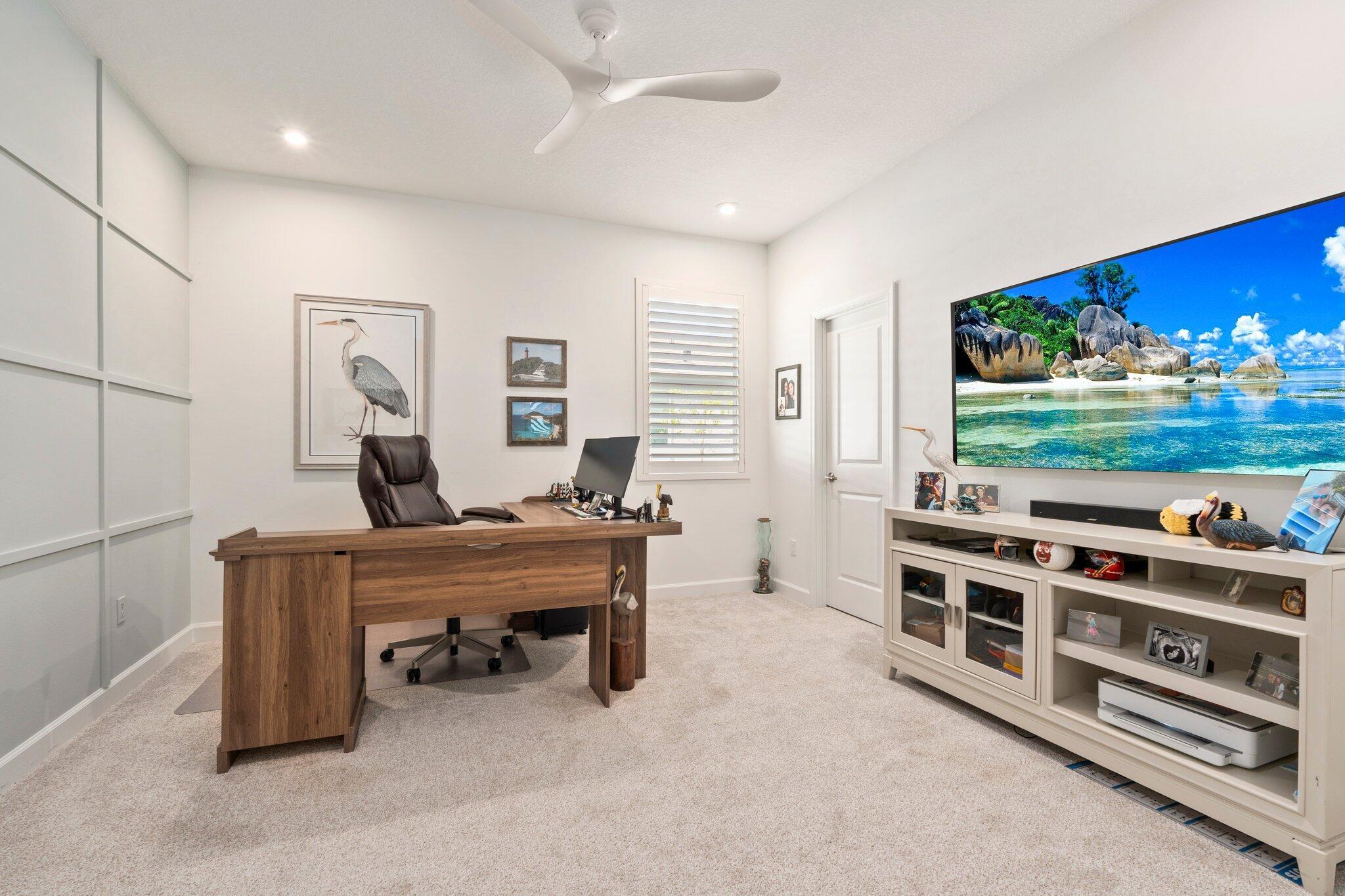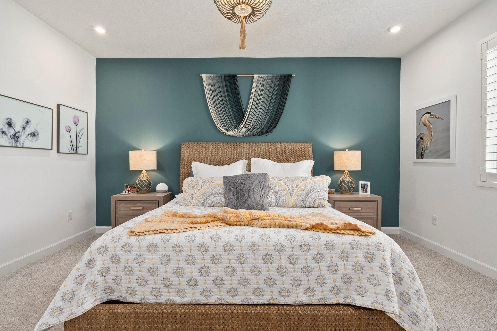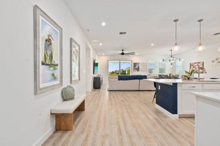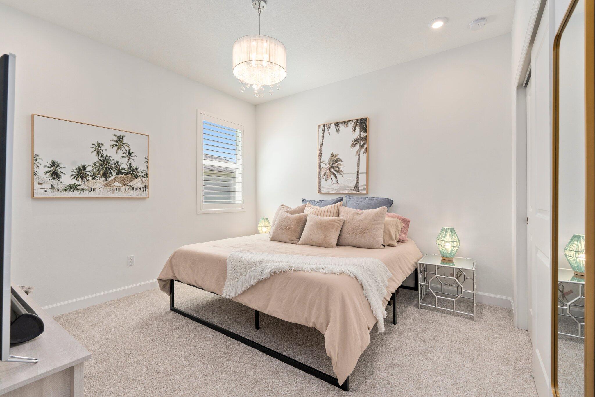 Newer home with upgrades galore! This stunning Gateway model sits on a premium lakefront lot and features an open floor plan with beautiful lake views. Enjoy wood plank tile, soaring ceilings, impact windows/doors, and upgraded fans and fixtures throughout. The gourmet kitchen shines with quartz counters, stainless appliances, gas stove, glass tile backsplash, and a large island. The split floor plan offers a private owner's suite and ample storage with pull-out drawers and a walk-in pantry. Relax on the extended, screened lanai surrounded by tropical landscaping and a yard with room for a pool (pool plan available upon request). Located in Cadence at Tradition with resort-style amenities, scenic trails, and close to shopping, dining, and community events.
