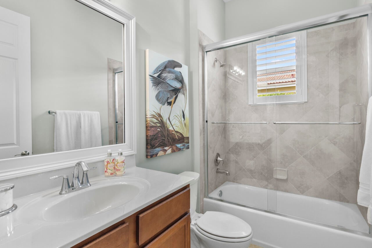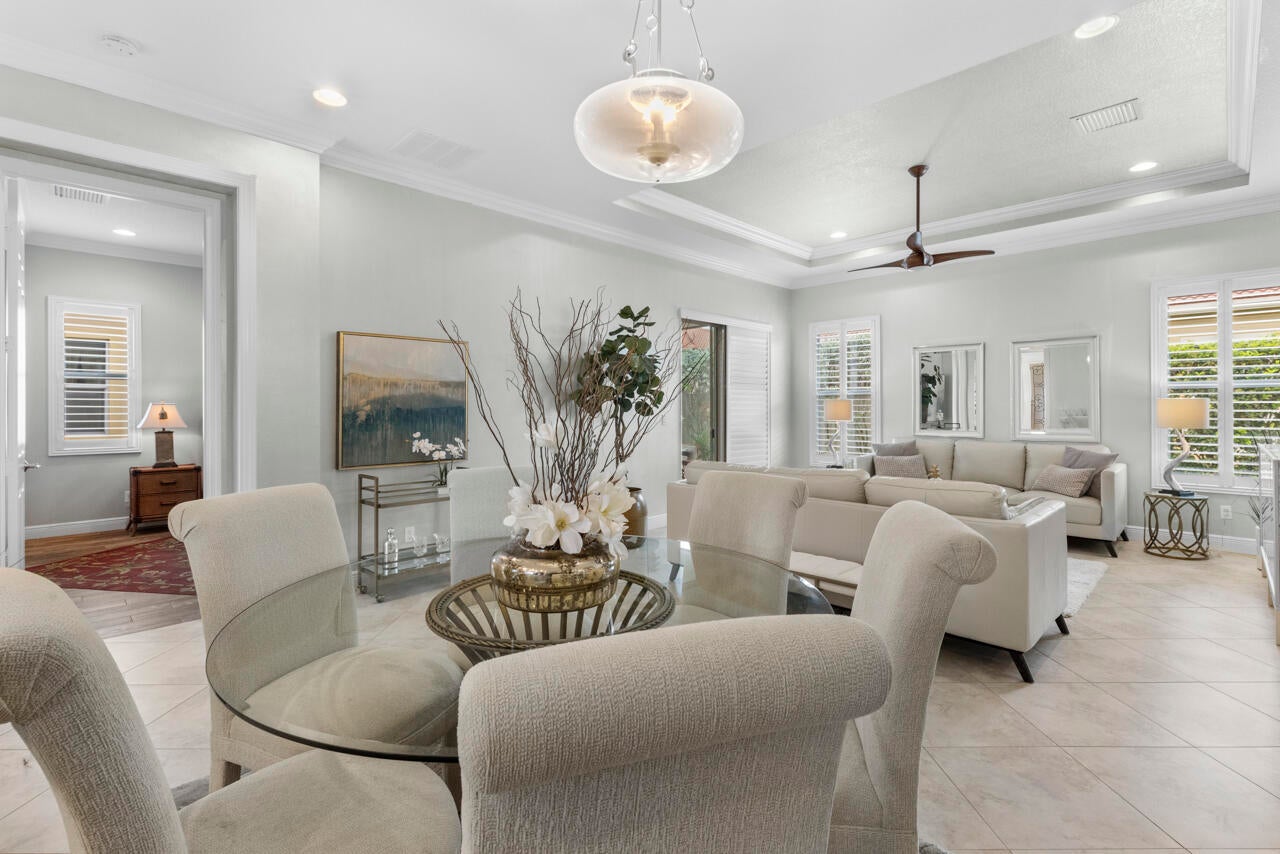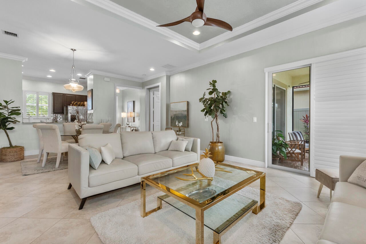 Experience luxury living in the prestigious PGA Verano community in St. Lucie West. This stunning 2-bedroom, 2-bathroom home with a 2-car garage features high ceilings with crown molding, impact windows, plantation shutters, and tiled floors throughout. The open-concept living space includes a gourmet kitchen with beautiful cabinetry, granite countertops, stainless steel appliances, and a pantry. The spacious master suite offers patio access, a walk-in closet, dual vanities, and a soaking tub. Relax or entertain on the screened patio with a stylish paver deck.