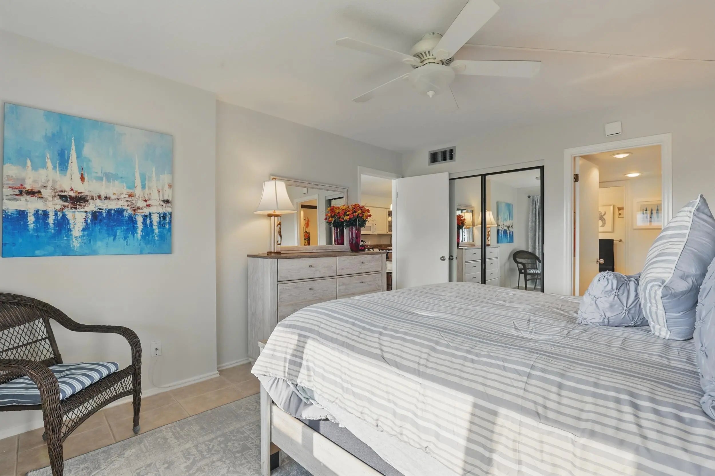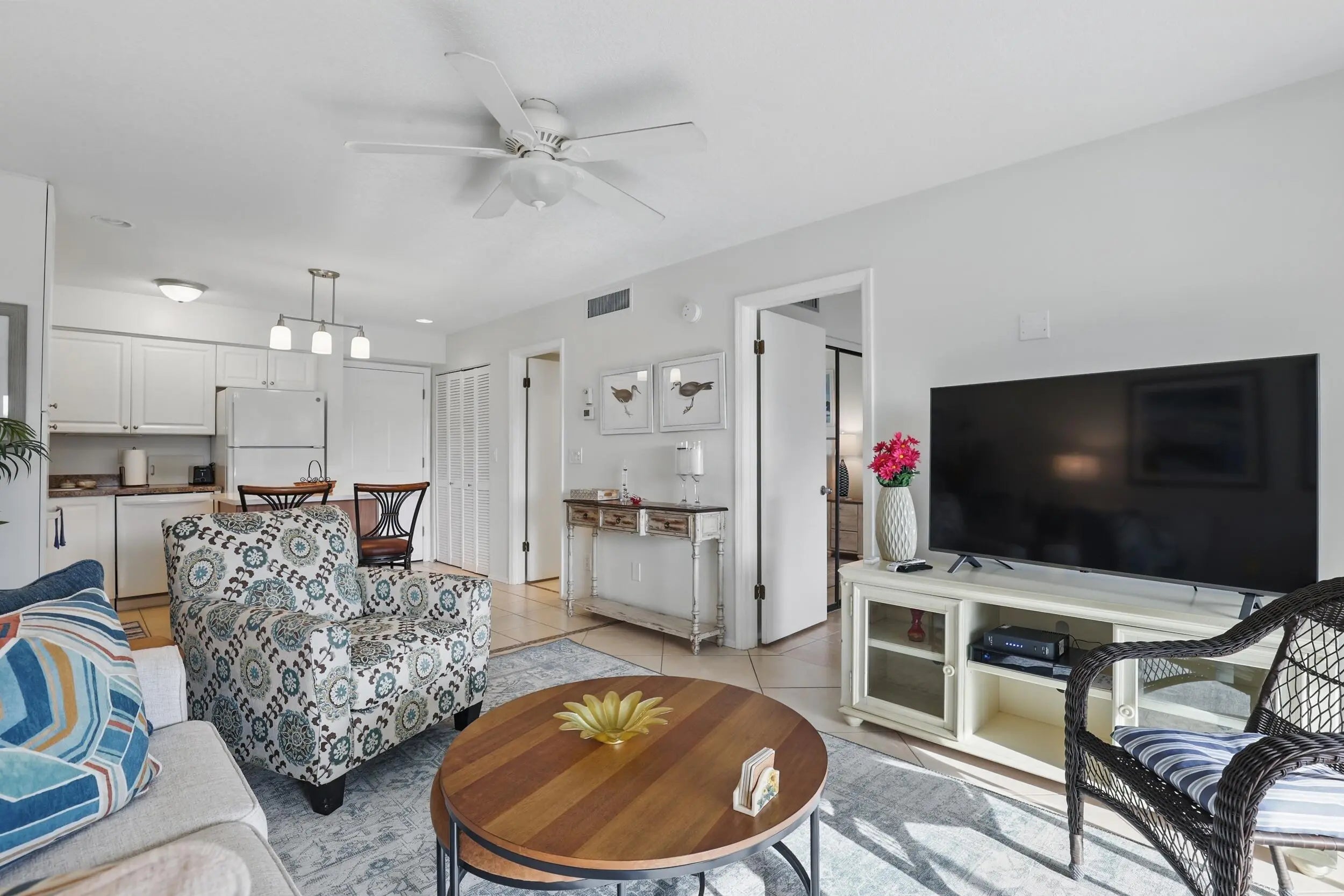 Dreaming of owning your own little piece of paradise - look no further - you've arrived. This adorable 1/1 condo comes newly furnished in chic beach decor complete with new appliances, freshly painted, new AC & tile floors throughout. Enjoy morning coffee & spectacular sunrises from the screened in patio overlooking the golf course. A short stroll to where the ocean hugs the shore, envelop yourself in the serenity of 3000 ft of unspoiled beaches. You will be privy to amenities like no other including, golf tennis pickle ball bocce ball new fitness center & so much more. Relax by the brand new resort style pool or gather w/friends for live music, lunch & libations at the lively tiki bar or dinner at the onsite ocean front restaurant. There's something for everyone at Ocean Village!