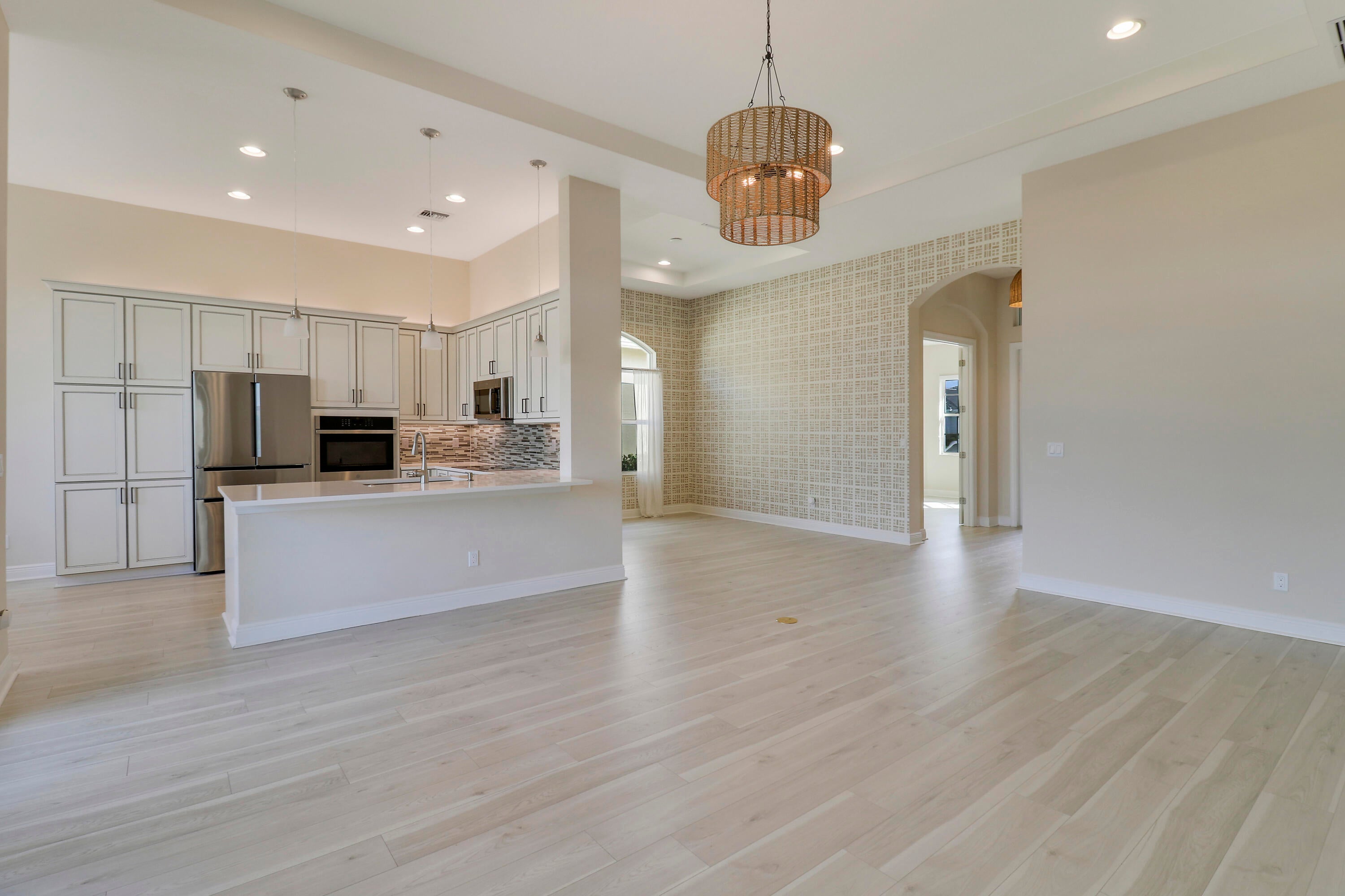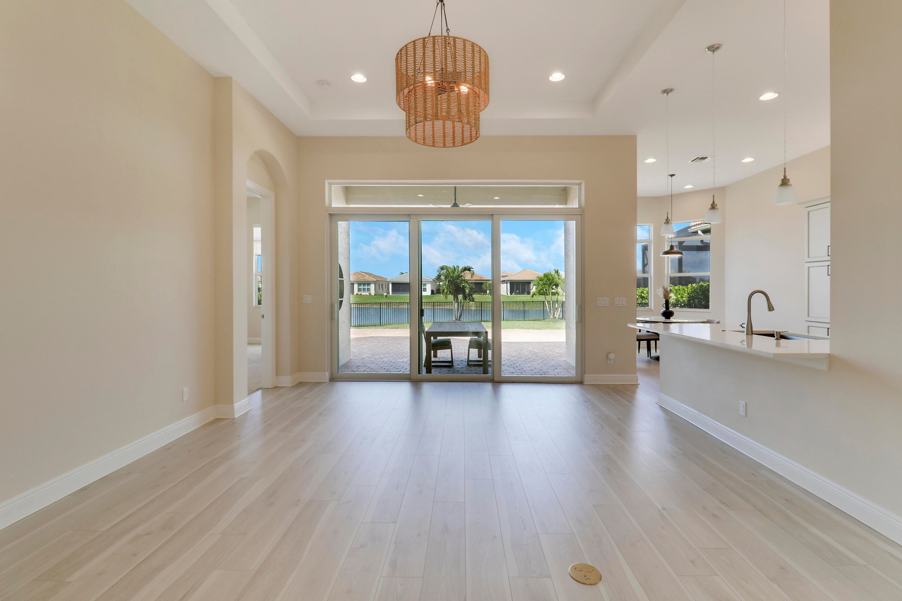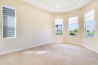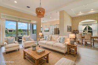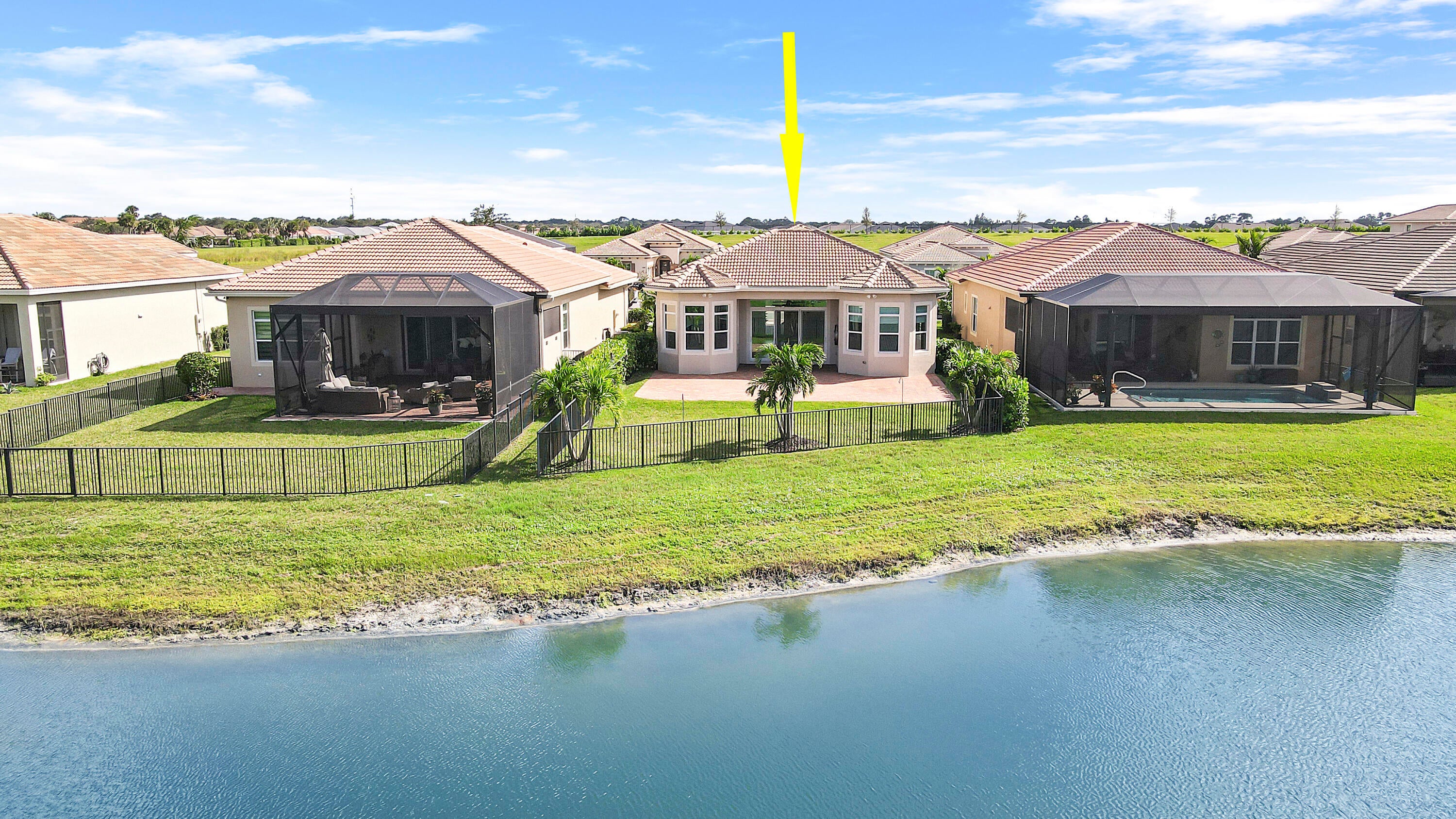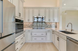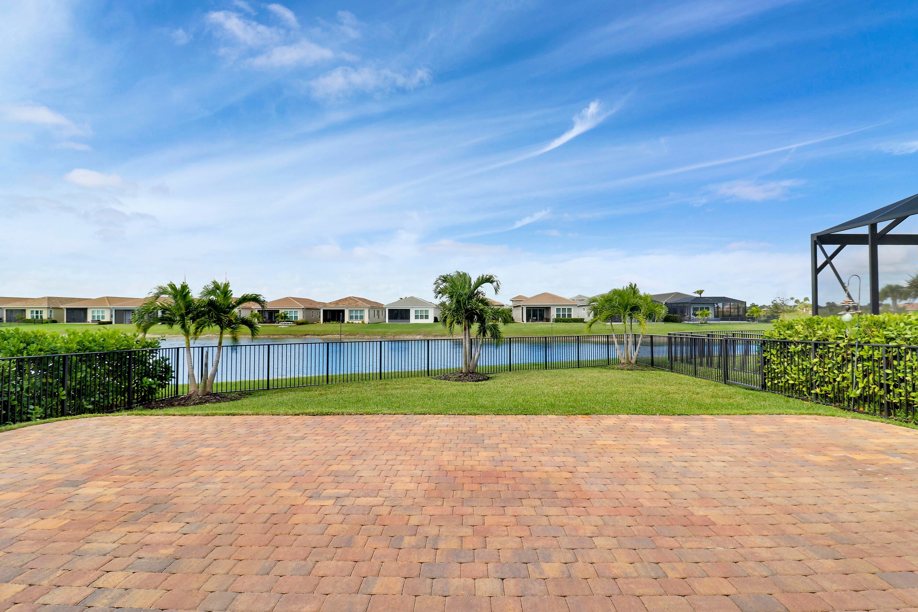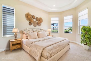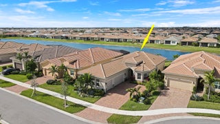 DEEP LAKE FRONT LOT ON A CUL-DE-SAC WITH A SPACIOUS, FENCED BACK YARD AND A THREE CAR GARAGE IN THE RESORT STYLE 55+ NEIGHBORHOOD OF CRESSWIND AT VERANO! Don't miss this tastefully upgraded home that is completely move-in ready! This 2BR+Den/2BA/3CG 'Isabella' floor plan was built in 2022 and is brimming with practical and stylish upgrades including decorative stone work on the front exterior, impact glass windows & doors, an oversized fenced yard, extended paver patio, glass entry front door, wallpaper accent wall, upgraded light fixtures t/o, hihat lighting in almost all the rooms, wood-look plank flooring through the main living areas & den, plush carpeting in the bedrooms, upgraded tiled bathrooms and more.The kitchen opens to the living room and has a charming casual dining area, light cabinetry, quartz counters, pendant lights, SS appliance package with wall oven and upgraded refrigerator, built in pantry cabinet, cook top, tiled back splash and under cabinet lighting. Master suite overlooks the lake views, has dual closets and an ensuite with dual stone topped vanities, soaking tub and frameless glass shower. The guest bathroom and den both have access to the hall bath. The den has double doors and is a great size, it easily can be used as a home office, additional bedroom, media room or flex space. Laundry room with utility sink and upper cabinetry for storage. The back yard of this home is the perfect spot to entertain and enjoy the sunset. With a partially covered expansive paver patio and fence already in place, it is a spot the whole family can enjoy, even the furry family members! Enjoy the quaint feel of this 55+ community with access to not only Cresswind's amenities but Verano's as well. Amenities include the 27 court pickleball center, walking paths, multiple community pools (including one just for the Cresswind neighborhood), multiple fitness centers, sauna, dog park, tennis courts, social clubhouse and so much more. HOA dues include basic cable, internet, alarm monitoring, lawn care, common area maintenance, gated security and access to all amenities. For avid golfers, there is a cart path leading to the PGA Golf Club directly from the community (membership is optional and availability varies). This community truly has something for everyone. Call today and start enjoying resort style living.