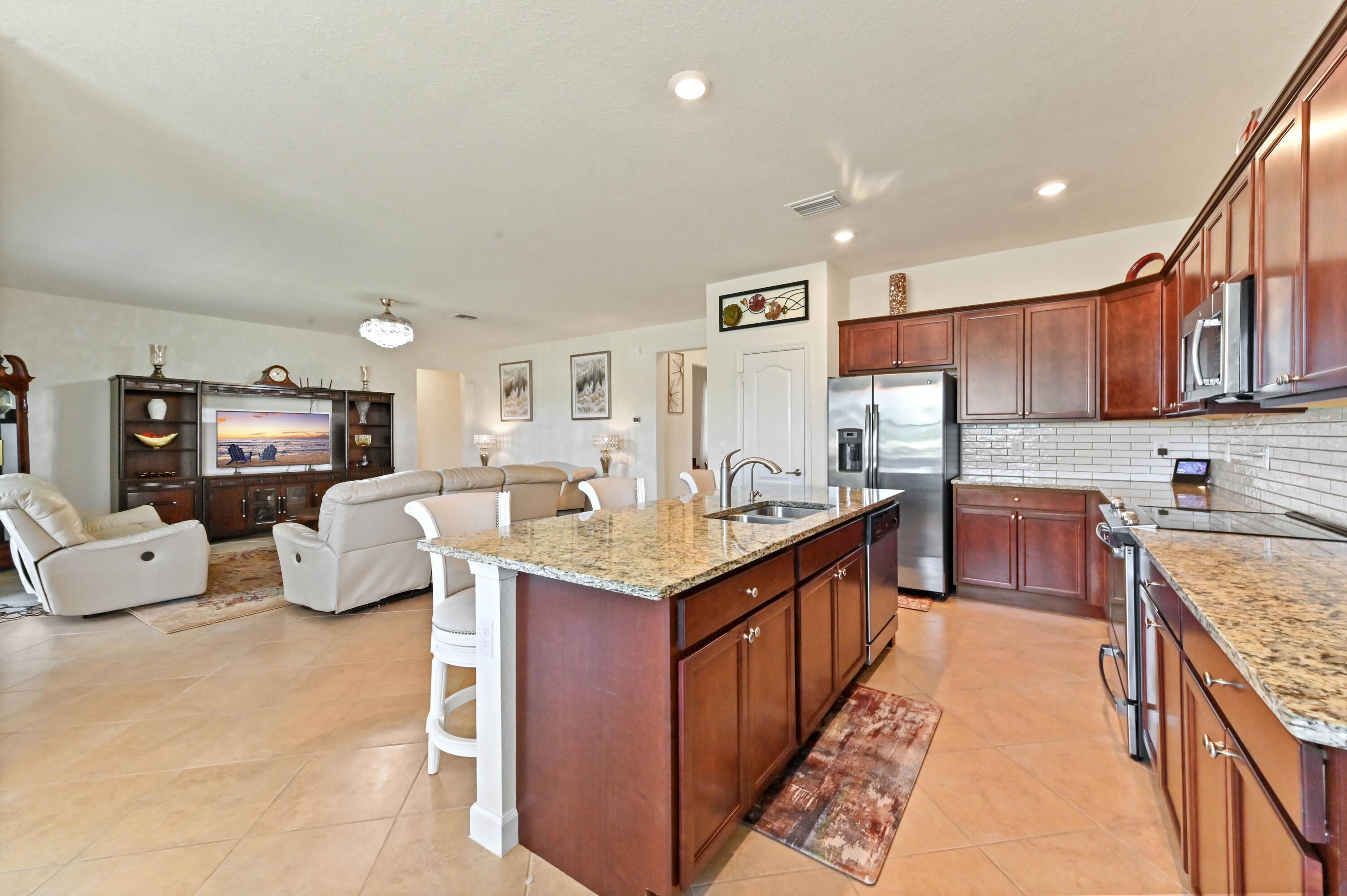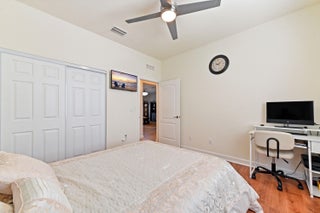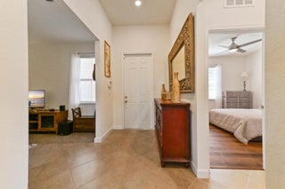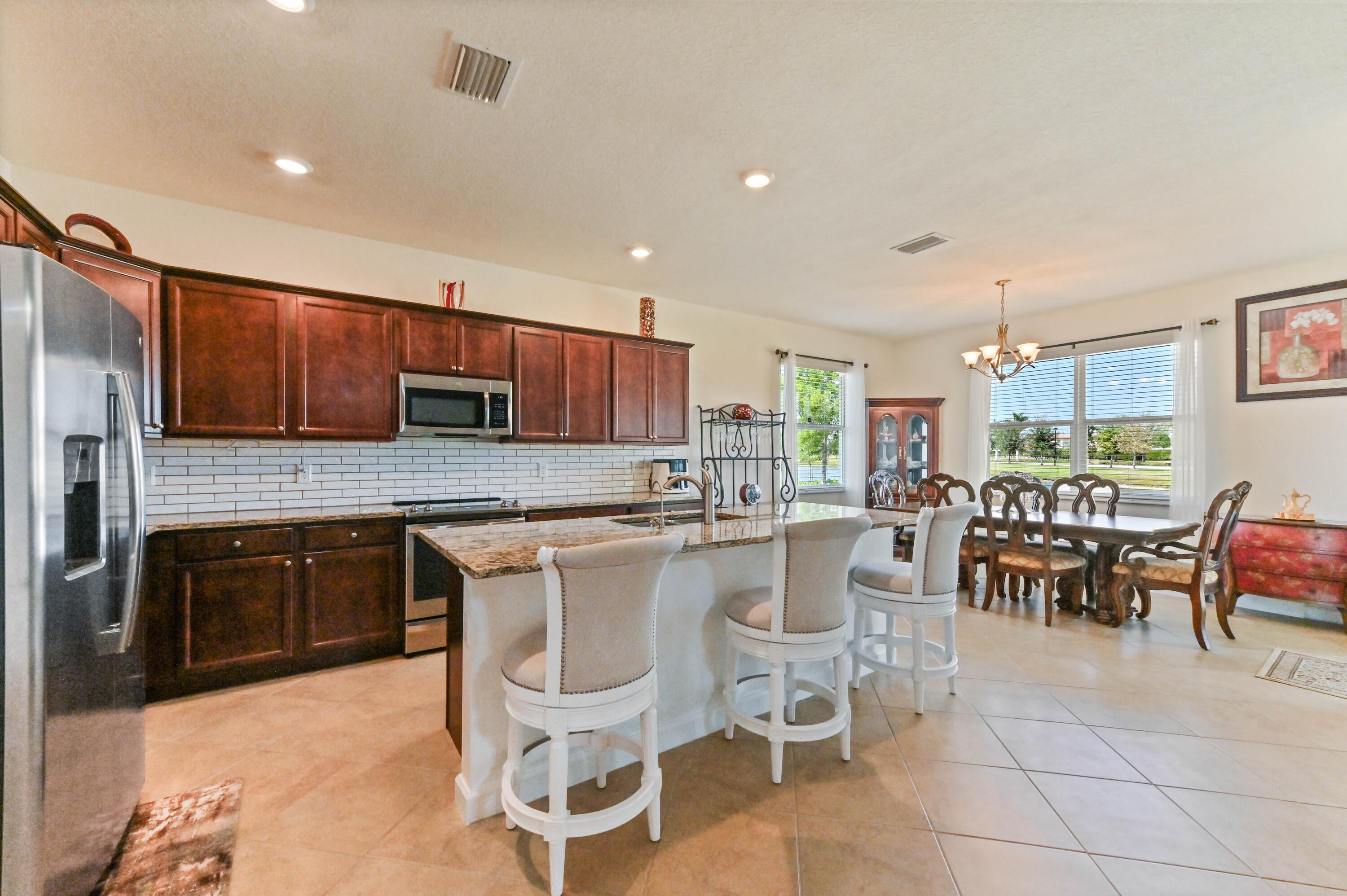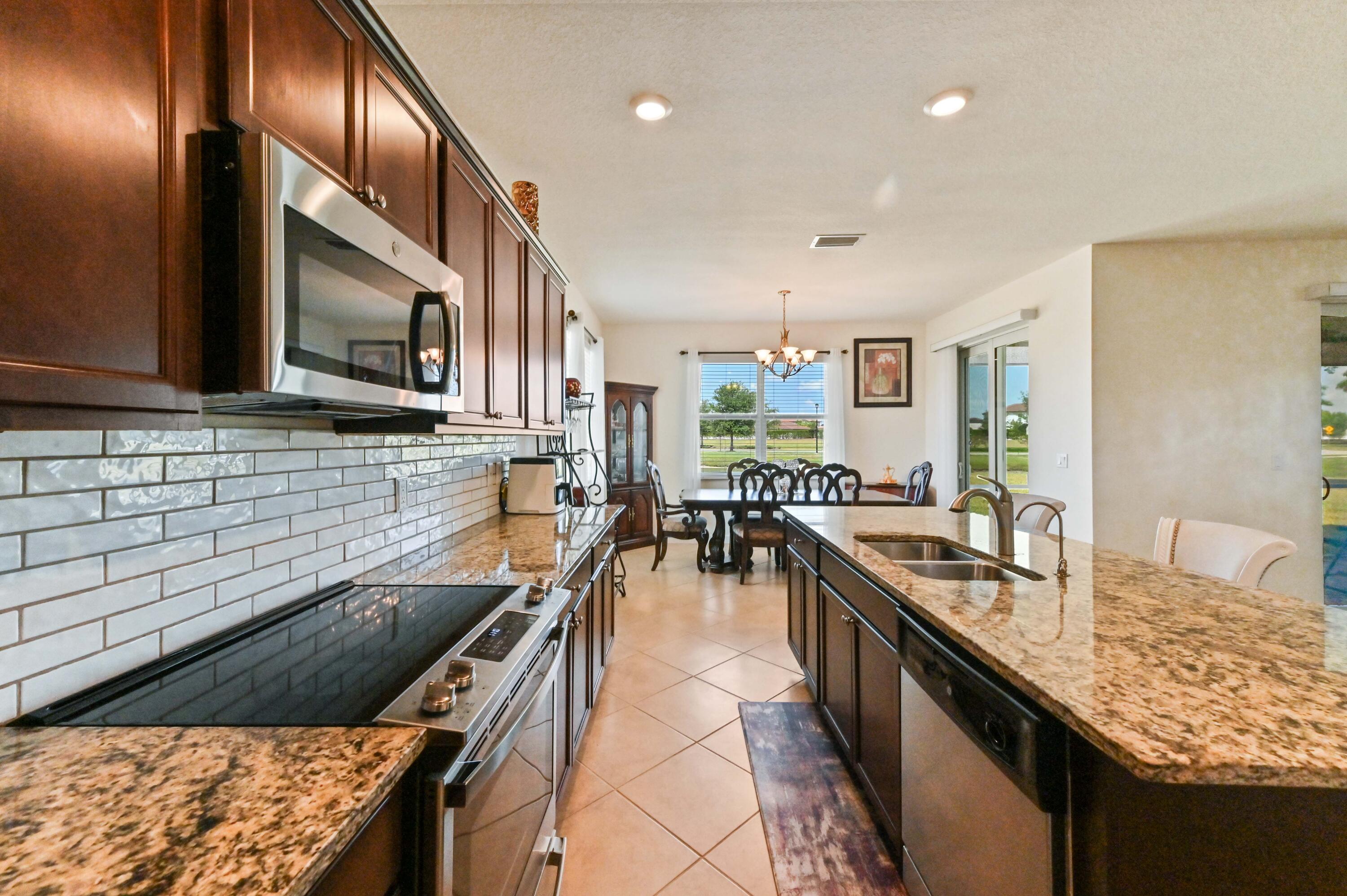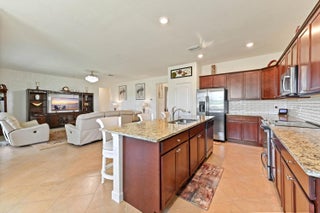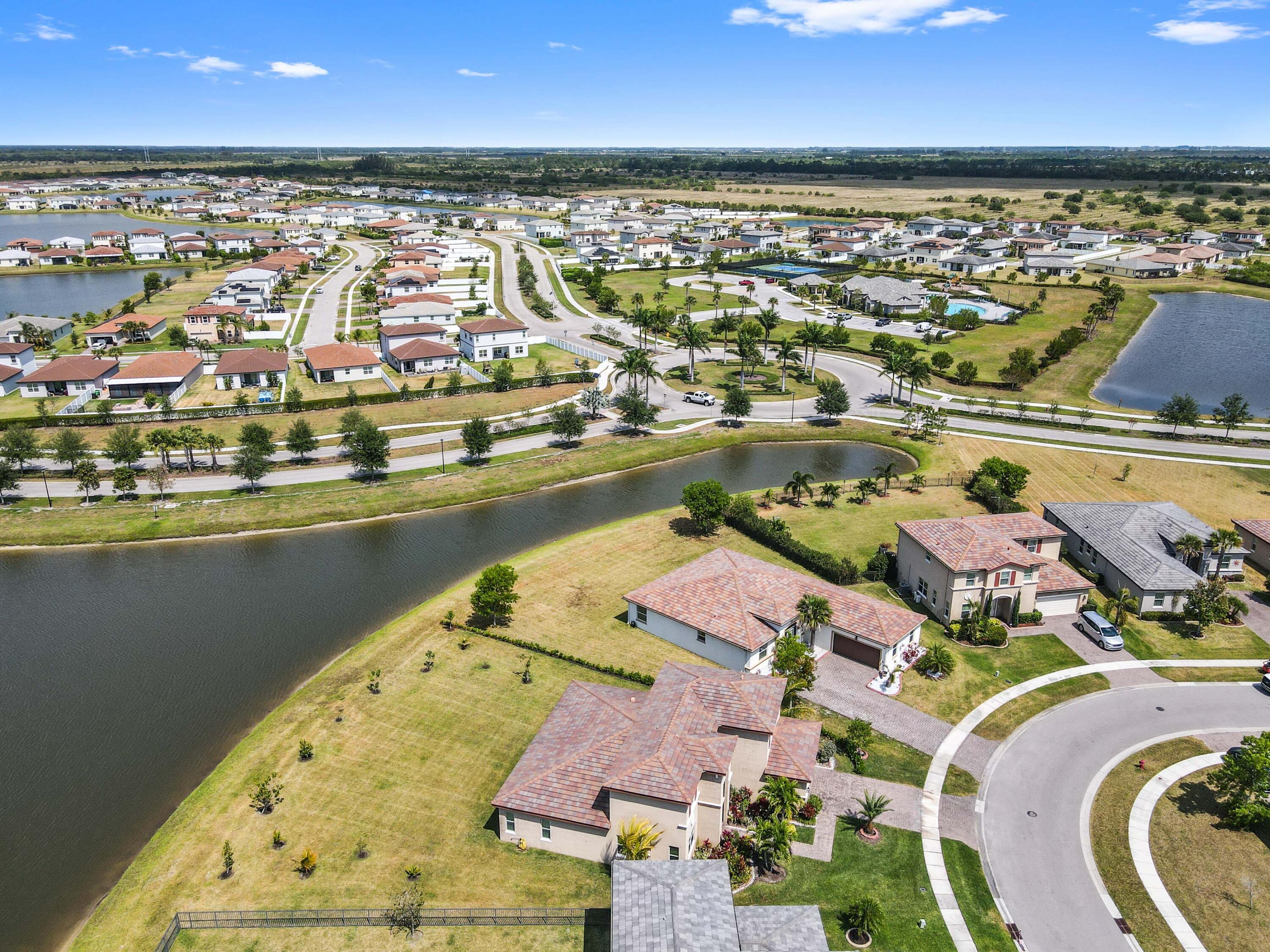 Welcome to this beautifully maintained single-family home in the desirable gated community of Copper Creek in Port St. Lucie, FL. Ideally situated on a premium oversized lot with tranquil waterfront views, this 3-bedroom, 3-bathroom home with a den that can be easily converted into a 4th bedroom, offers space, privacy, and comfort. Step inside through a charming screened front porch and into a bright office/den, perfect for working from home or relaxing in a quiet retreat.The open-concept living, kitchen, and dining area is ideal for entertaining, featuring a spacious layout, an expanded granite kitchen island, and direct access to the screened patio overlooking the serene lake. The kitchen is designed for function and style with ample cabinetry and counter space. The main suite is a private oasis, boasting a large walk-in closet and a spa-like ensuite bathroom with dual sinks and a soaking tub. A dedicated laundry room and a 2-car garage add convenience to everyday living. All bedrooms have been upgraded with vinyl plank flooring. Enjoy peaceful mornings or sunset evenings on the screened patio, taking in the scenic lake views. With resort-style amenities, including a clubhouse, fitness center, and swimming pool, Copper Creek offers a lifestyle of comfort and leisure. Just minutes from major shopping, dining, and entertainment, this home combines the best of community living with modern eleganceyour perfect Florida retreat awaits!