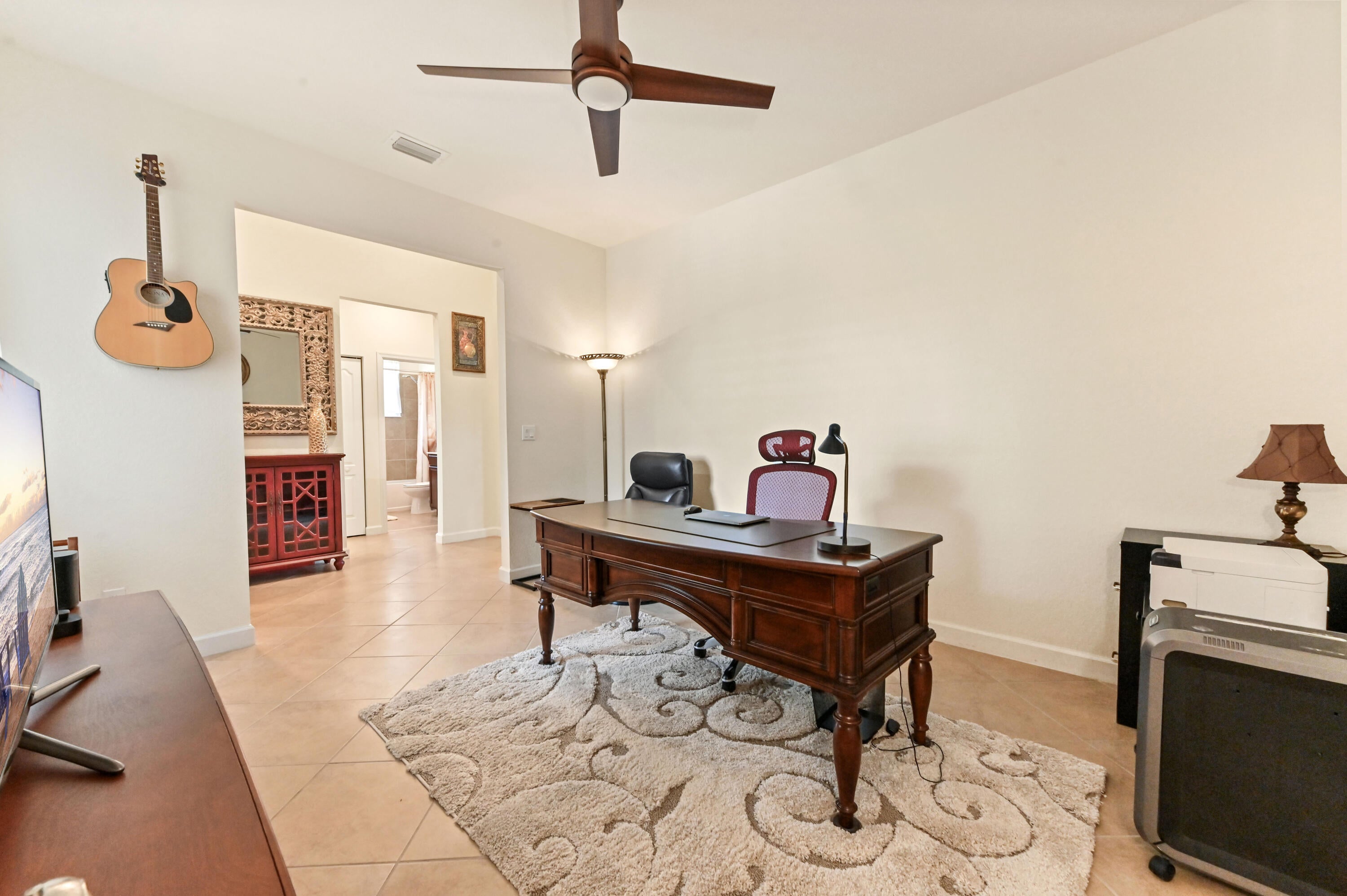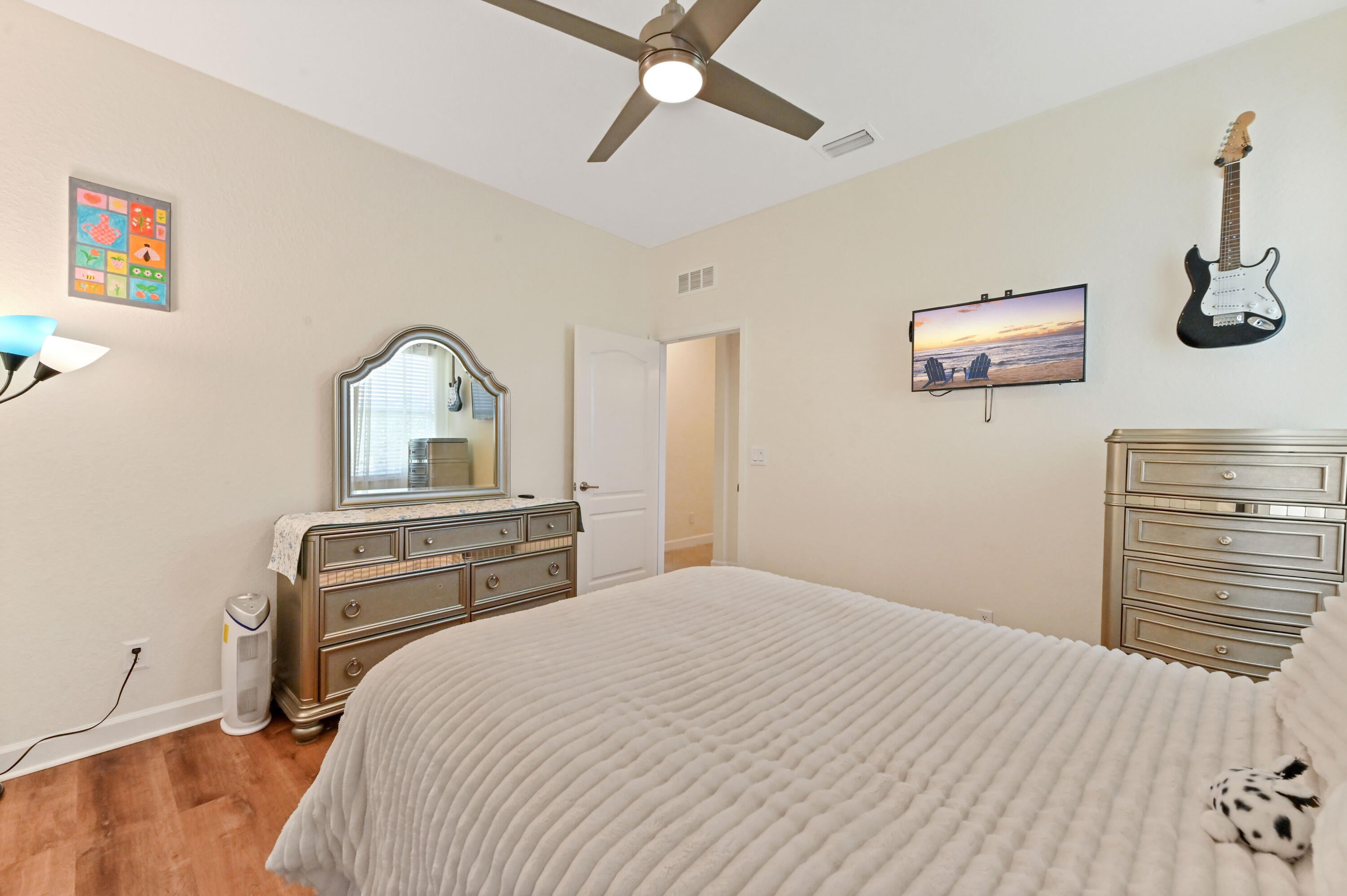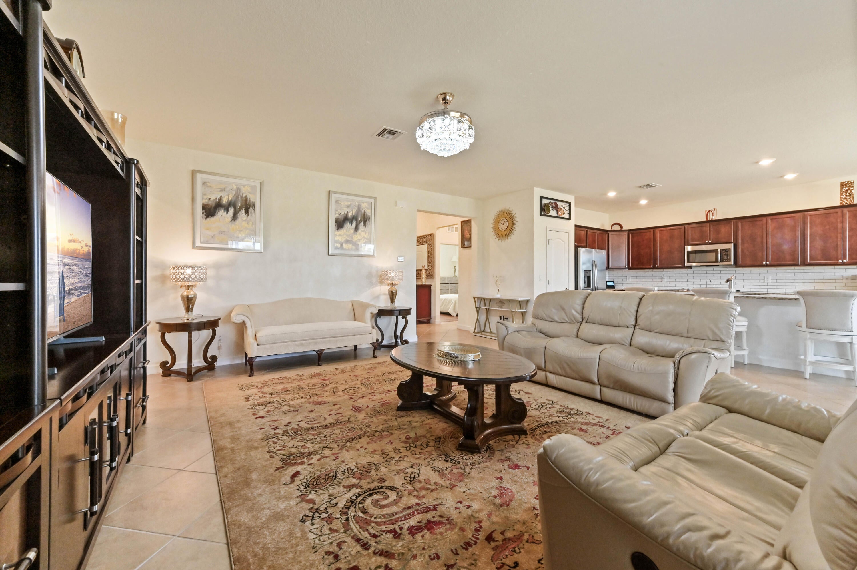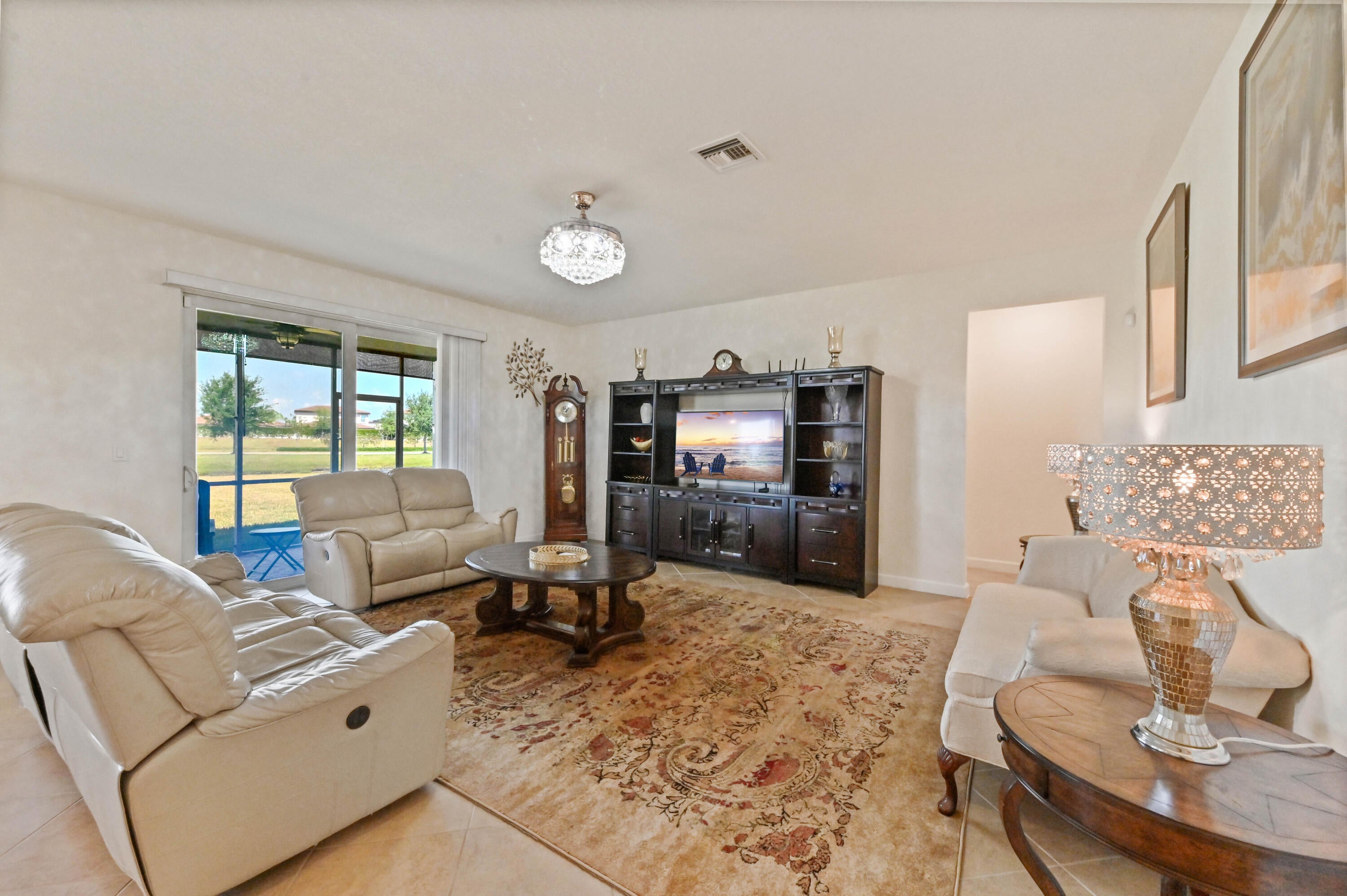 Welcome to this beautifully maintained single-family home in the desirable gated community of Copper Creek in Port St. Lucie, FL. Ideally situated on a premium oversized lot with tranquil waterfront views, this 3-bedroom, 3-bathroom home with a den that can be easily converted into a 4th bedroom, offers space, privacy, and comfort. Step inside through a charming screened front porch and into a bright office/den, perfect for working from home or relaxing in a quiet retreat.The open-concept living, kitchen, and dining area is ideal for entertaining, featuring a spacious layout, an expanded granite kitchen island, and direct access to the screened patio overlooking the serene lake. The kitchen is designed for function and style with ample cabinetry and counter space. The main suite is a private oasis, boasting a large walk-in closet and a spa-like ensuite bathroom with dual sinks and a soaking tub. A dedicated laundry room and a 2-car garage add convenience to everyday living. All bedrooms have been upgraded with vinyl plank flooring. Enjoy peaceful mornings or sunset evenings on the screened patio, taking in the scenic lake views. With resort-style amenities, including a clubhouse, fitness center, and swimming pool, Copper Creek offers a lifestyle of comfort and leisure. Just minutes from major shopping, dining, and entertainment, this home combines the best of community living with modern eleganceyour perfect Florida retreat awaits!