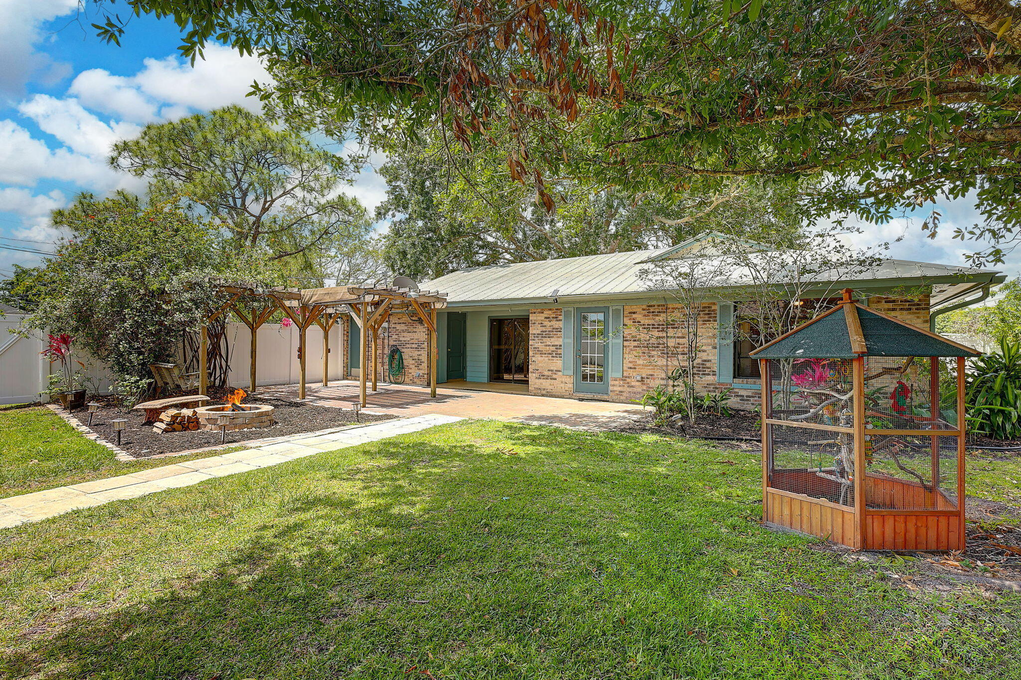 Step into this quaint & rustic 3 bed/2 bath home that blends charm with modern comfort. The renovated designer kitchen features stainless steel appliances, pull out spice cabinet & pantry with pull out shelves. Relax with a good book in the cozy reading kitchen window nook or step outside and unwind under the pergola adorned with soft evening lights & a fire pit, perfect for evening gatherings under the stars. 2024 - AC & Water Heater. 2025 New carpet in bedrooms. 2025 - New window screens Fully wired shed with refrigerator. Metal roof. Side fence entrance for boat or truck. Space for a pool.