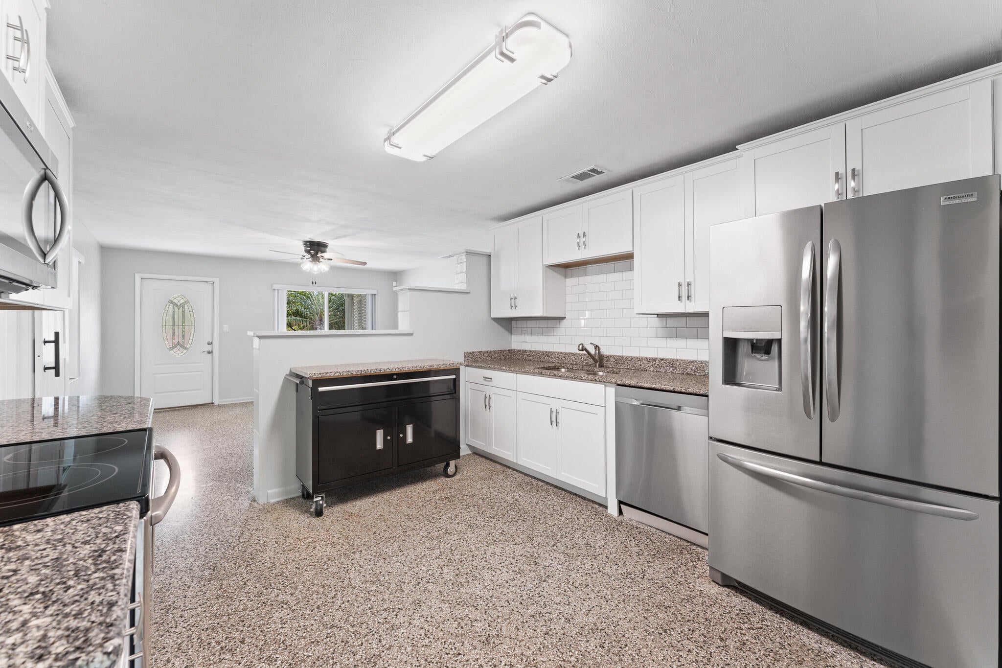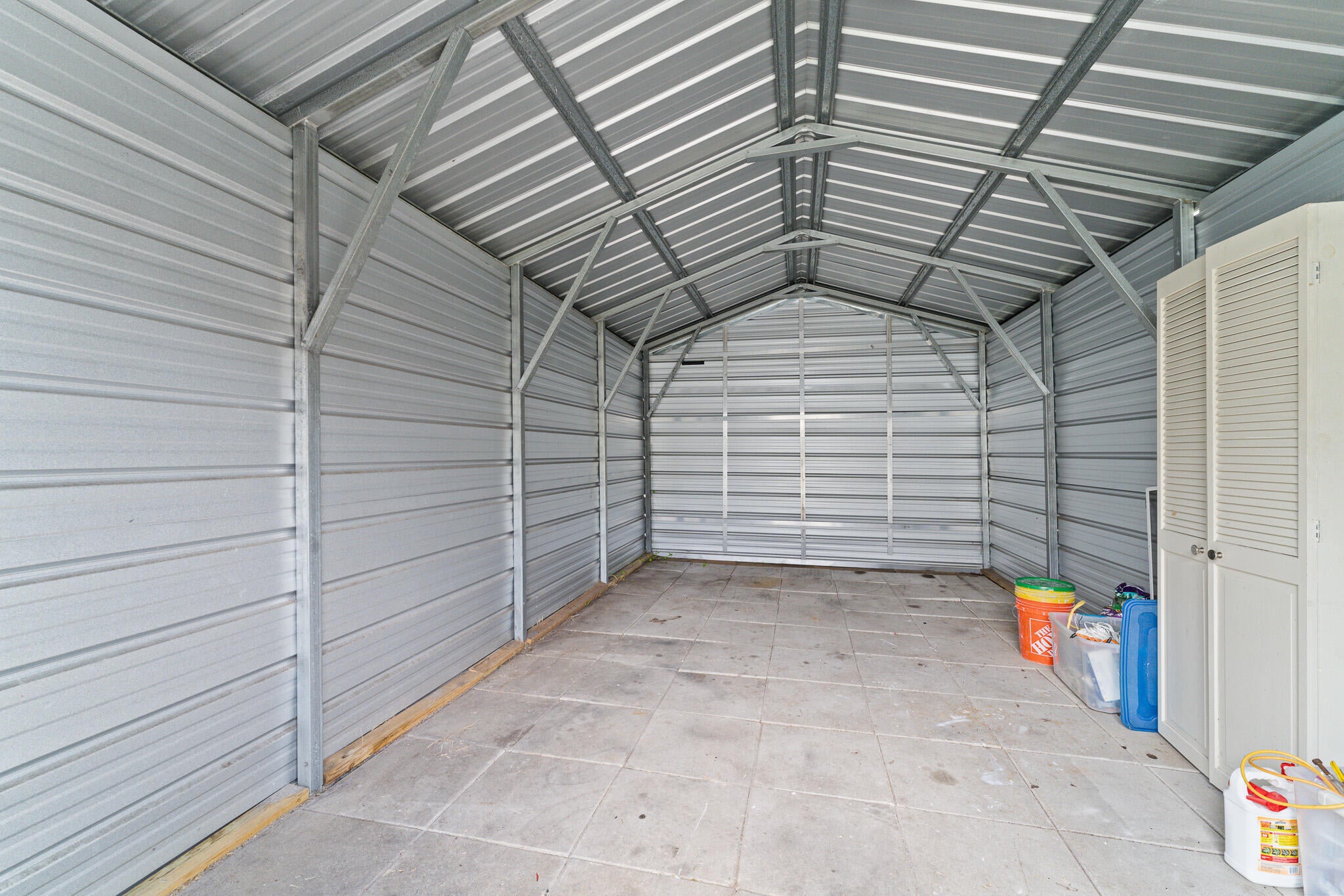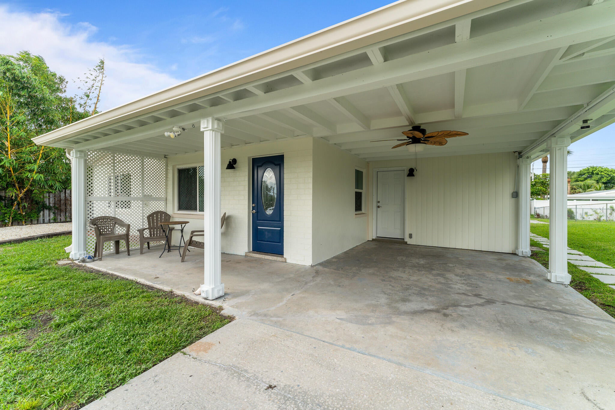 Plenty of room to park your boat, RV and all your toys! Located at the end of a quiet dead end street, this 3 bedroom 2 bathroom concrete block constructed home features a newly remodeled kitchen, newly remodeled bathrooms PLUS a separate laundry room. The main roof is metal and the carport is covered by a NEWLY installed flat roof. The big bonus comes from having 2 driveways! The main driveway is perfect for everyday parking and the huge side driveway is perfect for a boat, RV and all your toys! Set on a bluff, this superior location offers terrrific breezes and it also means NO FLOOD INSURANCE required. The large steel shed out back makes a perfect workshop, man cave or she shed or just use it for extra storage.The local boat ramp and Hutchinson Island Beaches are less than 5 minutes away and Publix Supermarket, local restaurants, farmers market, watering holes and Historic Downtown Jensen Beach are TRULY all within walking distance for real! You will not find a better location!