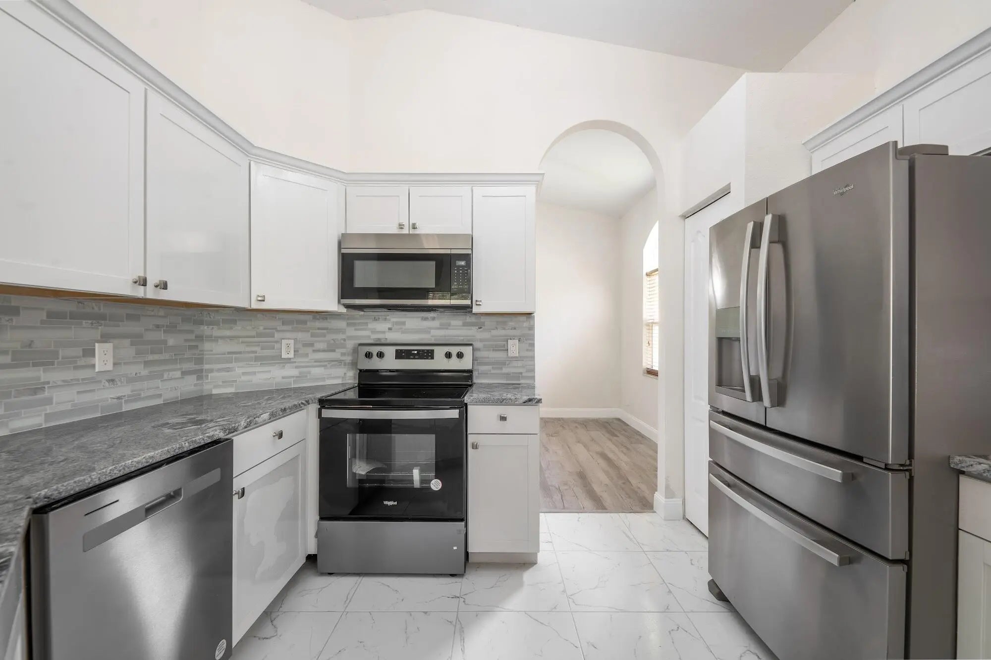 Move-in ready and beautifully updated, this spacious 3-bedroom, 3-bath home sits on an oversized lot in a desirable manned gated community offering enhanced privacy and peace of mind with a low HOA. Major upgrades include a Brand new roof, New impact windows, a new AC unit (2023), and a new water heater (2023)--making this home worry-free and energy-efficient.Step inside to a modern, open layout featuring a fully renovated kitchen with sleek countertops, updated cabinetry, and stainless-steel appliances. Multiple living spaces include a formal living room, family room, and a dedicated formal dining room, offering flexibility for entertaining and comfortable everyday living.All three bedrooms are generously sized, and the bathrooms have been tastefully updated.