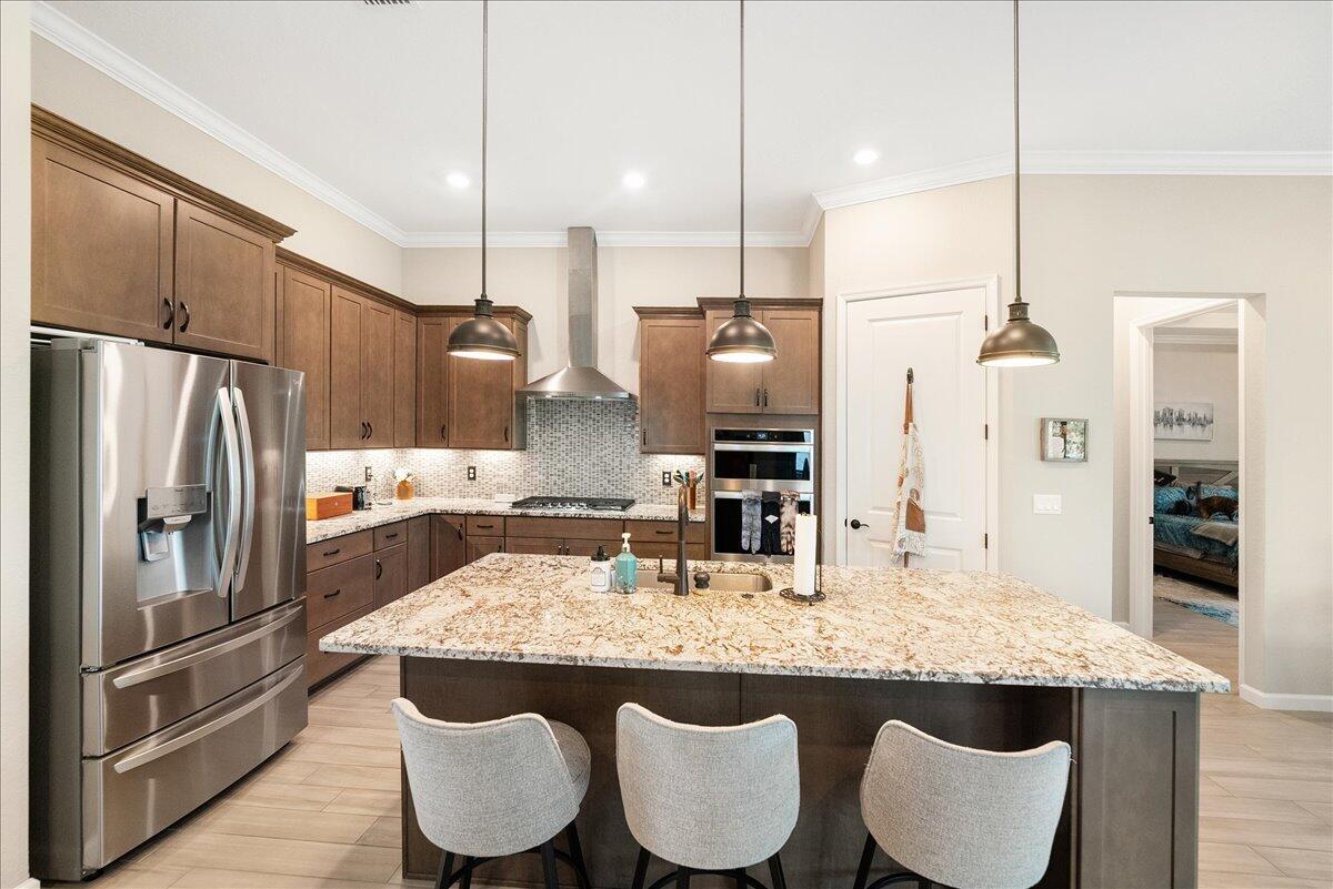 Nestled on a private preserve lot, this impeccably upgraded newer home offers resort-style living with custom details throughout. With 3 bedrooms, 3 bathrooms, and a versatile den, this open-concept floor plan is flooded with natural light and high-end finishes. Enjoy indoor-outdoor living with a zero-corner sliding glass doors that open to a custom pool and spa, surrounded by lush/tranquil preserve views- a private oasis. The gourmet kitchen is a showstopper, complete with upgraded stainless steel appliances, granite countertops, soft-close cabinetry, and a large center island perfect for entertaining. The primary suite showcases a luxurious extended shower, dual vanities, and a spacious walk-in closet. With elegant crown molding, upgraded lighting and tile for a cohesive look throughout