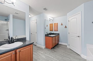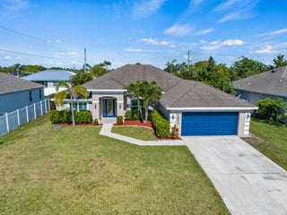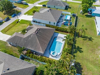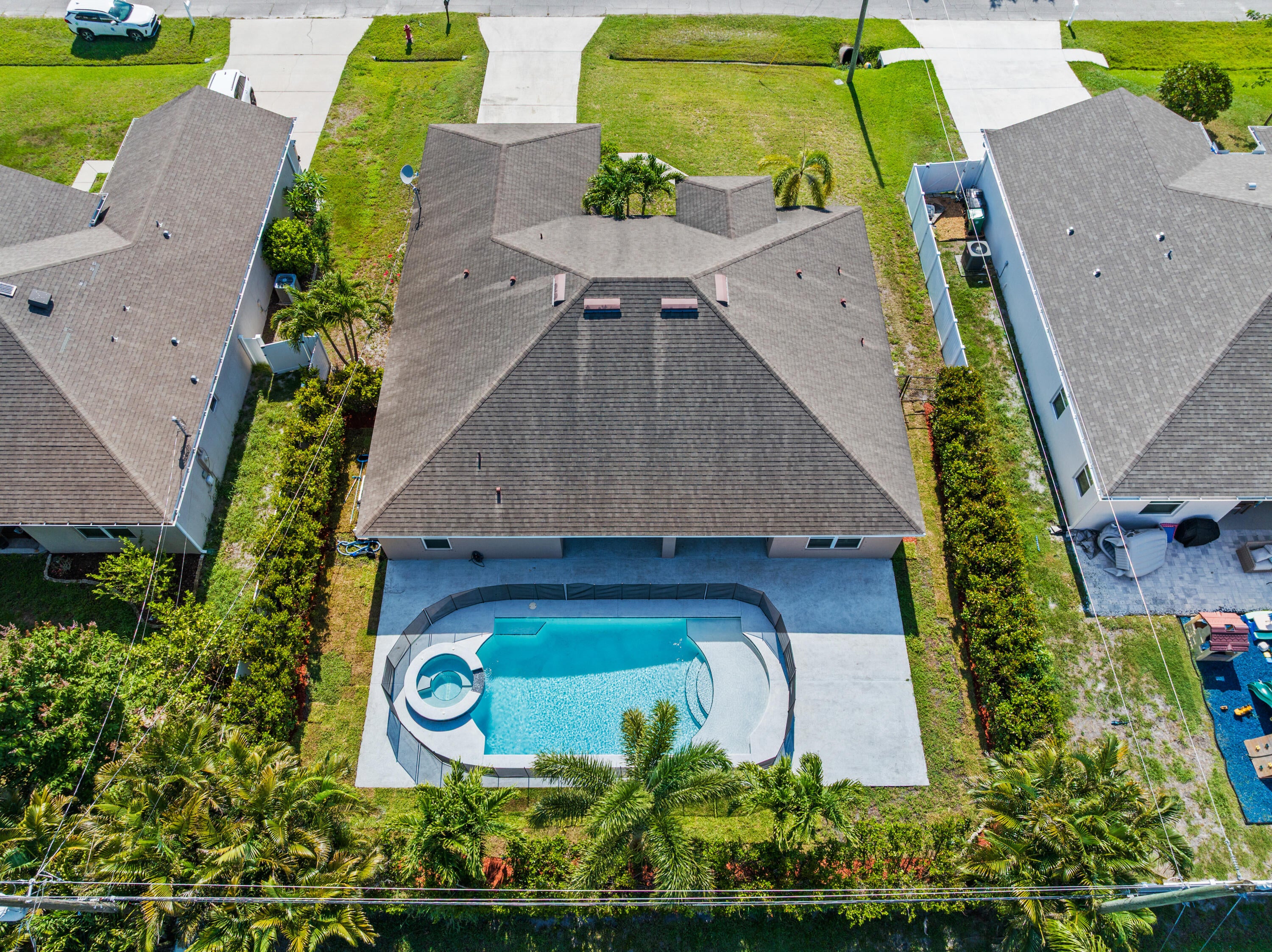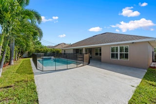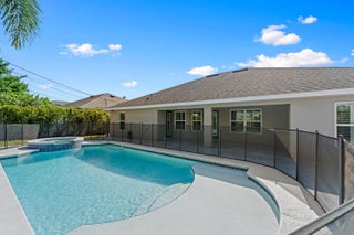 This one checks the boxes! Luxury, space and tropical paradise. With 4 bedrooms and a separate den, soaring 10 ft ceilings in the main areas and 3 full bathrooms, you are immersed in ample space for any family. Some features include granite counters and tile throughout, stainless-steel appliances, and plantation shutters that let in a beautiful amount of natural light. A covered lanai flows seamlessly to the gorgeous pool deck, with a cabana full bath for resort style living. The 2018 installed pool, is both heated and cooled, adjoined to the jacuzzi waterfall that has air jets for relaxation at day or night.From the fully fenced in backyard to the privacy plants along it, make this paradise home yours today!