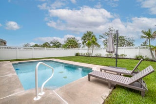 This stunning Key West-style, POOL HOME is perfectly situated on a spacious, fenced-in lot in the highly desirable Bedford Park community. Boasting over 1,800 sq ft, this 3-bedroom, 2-bathroom home features an open concept, with granite countertops, solid wood cabinets, a brand new A/C system (2025) and updated water heater (2024), ensuring comfort and efficiency. Located just a short walk from fine dining, excellent shopping, top-tier medical facilities, scenic parks, and only minutes from I-95, this home offers both convenience and coastal charm. The HOA fee includes cable, high-speed internet, access to the community pool, as well as landscaping and lawn care, making maintenance effortless.