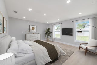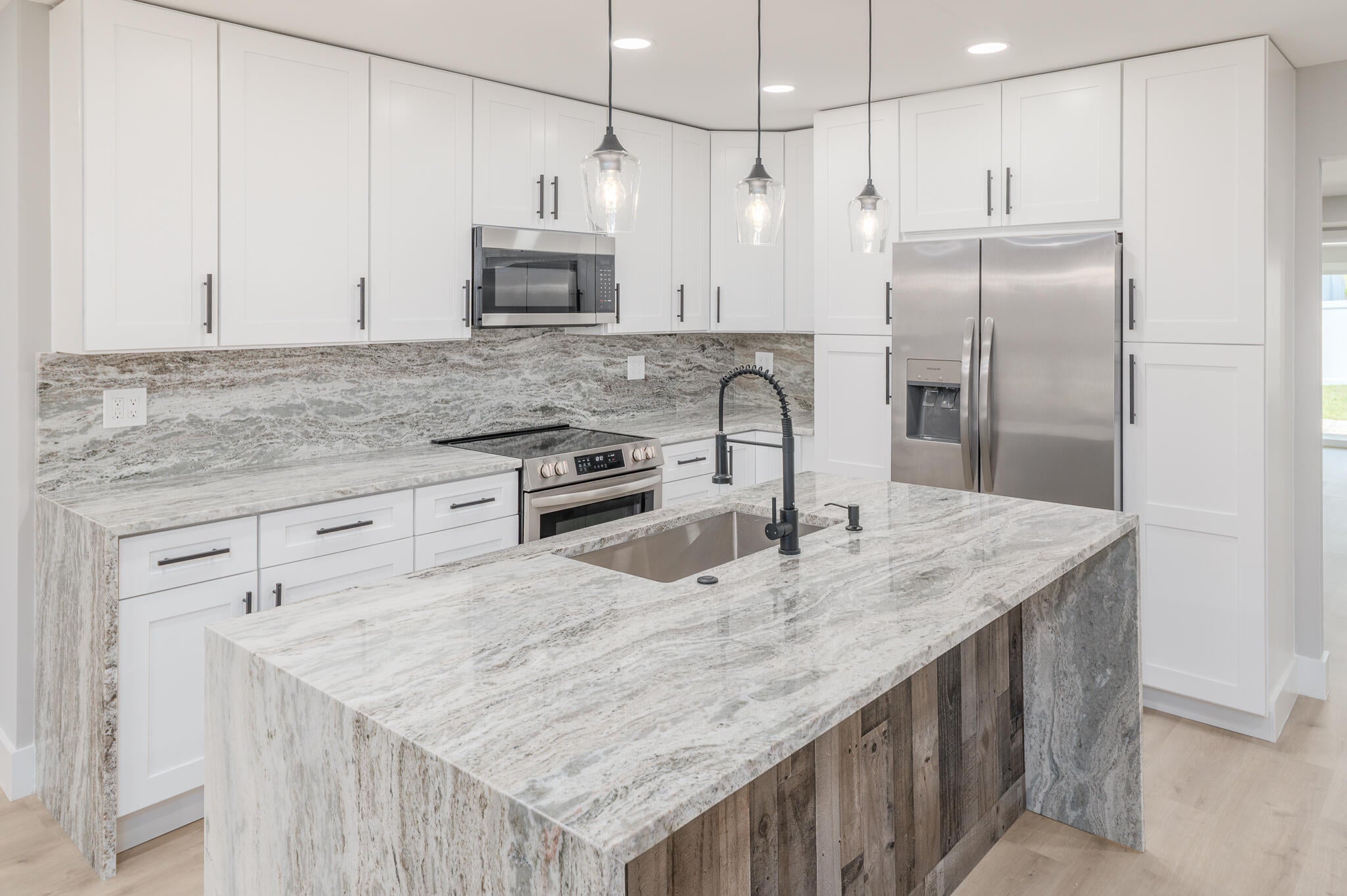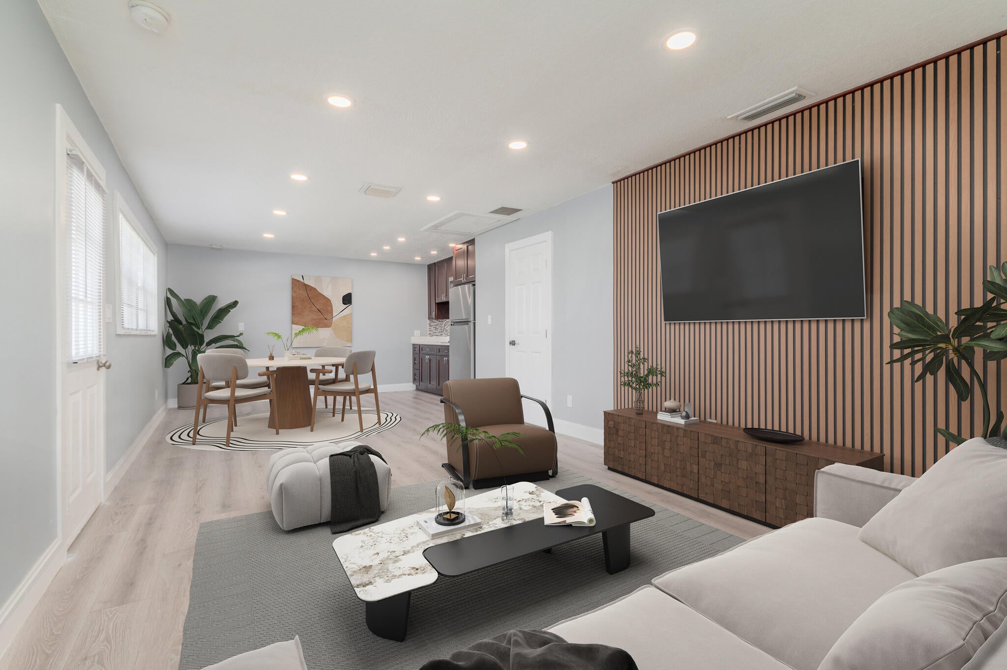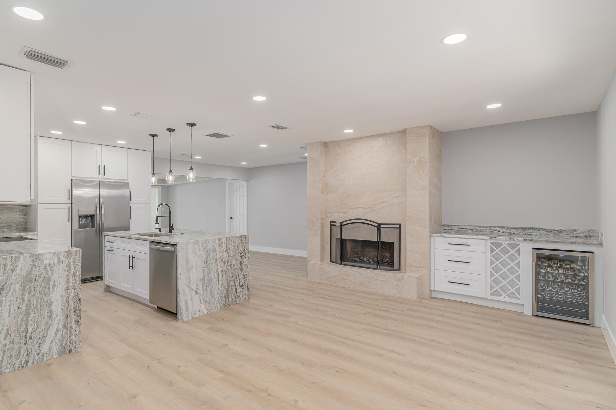 This exquisitely renovated 3-bed, 3-bath home offers 2,149 living sq ft. With over $100,000 in upgrades, it features a 2021 roof, partial impact windows, and a new electrical panel. Designer finishes include granite countertops, soft-close cabinetry, stainless steel appliances, and a built-in wine bar. Enjoy the spacious living areas, luxury vinyl plank flooring, and a wood-burning fireplace. The spa-inspired primary suite offers dual quartz vanities, Bluetooth fan, and multi-head shower. The private in-law suite provides income potential. Experience the perfect blend of style, comfort, and value!