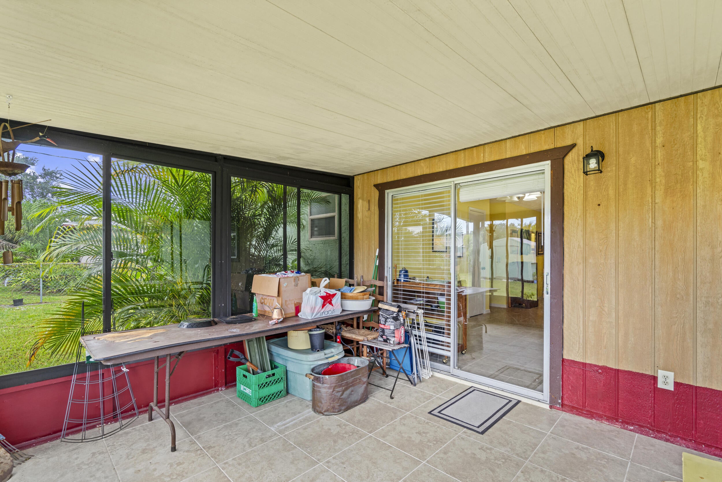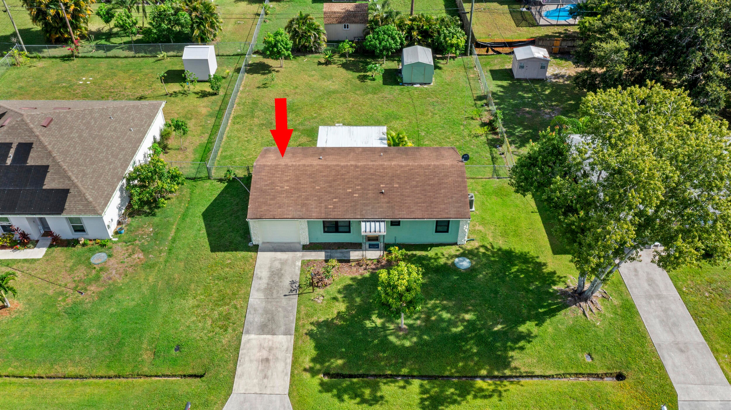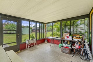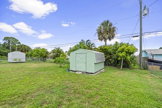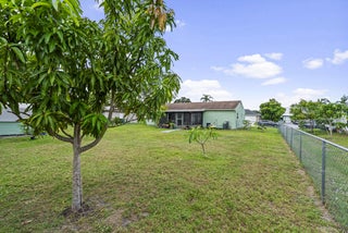 Move-in ready 2BR/2BA CBS home with garage on a quiet street. Freshly painted inside and out. Remodeled kitchen with quartz countertops, stainless steel refrigerator and range. New water heater (2021), newer garage door, and brand-new A/C (2024). Inside laundry with newer stackable washer/dryer. Tile throughout, including large enclosed porch. Impact windows with panel shutters. Fully fenced yard with shed, mango, papaya, and banana trees, plus a whole-house water treatment system. City water and sewer. Located off Floresta near Crosstown Parkway--5-minute walk to Coral Reef Park and the St. Lucie River. Approx. 20 minutes to the beach. Close to shopping, dining, schools, and healthcare.
