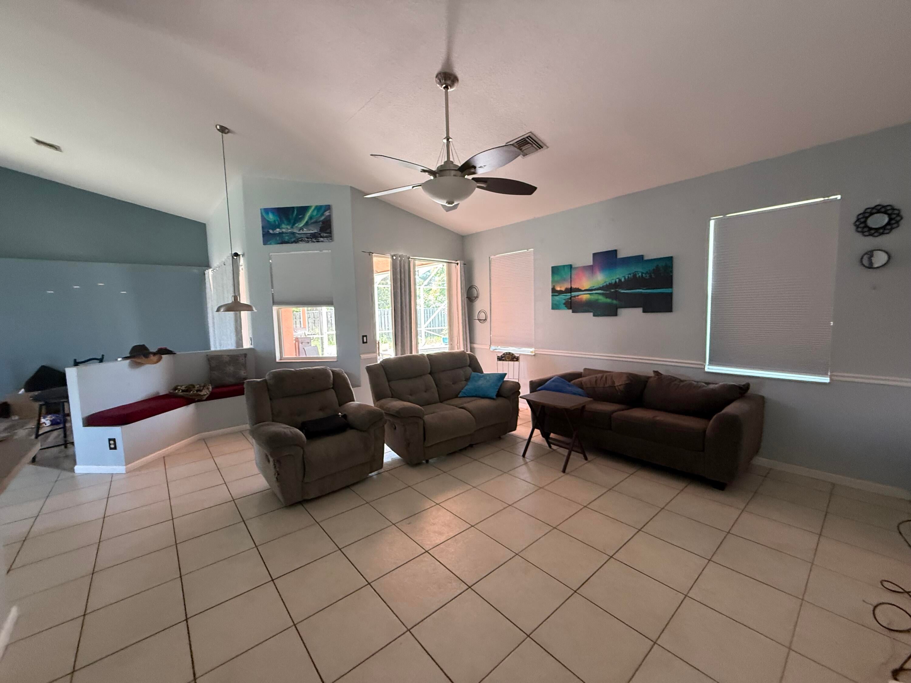 Welcome to your own slice of paradise in the heart of Port St. Lucie! 2025 ROOF & 2022 AC. This vibrant pool home offers the perfect blend of comfort, charm, and Florida lifestyle. Step into a spacious open floor plan highlighted by vaulted ceilings, abundant natural light, and a large kitchen perfect for entertaining. The owner's suite features a luxurious en-suite bath complete with a soaking tub, walk-in shower, dual vanities, and a makeup station, all accented by soft coastal tones and elegant finishes. Enjoy your days relaxing in the screened-in pool area featuring a beautiful rock waterfall, privacy fence, and plenty of patio space for lounging or outdoor dining. The lush backyard is fully fenced and landscaped with tropical plants, providing a serene oasis!