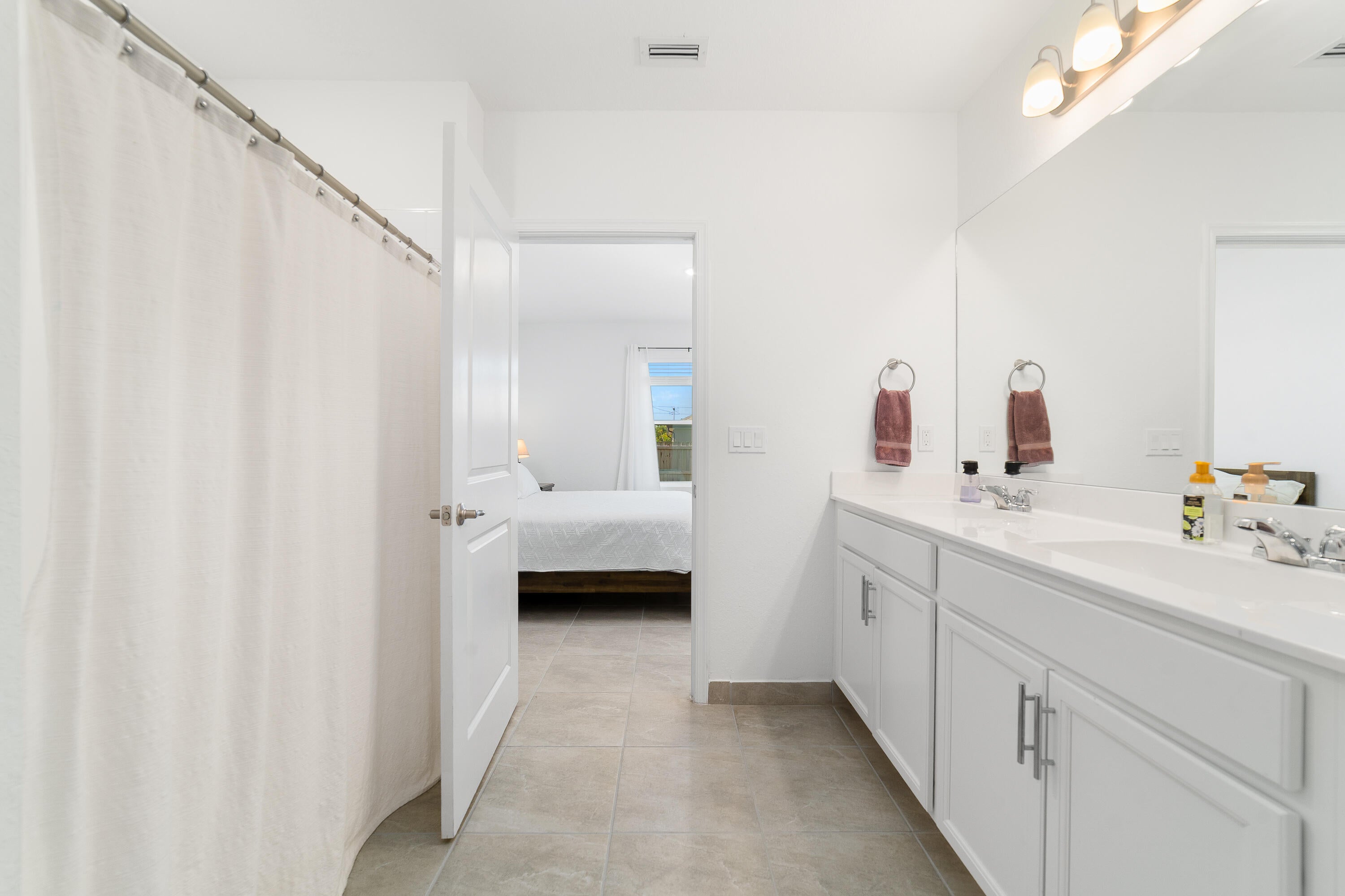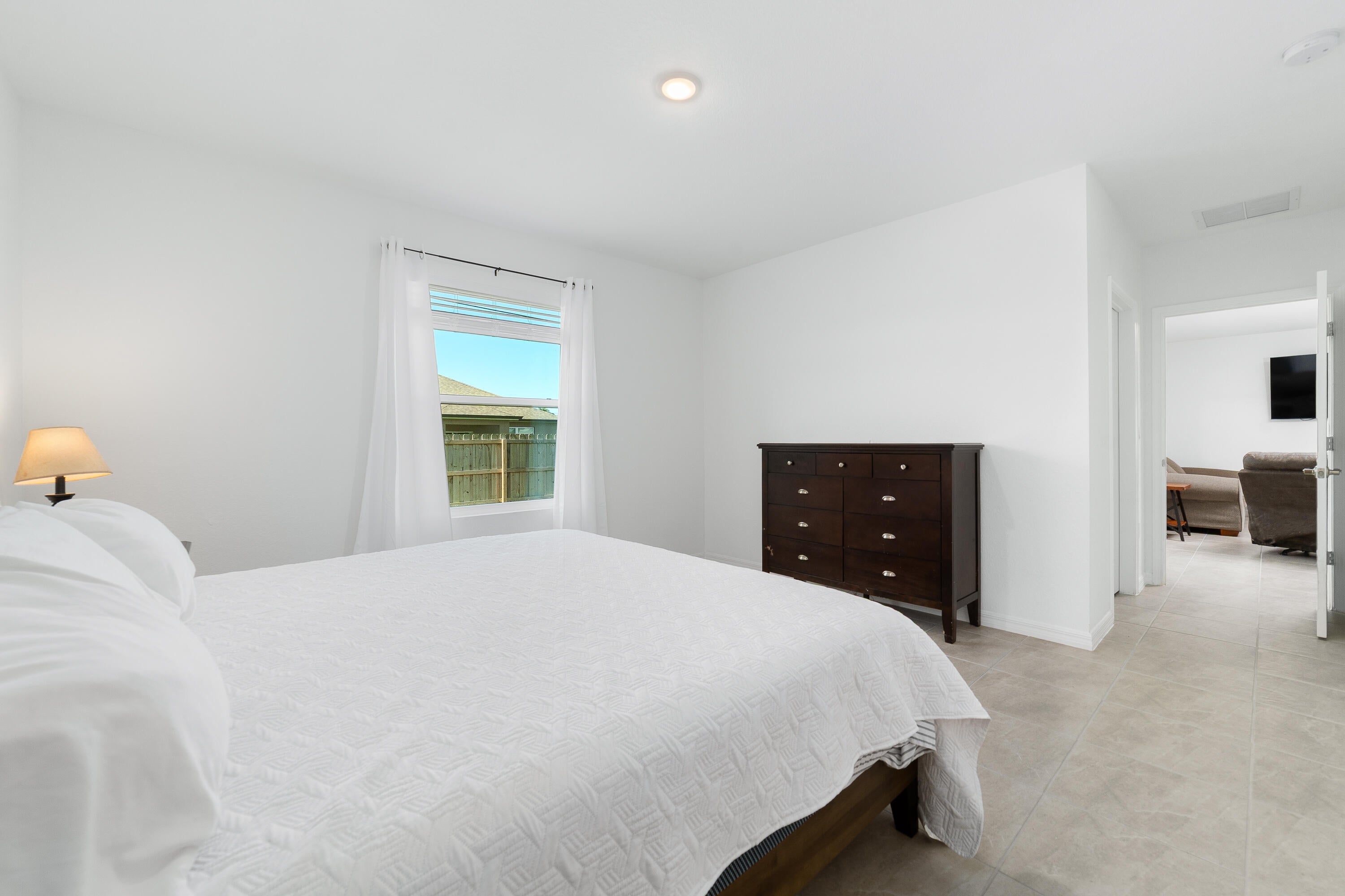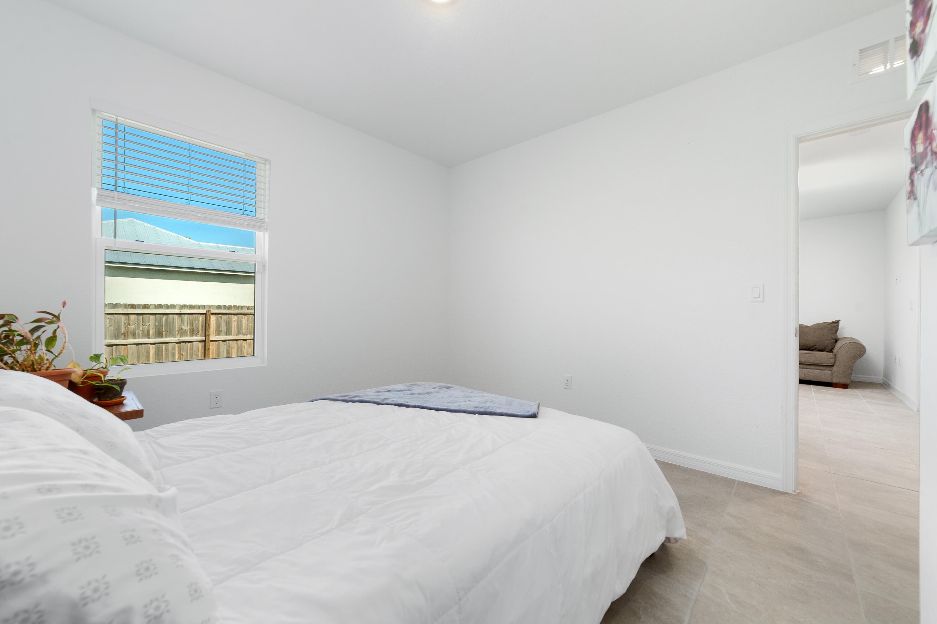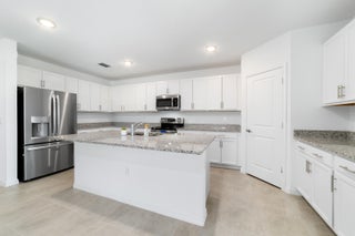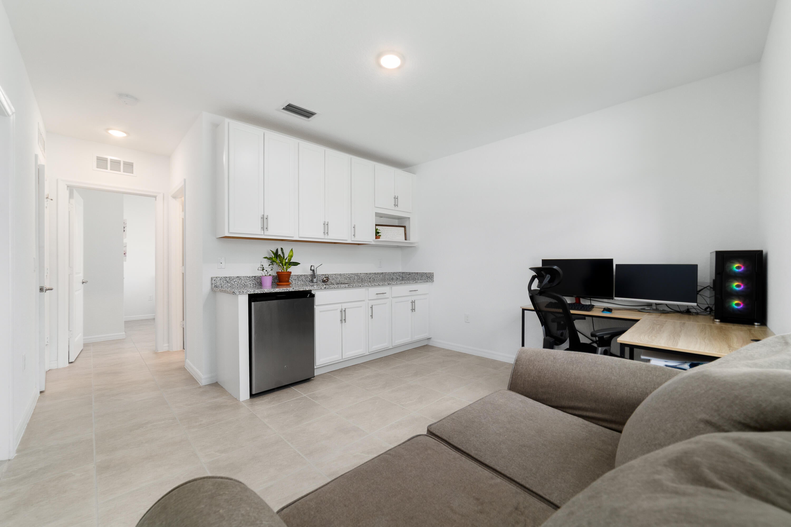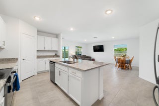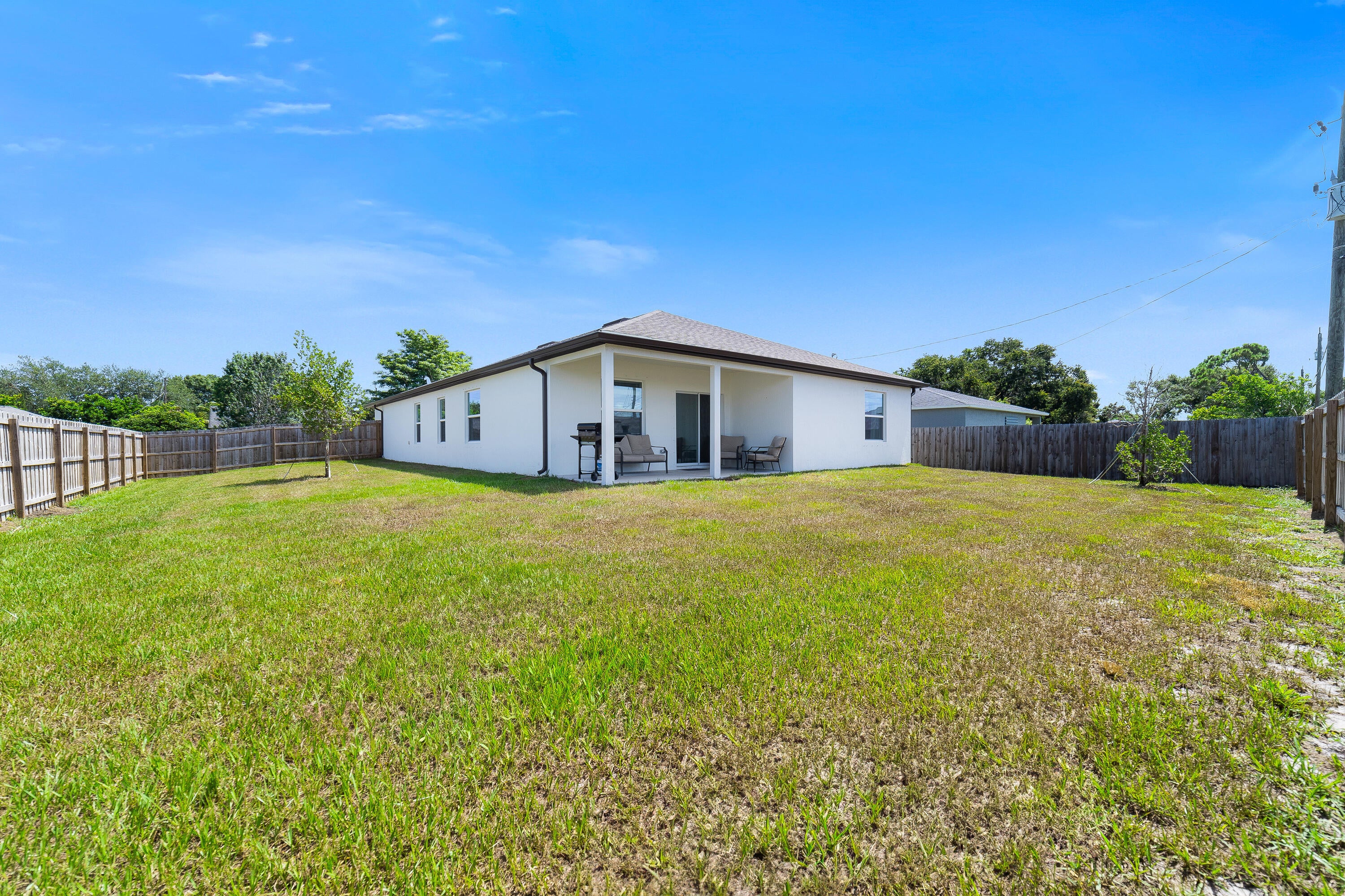 Welcome home to this immaculate 4 bedroom 3 bath opportunity located in the highly sought after NO HOA area of central Port St. Lucie. As soon as you enter, you immediately notice the abundant natural light and welcoming finishes of this 2023 build. This unique property boasts an entire, private guest wing that is accessible from inside, but which also has its own separate entrance. This feature provides its own bedroom, full bath and living space which includes granite countertop space, cabinetry and a sink. This suite offers great flexibility as a guest suite, additional bedroom or an office area. Tile flooring throughout provides great continuity and easy maintenance. The large kitchen features stainless steel appliances, modern white cabinetry and large center island with barspace that opens out to the family room, perfect for entertaining. The large primary suite boasts a large walk in closet, garden views and large en suite bath with dual vanities. Out back, you have a large lanai, newer privacy fence and tons of room for entertaining, play or a future pool. Two car garage, large laundry room and panel shutters for storm protection round out the highlights. Located in the heart of Port St. Lucie, this opportunity provides a fantastic location not far from gorgeous beaches, shopping and quick access to highways. Please make sure to check out the 3D virtual walk through and schedule an appointment today!