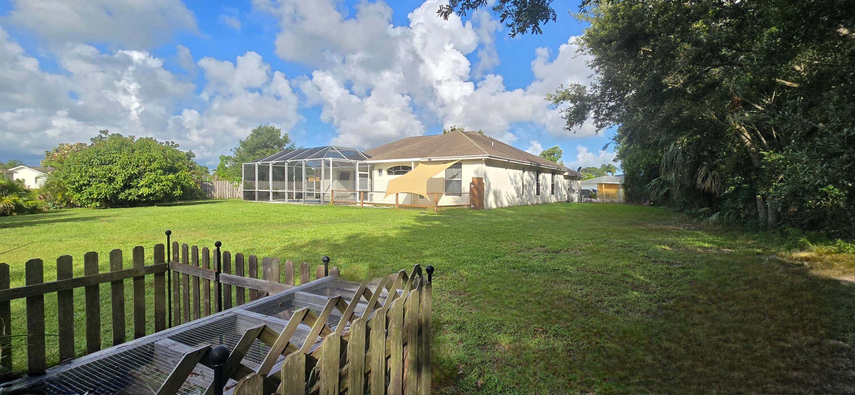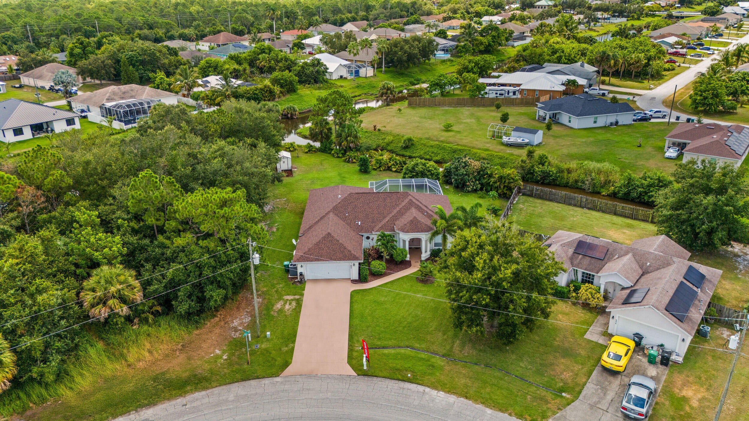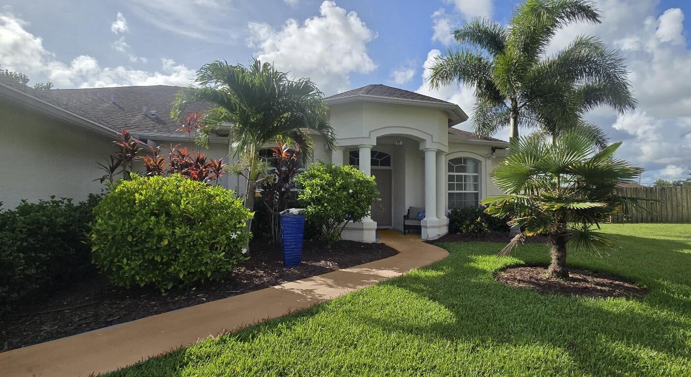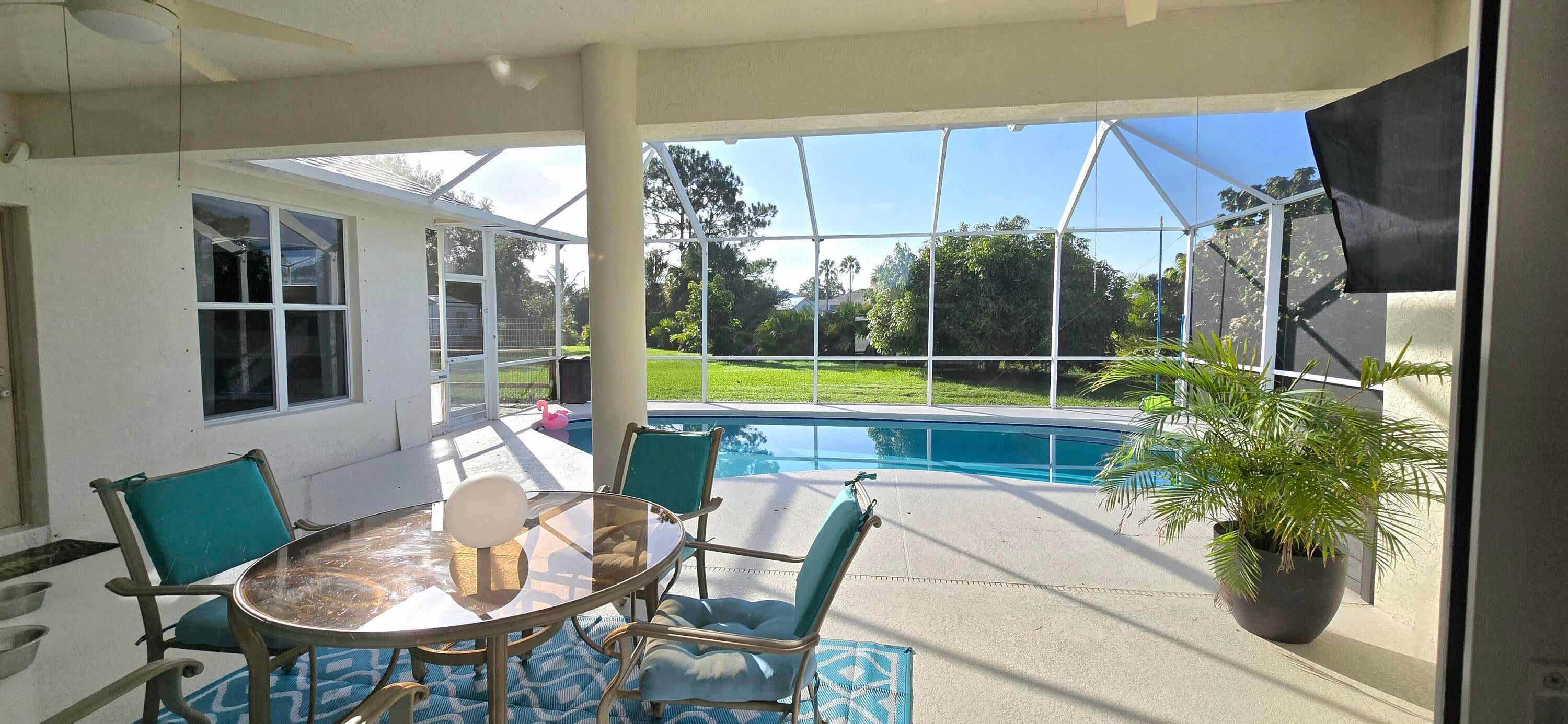 Luxury Canal-Front Home with Pool - Port St. LucieWelcome to 602 SW Pueblo Terrace, a beautifully maintained 4-bedroom, 3-bathroom home with nearly 2,300 sq. ft. of living space on a double lot with canal frontage. Featuring an open floor plan, high ceilings, and abundant natural light, this property blends comfort, style, and Florida living.The spacious living room offers multi-slide patio doors overlooking the screened-in pool and lush backyard oasis. A formal dining room connects to the gourmet kitchen with granite countertops, center island, walk-in pantry, and a built-in desk--perfect for working from home.The private primary suite boasts pool access, dual closets, and a newly remodeled bath with dual vanities, a soaking tub, and a walk-in shower. The gourmet kitchen features granite countertops, a center island, walk-in pantry, and a built-in office desk ideal for working from home while staying connected to family life. Primary Suite Retreat The generous primary bedroom offers direct pool access via large sliding glass doors, his-and-hers closets, and a luxurious en-suite. The remodeled bathroom boasts a dual vanity, modern finishes, a spa-style walk-in shower, and a deep oval soaking tub. Flexible Living Spaces Two additional bedrooms share a full bathroom off the kitchen and living area. A private bedroom with its own bath makes an excellent guest suite, in-law space, or office. All bathrooms have been recently renovated for a fresh, modern look. Outdoor Paradise Enjoy year-round sunshine in the expansive screened-in pool area, complete with a new heater and pump. Natural greenery provides privacy, while the large yard includes mature fruit trees mango, papaya, avocado, lemon, lime, banana palm, and pineapple plants. A three-pane sliding glass door connects the patio seamlessly to the living area, creating an effortless indoor-outdoor flow. Ample Parking & Storage The property includes a 2-car garage, 4-car driveway, and a spacious side yard perfect for RV, boat, or recreational vehicle storage out of sight. Recent Upgrades & Features New roof with transferable warranty New garage door opener A/C replaced in 2018 Water heater replaced in 2022 Sprinkler system for easy lawn care Canal water irrigation system for economical advantage Canal views from the backyard Pool filter & heater warranty Home alarm & outdoor security camera system Prime Location Situated in a sought-after Port St. Lucie neighborhood, this home is close to local amenities, attractions, and top-rated schools. Commuters will appreciate quick access to both the Florida Turnpike and I-95. Included Extras *1-year American Home Shield warranty *Generac generator contract *TruGreen lawn care contract Your Florida Dream Awaits With its thoughtful layout, high-end upgrades, and beautiful canal-front setting, this home is ready for its next owner to enjoy. Schedule your private showing today and experience the perfect balance of comfort, convenience, and elegance Schedule your private showing today