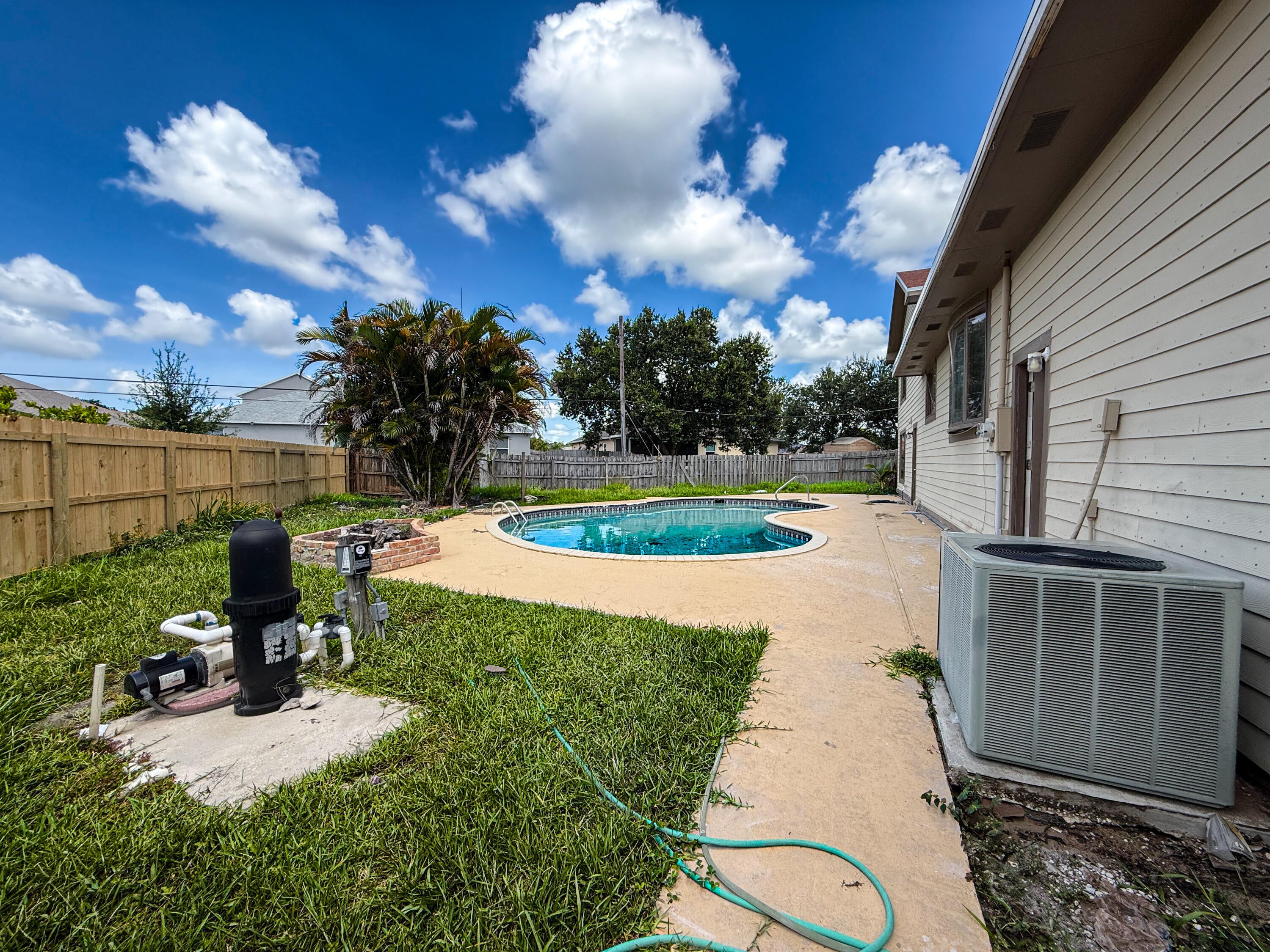 Pool home sits on an oversized corner lot with driveways on both sides and a three car garage.Prime Location near restaurants an only 20 minutes from the beach! With 4 bedrooms, 3 bathrooms, and two additional bonus rooms it's great for daily living and entertaining especially with the pool and spacious backyard.To top it all off, the 2023 roof adds peace of mind and value.The home is been partially updated with new flooring and a new kitchen, making it even more special and fully move-in ready.Lastly, the location is unmatched: it offers both convenience and privacy.