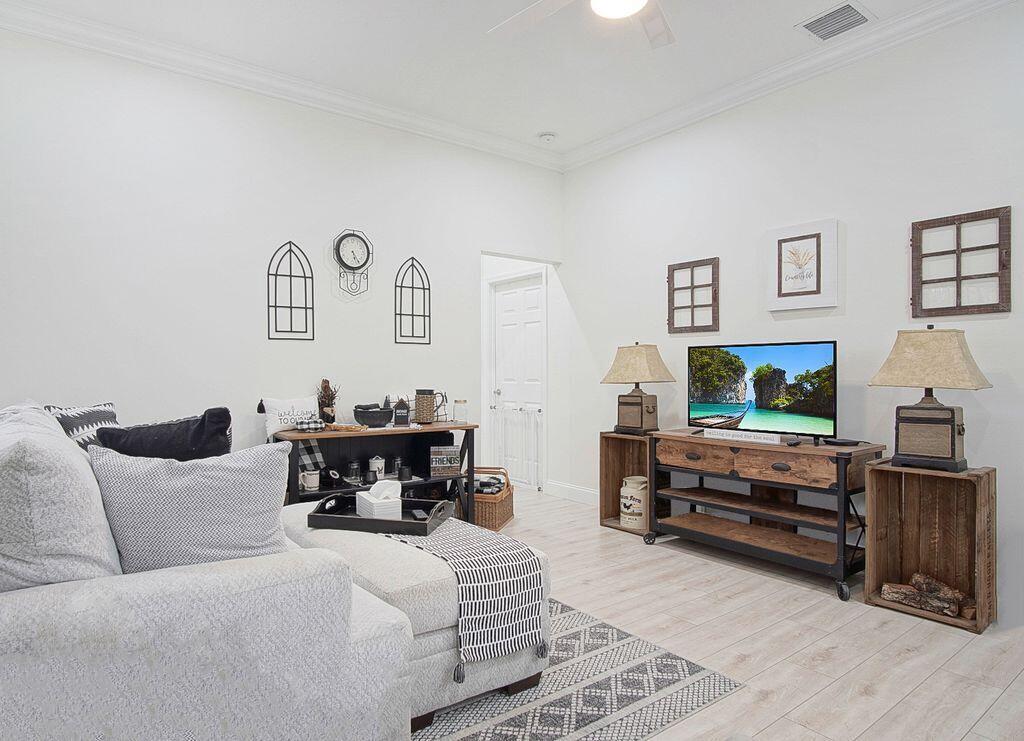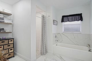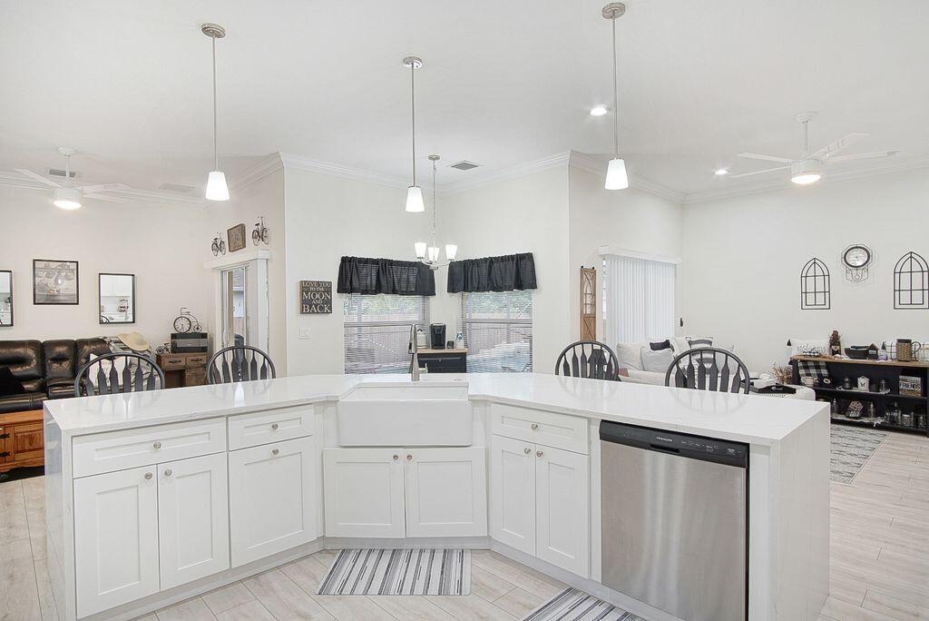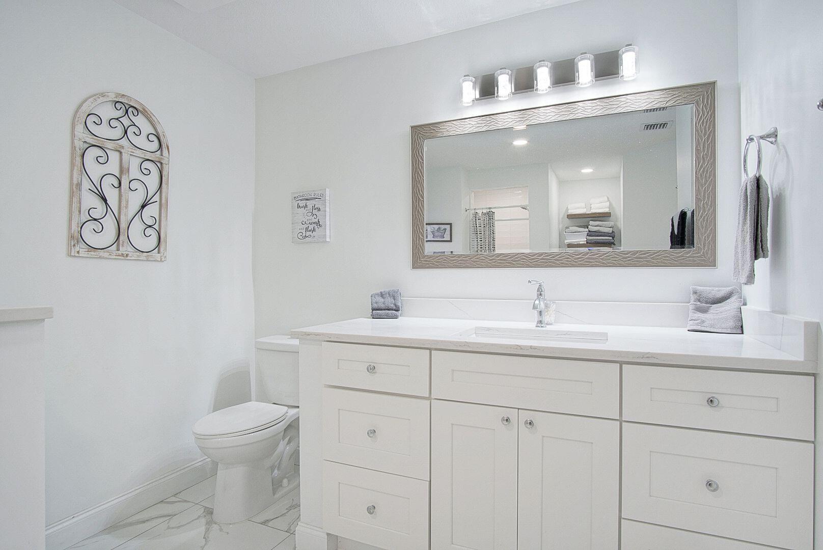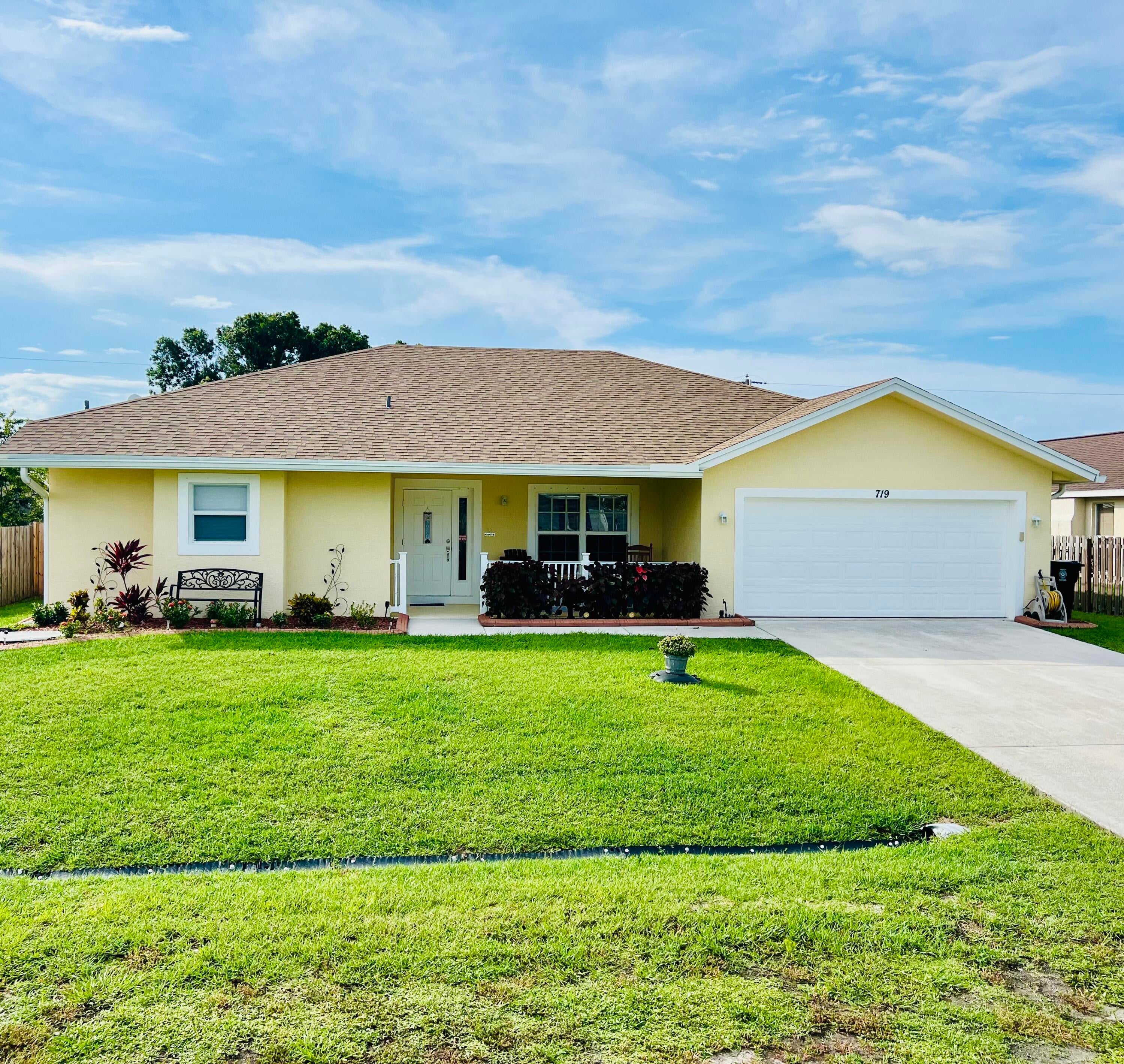 Amazing pool home in the heart of Port St. Lucie. This gorgeous remodeled 4 large bedroom 3 bathroom house has it all. Open concept to a gourmet kitchen equipped with quartz countertops with a waterfall island for added space. Perfect for entertaining family and friends. Cute front porch to sit away the mornings. Large newly rescreened pool patio area with access to a cabana bathroom. Large shed (10x20) in backyard with electricity for a workshop or She Shed. Strapped down for storm protection. Whole house generator 2024, Roof 2023, AC 2023, HWH 2023, gutters and newly fenced yard. Close to everything PSL has to offer.