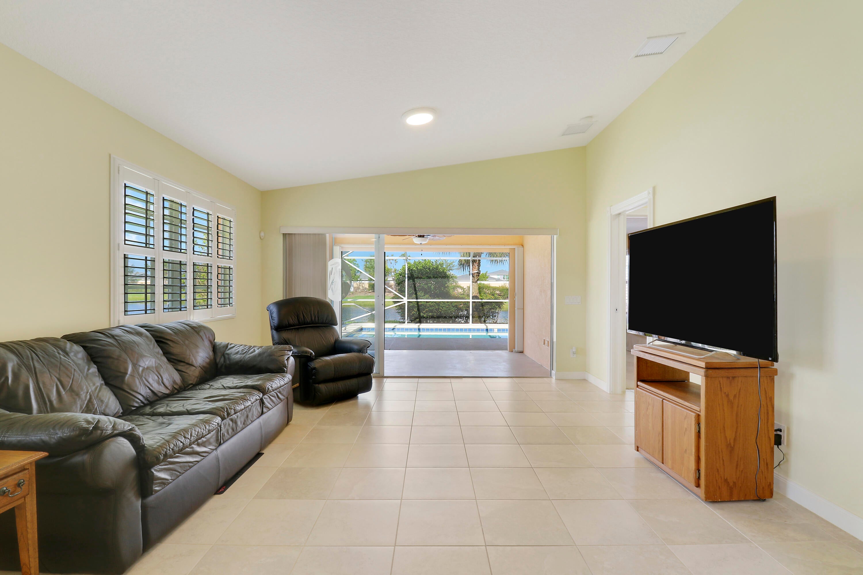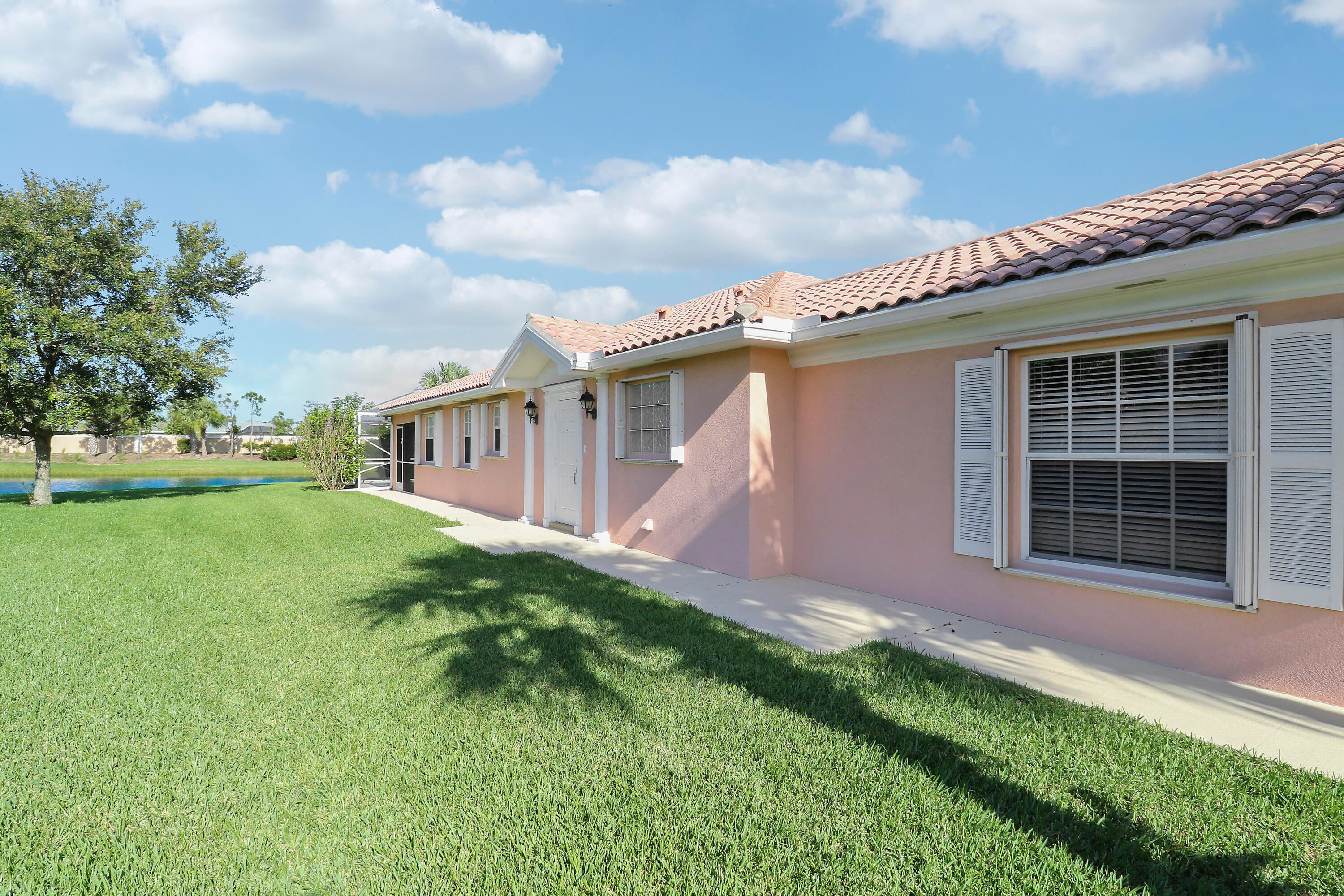 LOCATION, LOCATION! ENJOY BEAUTIFUL SUNSETS FROM THIS 2BR/2BA/2CG VILLA WITH PRIVATE POOL SITUATED ON AN INCREDIBLE, OVERSIZED, LAKEFRONT LOT! Offered for annual, unfurnished rent! This lightly lived in home features an open floor plan, poured concrete construction, vaulted ceilings, tile flooring throughout the main living areas, carpeted bedrooms, plantation shutters, garage storage, a built in wall unit with display shelves in the living area, newer pool heater (2021), newer pool pump (2023), new water heater (2024) and a newer AC (2018). Both bedrooms can be closed off as suites and there is built in shelving in each closet. Whole house accordion shutters make storm preparation a breeze!Rent includes basic cable, internet, alarm monitoring, pool service, lawn care, exterior landscaping, gated security and common areas. The Lakes at Tradition is an all ages community with plentiful amenities including multiple pools, fitness center, pickleball, tennis, play area, winding sidewalks and more. Enjoy this neighborhood's ideal location to Tradition Square by taking your bike or golf cart to the dining, shopping, supermarkets and entertainment. Don't miss this opportunity to own a well built villa on arguably one of the most incredible lots in the community! Call today to view!