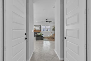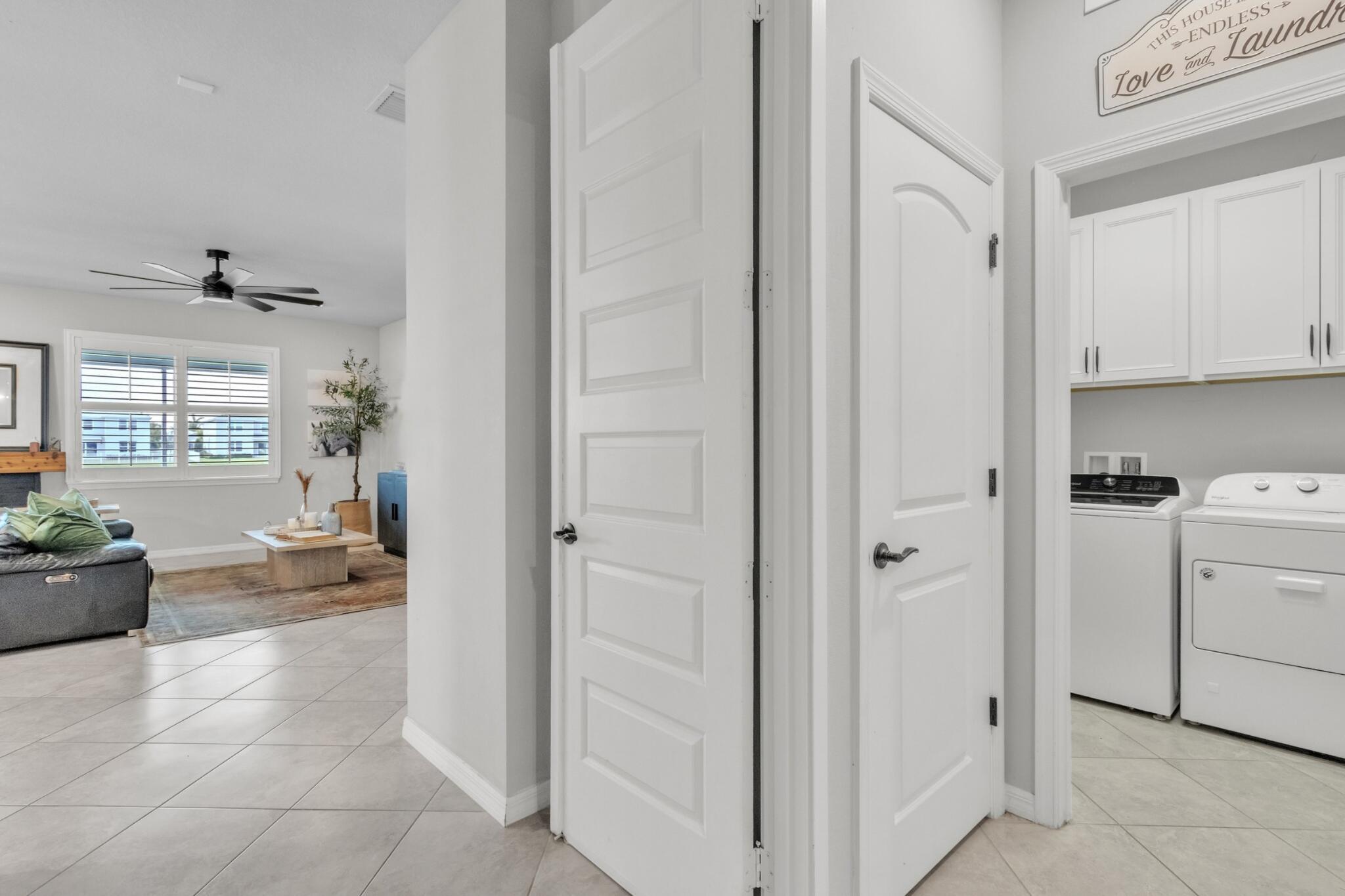 MOTIVATED SELLER - REASONABLE OFFERS WELCOME!Welcome to this beautifully-designed 3-bedroom, 2-bath home located in one of Tradition's most desirable neighborhoods. Constructed in 2021 with sturdy CBS block construction, this smart home combines energy efficiency with elegant, modern finishes for a lifestyle of comfort and convenience.The thoughtfully designed open, split floor plan offers seamless flow and functional privacy - ideal for both everyday living and entertaining. Throughout the interior, you'll find tasteful plantation shutters, impact-rated windows, and sleek flooring for a streamlined look that's both stylish and low-maintenance.At the heart of the home is a gourmet kitchen featuring quartz countertops, stainless steel appliances, under-cabinet lighting, and an expansive island - perfect for gatherings. Step outside to a covered, screened patio where tranquil lake views set the stage for relaxation. The spacious backyard offers ample room for a future private pool if desired, while rain gutters enhance both curb appeal and practicality. Additional features include a well-appointed laundry room with utility sink and access to a vibrant, amenity-rich community designed to enrich your daily lifestyle. Ideally situated just minutes from Tradition's lively town center - home to premier dining, shopping, parks, and Cleveland Clinic Hospital - this move-in ready residence delivers the perfect blend of style, comfort, and location. (Note: Some photos have been virtually staged.)