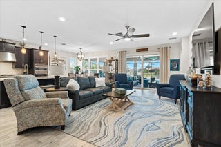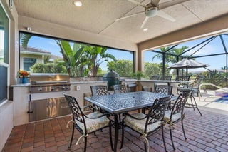 Gorgeous Pool Home at Vitalia 55+ community in Tradition. Built by Taylor Morris Homes - CBS construction, barrel tile roof, Hurricane impact windows & doors the Jensen Model screams modern elegance! Features 2 BR's, Den w/Barn doors, 2 BA's & 2 CG. Stunning open eat in Kitchen boasts LG Island/breakfast bar, stainless steel appliances include wall oven, microwave, gas stove, refrigerator & dishwasher, granite counter tops, tile backsplash, upgrades 42'' cabinets & pantry. Split floor plan, tile in main areas, volume ceilings, spacious Master suite & Bath. Exceptional screen enclosed lanai w/ outside oasis heated pool/spa, fabulous Bar offers fully equipped summer kitchen w/grill, green egg smoker, refrigerator, ice cooler & hurricane screen. Private tranquil tropical preserve setting!Enjoy the fabulous 24,000 square foot Captiva Club, fabulous clubhouse with an array of amenities, is the focal point of Vitalia. Enjoy the heated resort-style pool and spa hot tub, state-of-the-art fitness center. There are many possibilities to socialize in the game room, billiards area, and community room. The pickleball, tennis, bocce ball, basketball, and shuffleboard courts, as well as the picnic area, are sure to please outdoor enthusiasts. Offering something for everyone with a full time activities director you will feel like you are at a resort. HOA fee's include the Captiva Club, manned gated security, cable, common areas, lawn care, management fees, pest control & reserve fund. This home includes Electric hurricane screen on the Lanai & security system.