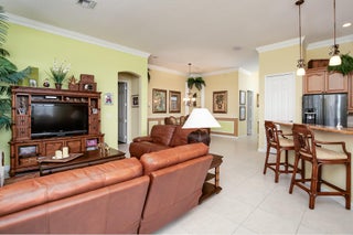 A golfer's paradise - beautifully maintained 3 bed, 2 bath CBS home in the desirable St. James Golf Community. This former model home offers an open, split floor plan with tile in main areas and luxury vinyl & hardwood in bedrooms. The kitchen features granite counters, stainless steel appliances, and plenty of space to entertain. The spacious primary suite includes dual walk-in closets, soaking tub, walk-in shower, and double vanities. Plantation shutters adorn the windows for a touch of elegance. Enjoy peaceful lake and fountain views from the large screened lanai. Located on a corner lot with a 2-car garage. Community amenities include a links-style championship golf course, clubhouse, pool, tennis, fitness center & more. Close to shopping, dining, the Mets Stadium, & more!