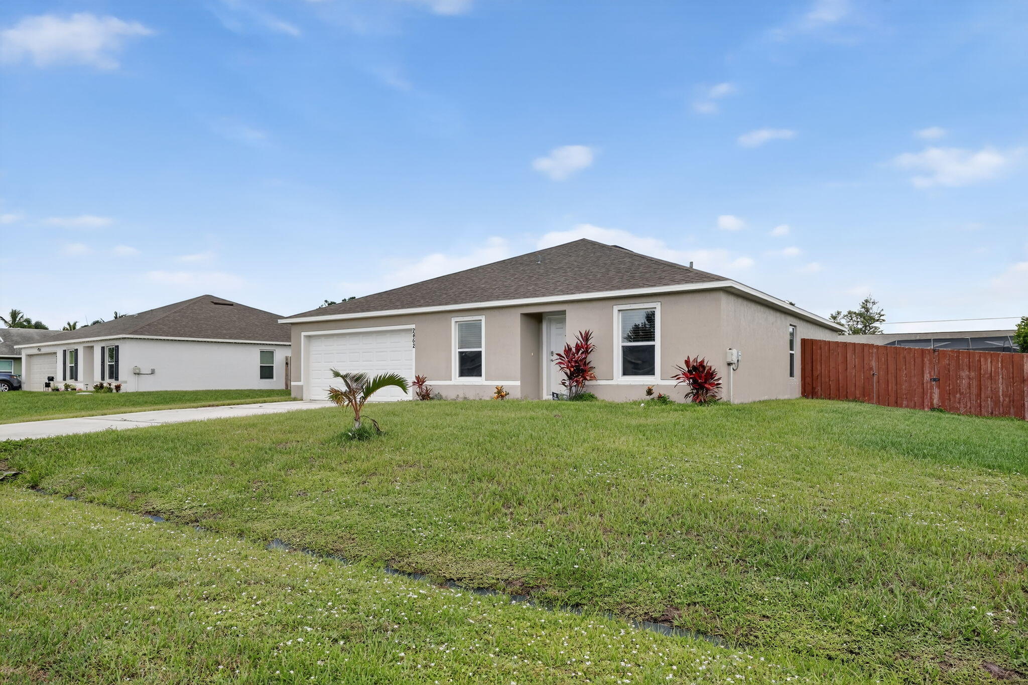 Welcome to The Royal, a beautifully designed 4-bedroom, 2-bath home built by Holiday Builders in 2022. This nearly new residence offers 1,806 sq ft of open-concept living space with modern finishes. The kitchen features Whirlpool stainless steel appliances and connects easily with the main living area, the spacious owner's suite includes a walk-in closet and private bath, while the interior laundry room adds convenience. Situated on a fully fenced lot, the backyard is ideal for pets, family gatherings, and outdoor enjoyment. This home comes backed by a 10-Year Limited Structural Warranty. Total square footage is 2,224, and there is no HOA. Conveniently located near schools, shopping, dining, I-95, and the Turnpike, this property combines comfort with accessibility.
