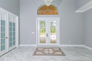 Mint condition! 3,444 sq ft custom built 2019 Builder's home with a unique floorplan, Porcelain tile floors and 14' volume Ceilings. The Kitchen features white cabinetry, Quartz countertops, Stainless Steel Appliances, oversized Island with Cooktop. Large 14k sq ft lot, Impact Windows throughout, white Vinyl Fence, 3 Car Garage, Circular Paved Driveway and a Metal Roof. Bring your cars, toys and golf cart, there is plenty of room! Elegant Travertine tile surrounds the Pool area. Pool features include a Jacuzzi, Heater and a Sun Shelf to enjoy sitting in the water under the Tiki table. No HOA!