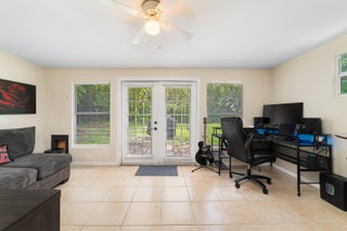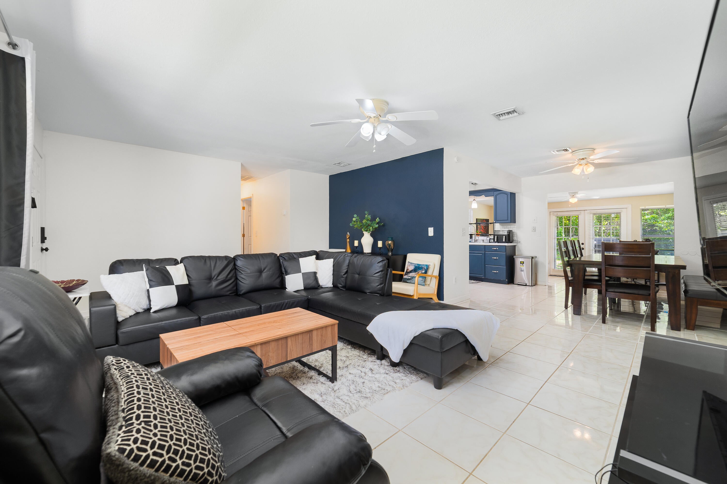 Welcome home to this immaculate 2 bedroom 2 bath opportunity located in the heart of Port St. Lucie with NO HOA! As soon as you enter, you notice the abundant natural light and view to the huge backyard. The home features a stacked bedroom floor plan and tile flooring throughout for added convenience. The kitchen boasts modern blue cabinetry with stainless steel appliances opening out to the dining area, perfect for entertaining. The primary bedroom provides tons of space, ample closet storage, comfortable en suite bath and french doors leading out to the backyard. The home also provides a large finished sunroom that offers a bonus space for office, playroom or den. Out back, the possibilities are endless. The huge backyard has plenty of room for play, entertainment or future pool.ROOF 2023, A/C 2023, HWH 2018. Large 1 car garage, large laundry room, additional storage room and long driveway for added parking round out the highlights. Located in the heart of Port St. Lucie, this opportunity provides a fantastic location not far from gorgeous beaches, shopping and quick access to highways. Please make sure to check out the 3D virtual walk through and schedule an appointment today!