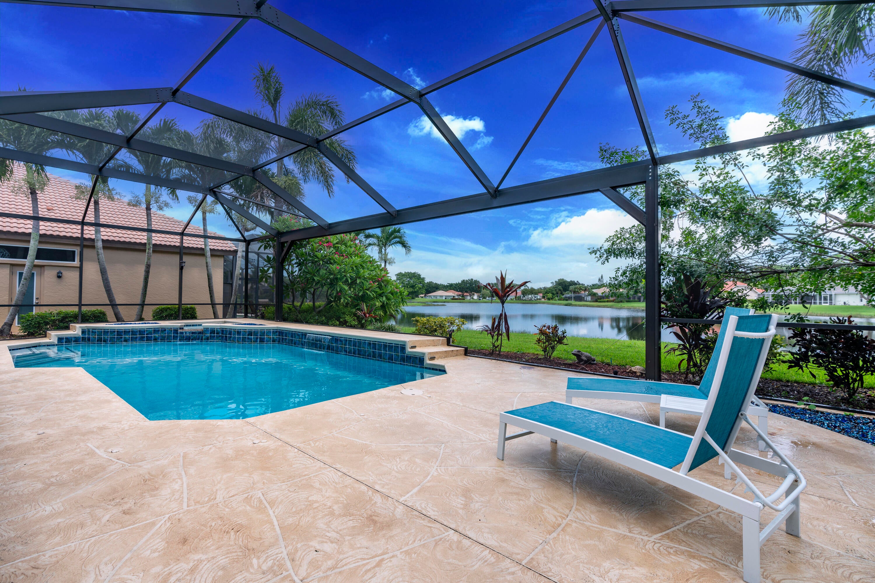MAJOR PRICE ADJUSTMENT. Welcome to luxury living in the Mediterranean-inspired community of The Vineyards at St. Lucie West. This elegant pool home offers stunning lake views, a spacious open layout, and a gourmet kitchen with granite counters, stainless steel appliances, and 42'' cabinets. The serene primary suite features wood floors, dual walk-in closets, and a spa-like bath. Enjoy formal and casual living areas, a private office, media nook, and a screened pool with covered patio--perfect for relaxing or entertaining. A new HVAC system, less than one year old, adds comfort and efficiency. Don't miss this rare opportunity! Beautiful home with Gorgeous Lake and Sunset Views.