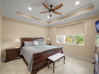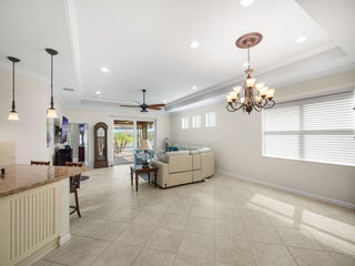 Welcome to LakePark at Tradition. This 3-bedroom villa with a den and 2 bathrooms has been thoughtfully maintained and recently updated. Freshly painted exterior! Inside you'll find crown molding and tile flooring set on the diagonal, which give the home a bright, cohesive, and elevated feel. The kitchen and bathrooms are finished with the highest-grade cabinetry available, granite countertops, and stainless steel appliances, combining durability with style. A new tankless water heater adds efficiency, while hurricane impact windows throughout the home provide year-round peace of mind. The lanai is equipped with motorized hurricane-rated blinds, built to withstand winds up to 150 MPH and equally practical for heavy rainstorms.The floor plan offers a comfortable flow between living, dining, and kitchen spaces, while the den creates flexibility for a home office, reading space, or hobby room. Outdoors, a screened lanai and extended patio within a screen enclosure offer multiple areas to enjoy the lakefront settingperfect for morning coffee, evening dinners, or quiet relaxation. LakePark at Tradition continues to invest in its amenities. The clubhouse has a new roof and has been freshly painted inside and out. Both the basketball and tennis courts were resurfaced, and the waterpark and playground have been upgraded with new protective surfacingenhancing the community spaces for all ages. The LakePark HOA Fee Includes: cable TV, high-speed internet, alarm monitoring, landline phone lawn care, security, and resort-style amenities. Just minutes from Tradition's shopping, dining, and recreational offerings, as well as the Cleveland Clinic, this villa provides the ultimate in luxury living!