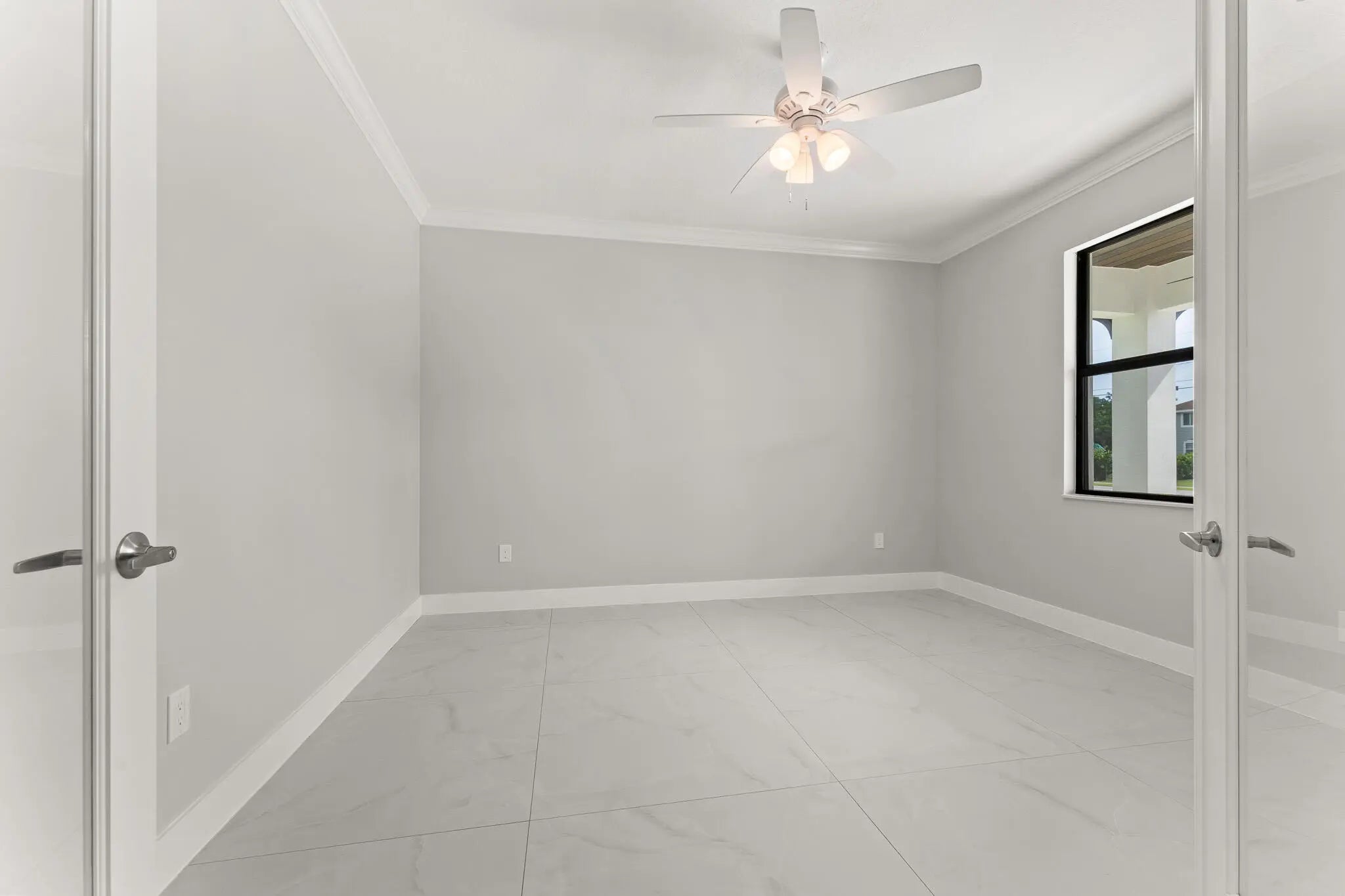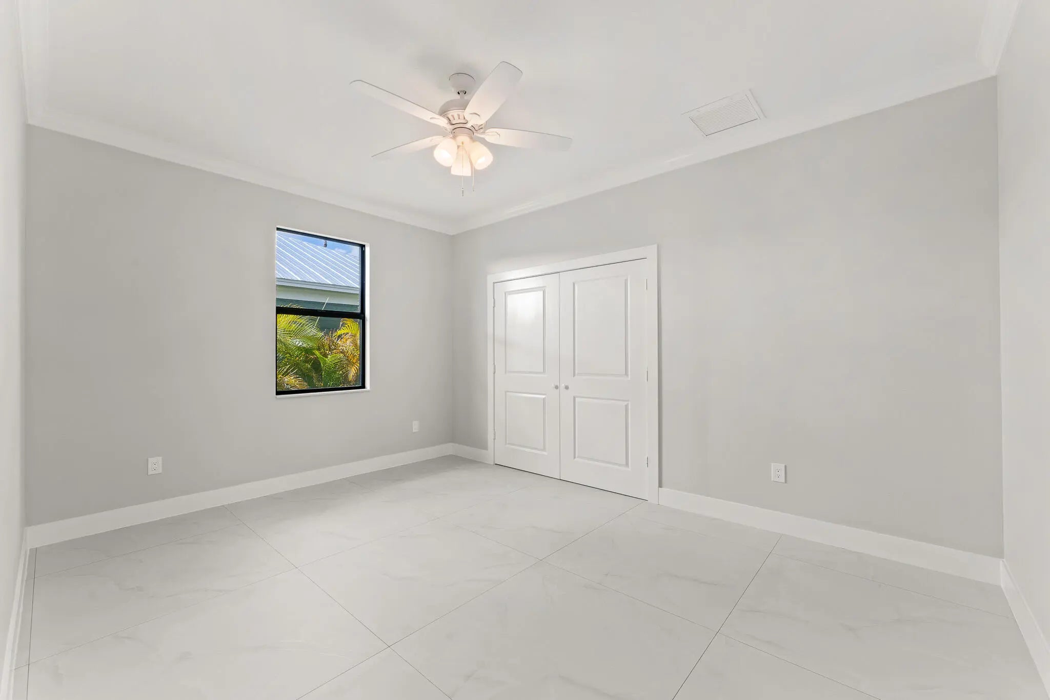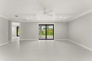 This thoughtfully designed 3 bedroom + den, 2.5 bath estate blends charm, quality, and convenience in one beautiful new build. Located just minutes from public boat ramps, Sandsprit Park and Port Salerno's waterfront dining, this home is the perfect blend of lifestyle and location. Inside, enjoy an open-concept design with quartz countertops, a waterfall eat-in island, wood cabinetry and luxury porcelain tile throughout. Tray ceilings, crown molding, recessed lighting and ceiling fans add elegance and comfort. Built for peace of mind and longevity with impact windows and doors, metal roof and stucco exterior. Relax on the elevated front or back patio with fresh coastal breezes. The oversized 10' garage door and large lot offer space for your boat, RV or future pool.