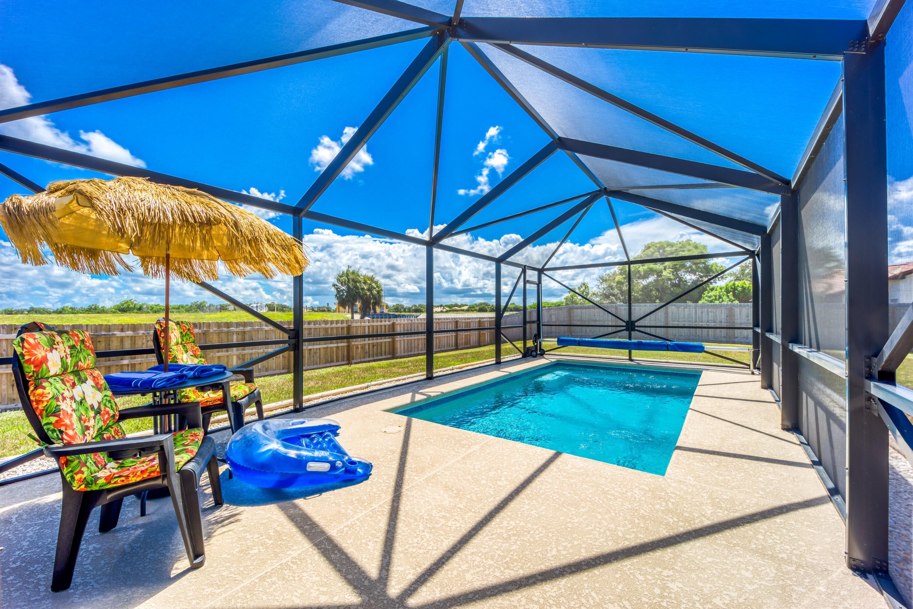 Heated, Inground, Gunite, Screened, Solar Heat, Equipment Included, Concrete, Salt Water