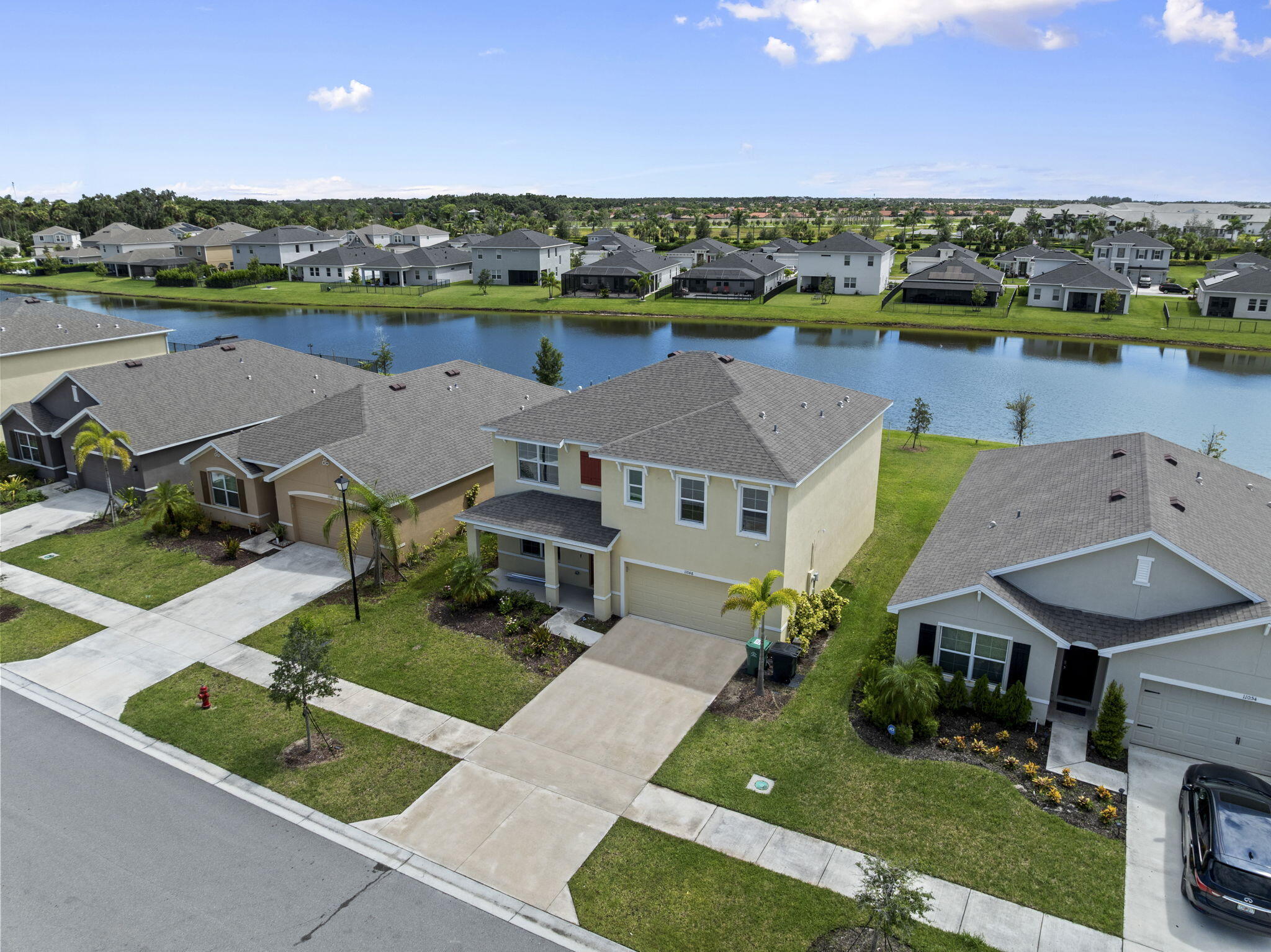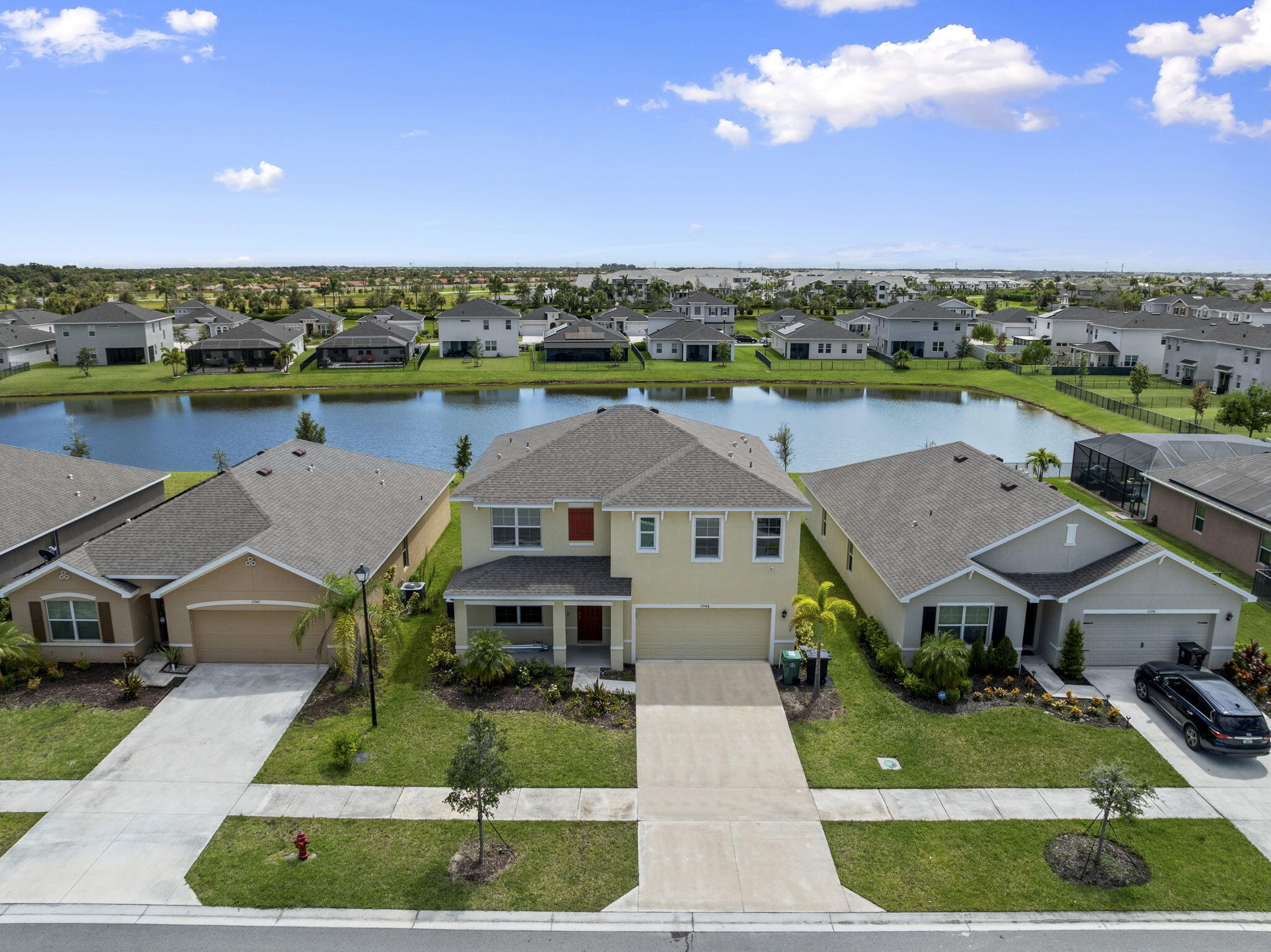 Welcome to your dream home in the sought-after Crosstown Commons community, a subdivision of PGA Verano! This beautifully fully remodeled 2-story home offers 5 spacious bedrooms, 4 full bathrooms, and 2,606 square feet of modern living space designed for comfort and style.Step inside to find brand-new luxury vinyl flooring, creating a sleek and durable foundation for everyday living. The open-concept kitchen features granite countertops, updated fixtures, and ample space for cooking and entertaining. Each bedroom is generously sized, including a spacious primary suite perfect for relaxing after a long day.Enjoy serene lake views from your private backyard, adding a tranquil touch to this already impressive home. With a low HOA fee under $500/year, you'll also gain access to Crosstown Commons' community pool and amenitiesoffering a resort-style feel without the high cost. Why wait for new construction? This move in ready home comes equipped with a transferrable builders warranty! This home combines modern upgrades with a prime location, just minutes from I-95, top-rated schools, shopping, and dining.