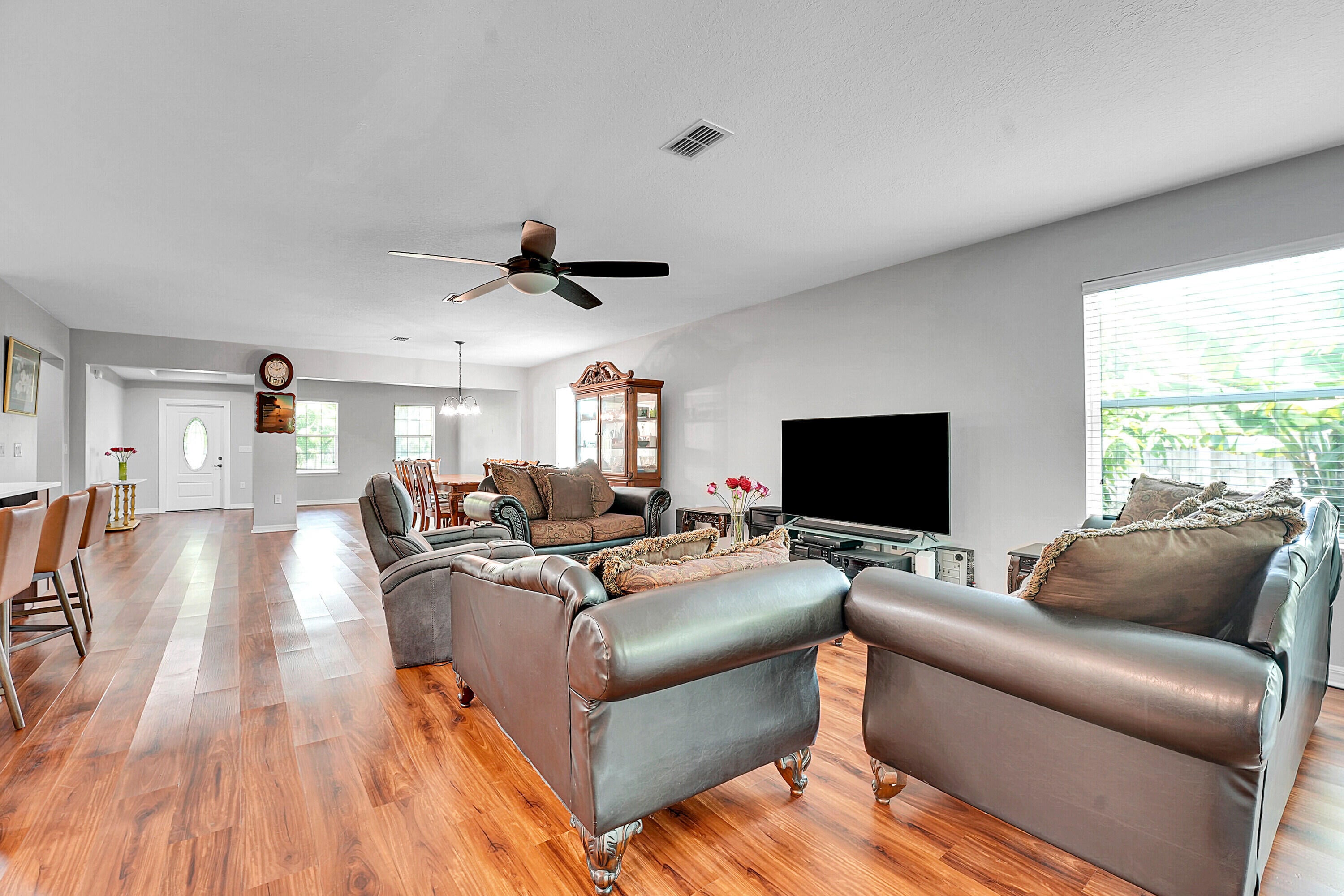 Beautifully Updated 4BR/3BA Home with 3-Car Garage in Port St. Lucie! This 2016-built home features over $30K in upgrades, including new interior/exterior paint, reverse osmosis system, new laminate flooring, and a newly screened oversized patio. Spacious 2,500+ sq. ft. split floor plan with a brand-new kitchen island, ideal for entertaining! Enjoy lush landscaping, mature fruit trees, and a private tropical feel in the backyard. Located near Becker Rd & the Turnpike for easy access.