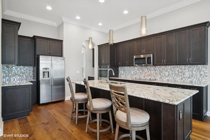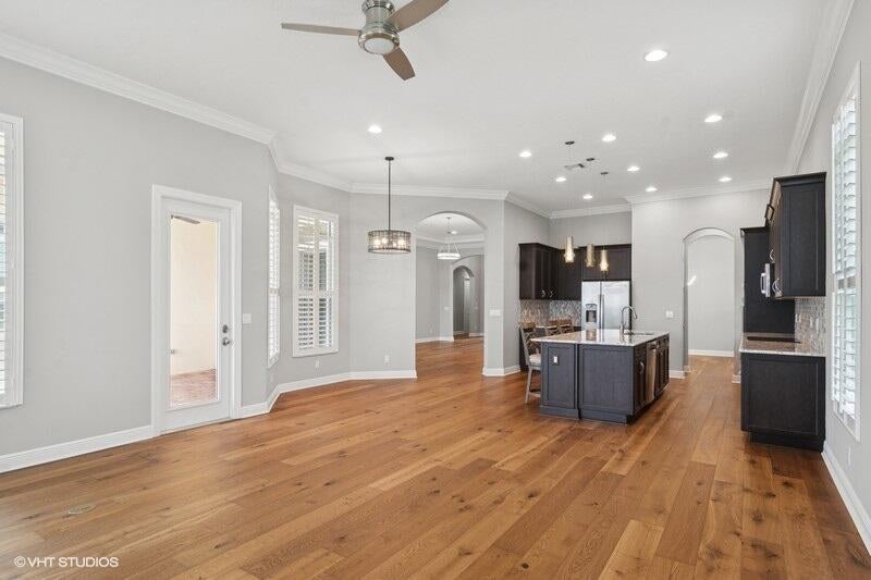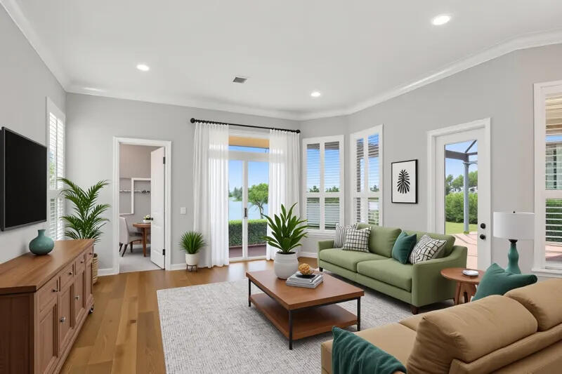 Nestled within the secured, resort-style gates of PGA Village Verano, this exceptional home spans approximately 3,244 sq ft and features 3 generous bedrooms plus a den, 3.5 baths, a formal living room, formal dining area, and a chef's kitchen--perfectly tailored for upscale Florida living with scenic water views. Formal living & dining areas frame gracious gatherings, with sweeping views and volume ceilings. A spacious chef's kitchen, appointed with premium countertops, large center island, stainless appliances, and walk-in pantry. Master suite retreat, offering veneers of natural light, dual vanities, deluxe shower, a soaking tub, and expansive closet space. Den / office ideal for working remotely or as a quiet reading space. Three and a half well-appointed bathrooms, including bath with direct access to the screen-covered lanai overlooking serene water. Covered lanai extends the living area outdoors ideal for Florida al fresco dining or peaceful mornings facing tranquil water. The home benefits from elegance and functionality with impact-resistant windows, high ceilings, and top-quality finishesa signature of Kolter Homes' Mediterranean-inspired design. As a resident of PGA Village Verano, you enjoy access to an extraordinary array of recreation and lifestyle-centered amenities: Club Talavera, a 27,000 sq ft social hub includes a grand ballroom, lounge, sports bar, coffee bar, library, billiards and card rooms, plus a demonstration kitchen, arts and crafts studio, and many classes. Full-time Lifestyle Director organizes events, classes, clubs, and social outings year-round.13,000 sq/ft Fitness & Training Center with cardio and weight training equipment, yoga/aerobics studio, saunas, and massage room. A heated indoor junior-Olympic lap pool and spa, plus an expansive outdoor resort-style pool with cabanas and firepit gathering areas. 27 court pickleball complexlargest private pickleball center in South Floridawith championship courts and pavilion events. Har Tru tennis courts, bocce ball and half-court basketball, plus miles of scenic walking and biking trails and dog friendly green spaces. Access to PGA Golf Club, featuring three championship courses designed by Tom Fazio and Pete Dye, and a 35 acre practice facilityall just golf cart ride away. Convenient proximity to I 95, shopping, upscale dining, world class hospitals, and beautiful Atlantic beachesjust minutes away.